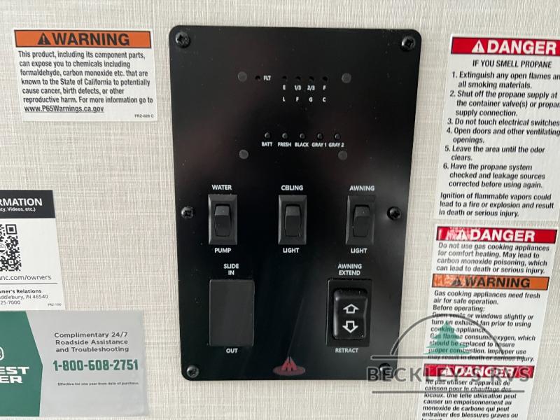 Outside, enjoy the shade of the power awning with LED lighting, access gear through exterior storage compartments, and clean up easily with the outdoor shower. With a UVW of just 2,499 lbs and a width of only 7.5 feet, it’s designed to be towable by a wide range of vehicles—no heavy-duty truck needed.