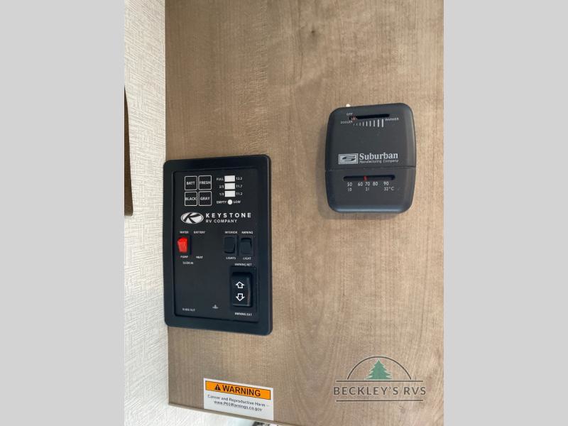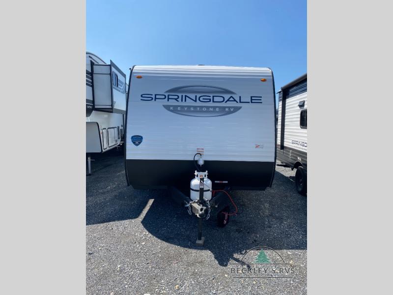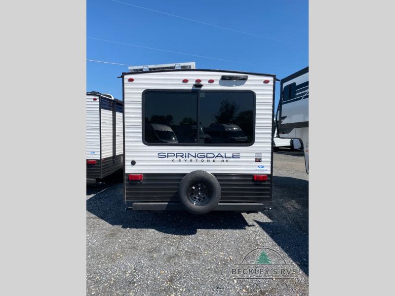 With any Springdale Classic Mini travel trailer by Keystone, you will enjoy lightweight towing thanks to their single-axle! You'll find the XL entry assist handle will make entering and exiting your unit easier than ever, and the power awning will provide protection from the sun as you relax in your camp chairs outside. Each model includes blackout night shades, solid wood cabinet doors and drawers, a shower skylight for more standing room, plus many more interior comforts. There is also a 5,000 BTU sidewall A/C and 20K BTU furnace to keep you comfortable, plus a Girard tankless water heater for endless hot showers!