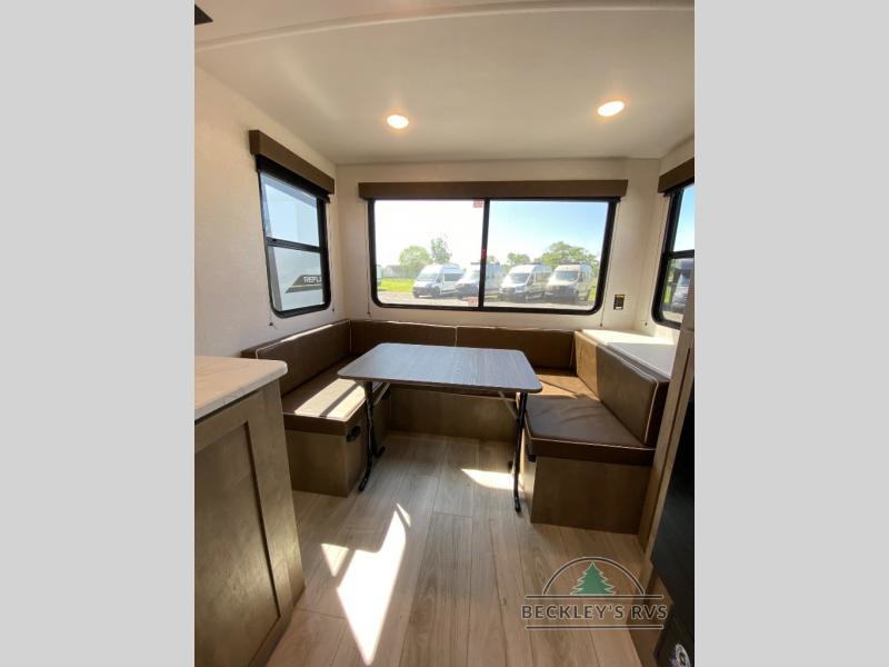 You will find lots of storage inside and outside this trailer allowing you to bring along everything you need for a great camping trip! Along the exterior there is a pass-thru compartment for your outdoor gear and a 10' power awning giving you a covered outdoor living area to enjoy. The cook will have a two burner gas range to make meals, and everyone can dine around the U-shaped dinette. There is a full bathroom to get cleaned up in before bedtime, and a queen bed to fall asleep quickly so you can have fun again tomorrow.