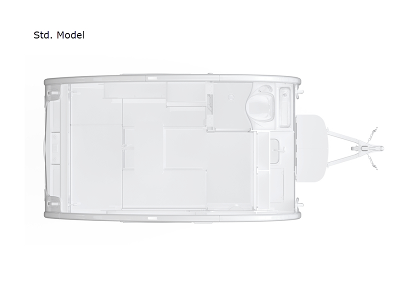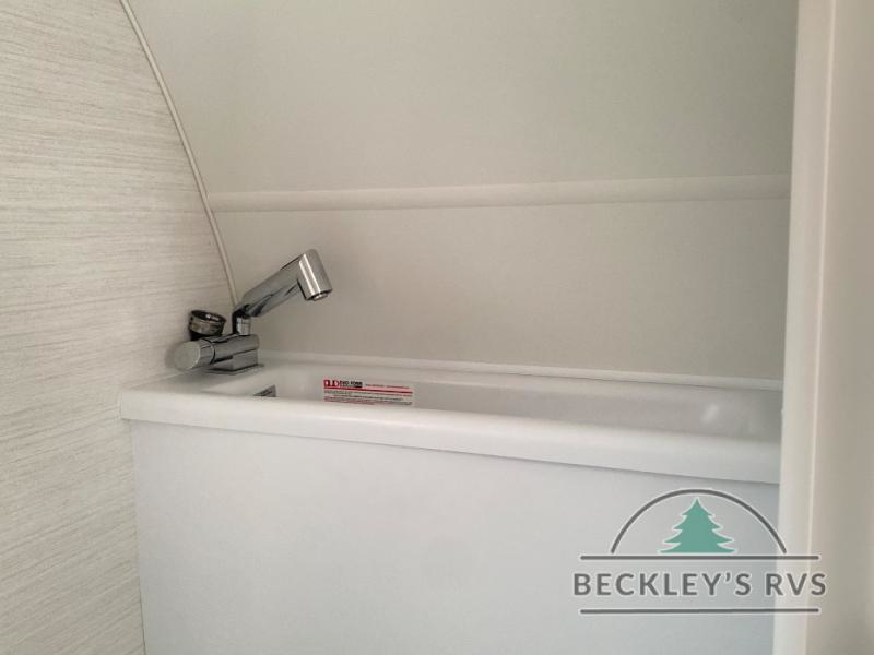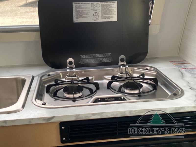 Hitch up and go at the drop of a hat with this cozy teardrop trailer! You will love how easy it will be to tow this unit, and you'll be surprised to find everything you need for hassle-free camping trips. An expandable split bed/dinette provides a place to relax, eat and sleep, and a two burner stove with a glass top will let you make meals inside when you don't want to cook over the campfire. You can choose to add an optional microwave for even more convenience, and the standard 12V compressor refrigerator will keep your cold items fresh. Easily freshen up each day in the wet bath that includes a cassette toilet with a molded sink
