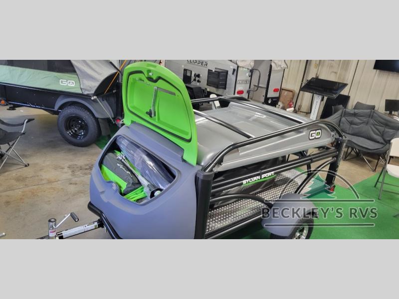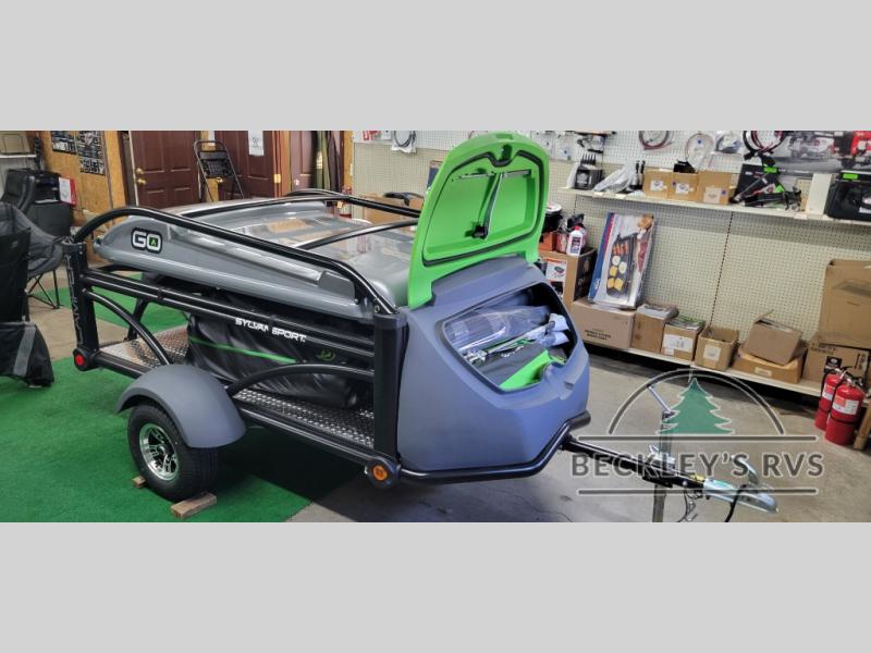 The 2025 SylvanSport GO All Out is a highly versatile and innovative pop-up camper known for its lightweight design, multifunctionality, and durability. It weighs just 840 lbs, making it easy to tow with most vehicles. The camper features a flexible interior that can accommodate up to four people with included Cloud Layer air mattresses and a spacious tent setup. Additional amenities include the GOzeebo tent/screen room, Dine O Max camp kitchen, solar kit, and ample storage options.