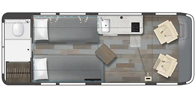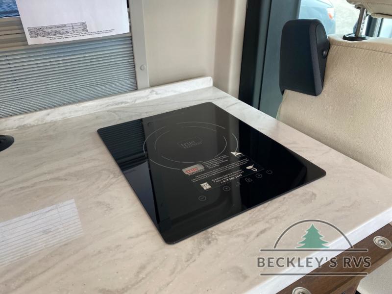 Don't pass up your chance to travel in true luxury with this motorhome! After a long day of traveling, you can rest up on one of the two twin beds which can be converted into a 74" x 76" bed with the flex bed system. Freshen up in the rear 25" x 43" wet bath with a fold down lavatory sink and a wardrobe to store your clothes and towels, plus sliding doors for privacy. You don't have to eat fast food while on the road either thanks to the single burner induction cooktop and single door 4.3 cu. ft. compressor-driven refrigerator/freezer, plus you have a flip-up countertop extension to make your meal prepping easier. The adjustable/removable table and mount makes it easy to eat your meals in different areas of the motorhome too. This model also comes with the Pure3 energy management system which has a 3-module lithium-ion energy pack, 3,200 watt inverter, a Bluetooth control module, an energy pack heating system, and a second dedicated alternator powered by the chassis engine!