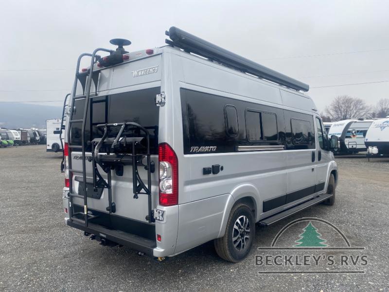 Each one of these Winnebago Travato Class B gas motorhomes are perfect for adventure seekers of all types! The rear annex extends your living space and gives you the versatility of hanging wet gear, using it as an outdoor shower, or an impromptu awning. They are powered by a Ram ProMaster 3.6L V6 gas engine with 280 HP and a 9-speed automatic transmission, and include a radio/rearview monitor system with navigation, USB ports, and more to make the drive easier than ever. The superior craftsmanship consists of a Truma Combi Eco Plus heating system that can run off of propane or electricity, aluminum running boards with logoed tread, ground-effect lighting and pet loop attachment so even your furry friends can come along. You will also find RAM Tough-Track Mounts throughout for your gear, tinted coach windows and blackout cassette shades for added privacy, plus a 24" HDTV and Bluetooth soundbar to ensure you'll never go bored!