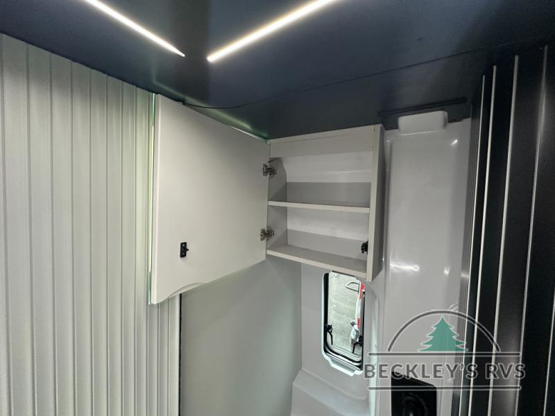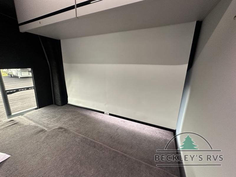 This luxury motorhome for the modern adventurer will be your favorite! The flip-up bed provides a comfortable sleeping area, perfect for restful nights on the road. The entertainment spot is provided in the motorized projector screen, which is ideal for movie nights, sporting events, or presentations, making it a great way to unwind or entertain friends and family. The bathroom provides a private and convenient space for personal needs, and the kitchen features an undermount cooktop, perfect for preparing your favorite meals, 3.2 cu. ft. refrigerator for keeping perishables fresh, and a sink for easy cleanup. The exterior awning provides shade and protection from the elements, while the sliding door offers easy access and added convenience.