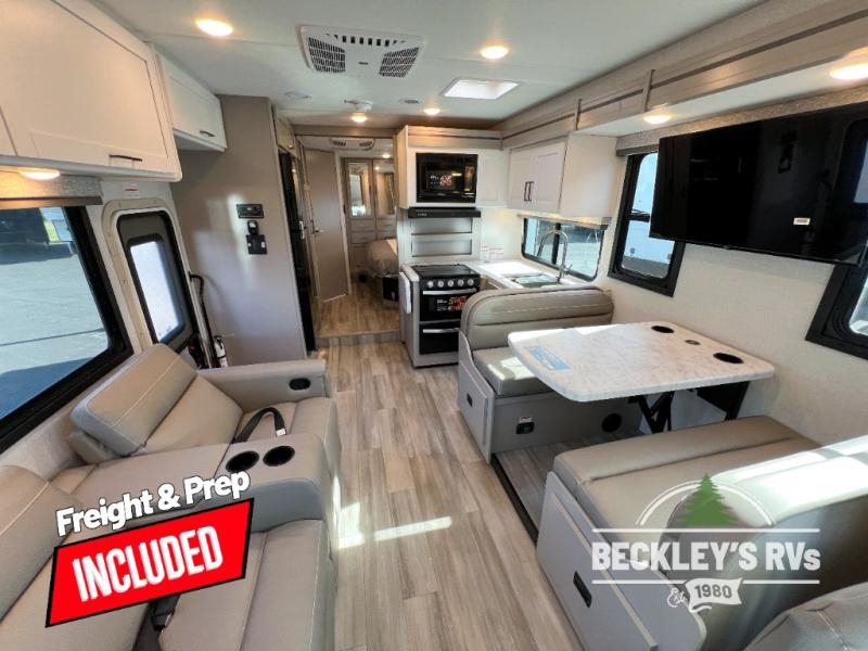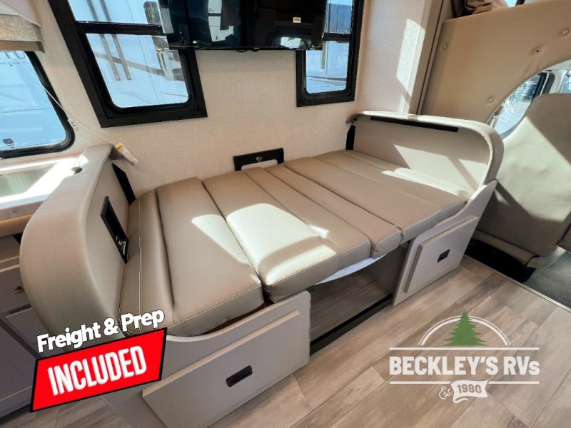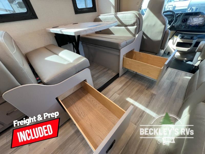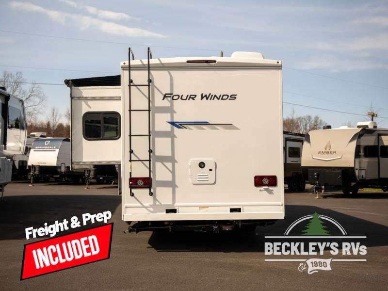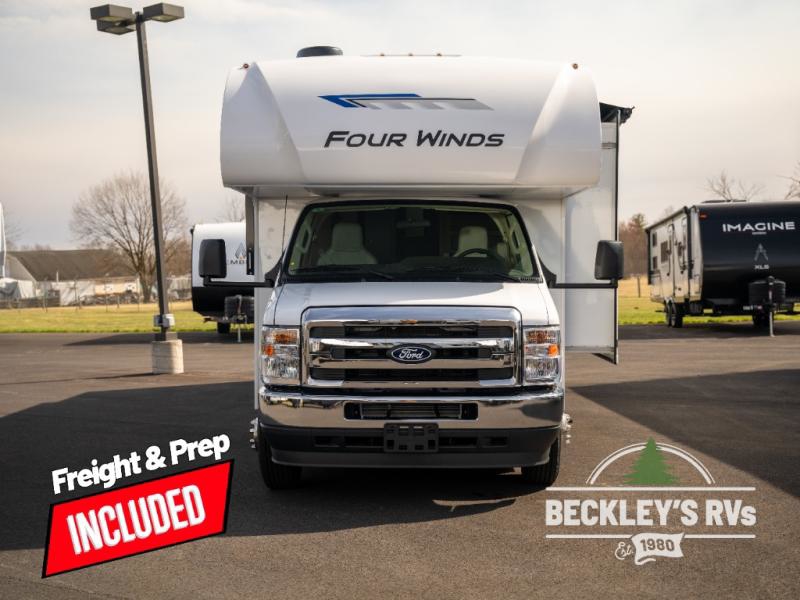 With any Four Winds Class C gas motorhome, you can travel in a trustworthy Ford E-Series chassis with 325HP, or a Chevrolet chassis with 401HP if you choose that option which is available on several models. Each is built with welded sidewall cage construction and a welded tubular aluminum roof, a one-piece fiberglass cap, and includes a slick fiberglass exterior with graphics package for style and years of enjoyment on the open road.  Inside, you will enjoy the well-equipped kitchen, the spacious bathroom, the sleeping accommodations and the Winegard ConnecT 2.0 WiFi/4G/TV antenna that allows you to stay connected.  With several floorplans to choose from and options to add, you will surely find one that fits your family's needs or your friend's approval. Choose today!