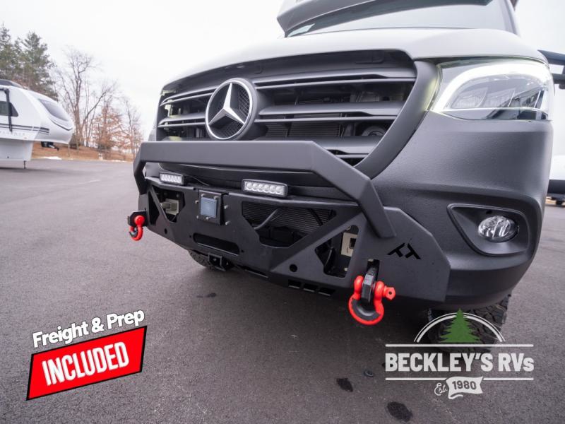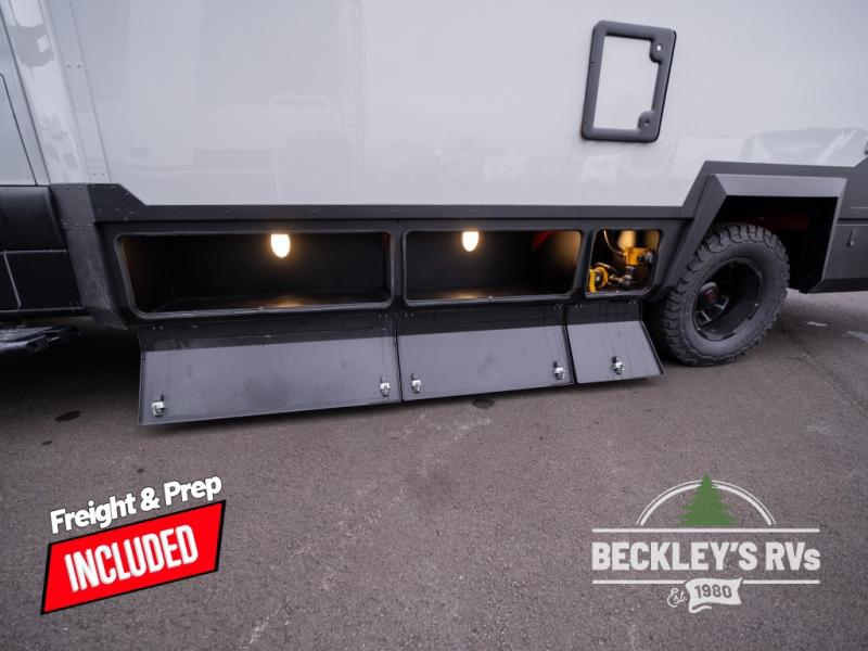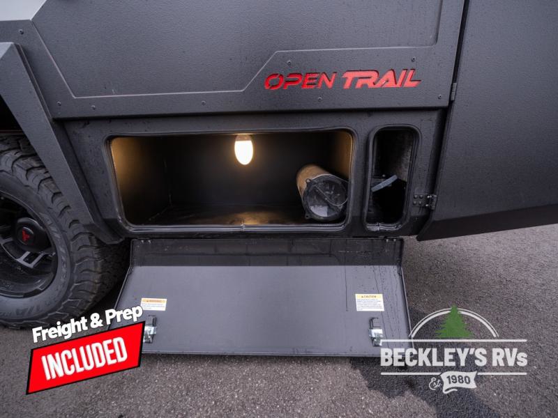 The Open Trail by Tiffin Motorhomes will do just that; take you on the open trails! This Class C diesel coach sits on the durable Mercedes-Benz 3500XD AWD dual wheel cutaway chassis, allowing you to venture off-road when the adventure calls for it. You will also appreciate the added safety features, such as active brake assist, Active Distance Assist Distronic (adaptive cruise control), active lane keeping assist and more! The 3.2 kW RVMP diesel generator and 270 AH Battleborn lithium battery pack will keep you powered up, and you can choose the optional Lithionics battery system and optional (2) 200W solar panels to keep you off-grid for even longer periods of time. An Aqua View Showermiser system and hydronic hot water heater provide added comfort when it's time to clean up, and the black powder coated aluminum cabinetry throughout is ultra durable to withstand your adventrous lifestyle. Outside, you'll find riveted all-aluminum body molding, full-body paint with two layers of clear coat, a heavy duty off-road front bumper, and high performance Diamond shield protective film for added durability.