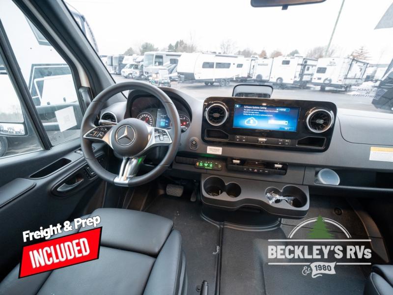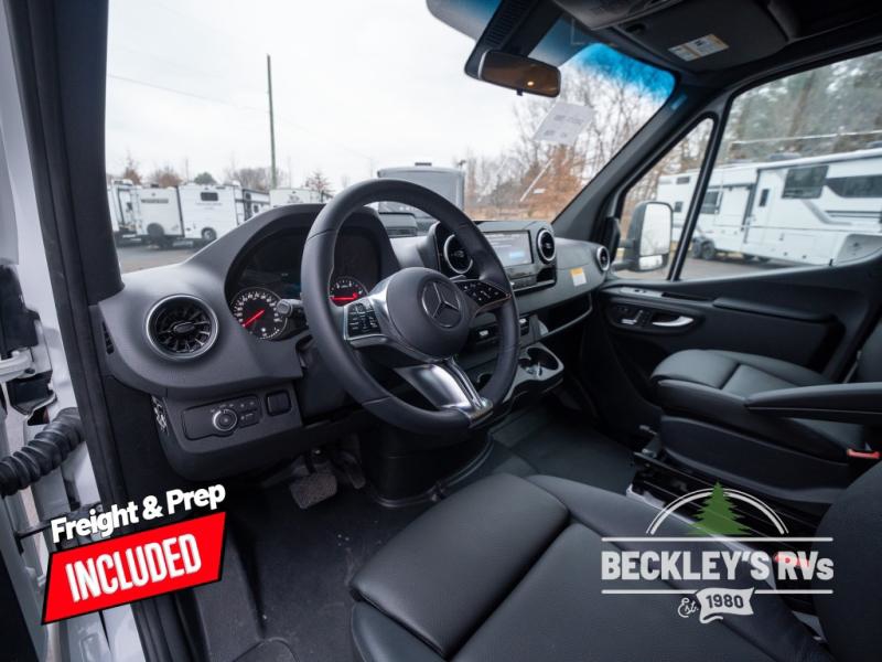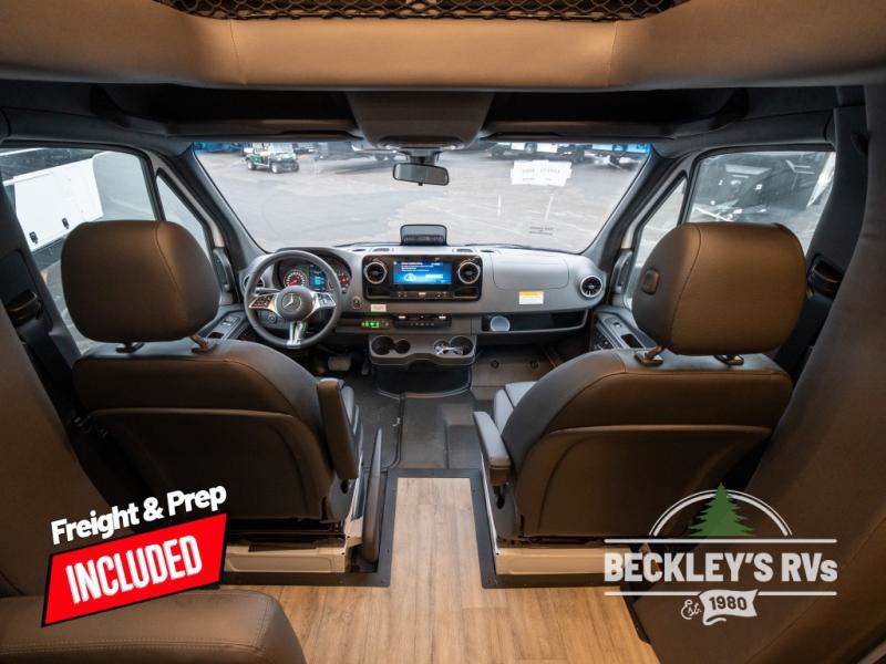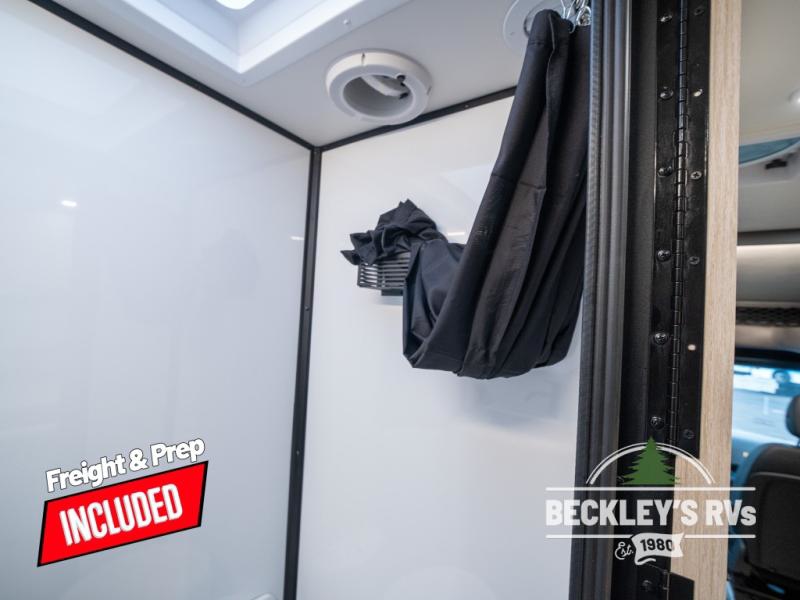 If you're an outdoor enthusiast who doesn't want to sacrifice comfort, this coach is for you! The premium Mercedes captain's seats include heat for added comfort plus they can swivel around to become part of the living area seating. You can make lunch on the single burner portable induction stove or in the stainless steel microwave/air fryer. There is a sleeper sofa for cozy seating and additional sleeping space for a guest, or you can choose the optional L-shaped lounge if you're wanting a table. The full residential-style wet bath includes a roof vent fan, towel and toilet paper holders, an oversized mirror, plus a large black aluminum under-sink cabinet with a GFCI outlet to plug in any accessories you may need. Head to the rear of this coach to find the 32" x 76" twin beds with a nightstand in between, or you can convert them into one king-size bed. There is also an overhead cabinet and dual pull-out closets so you both have a place for your things!