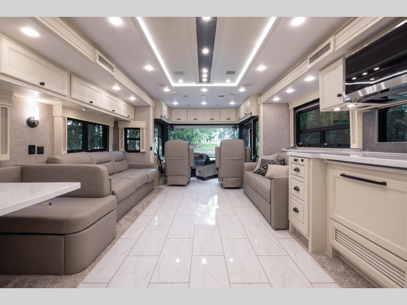 If you want the top of the line, the most luxurious, and the highest standard, the Tiffin Motorhomes Allegro RED Class A diesel motorhome is created for you! You will have V-Ride suspension, full air brakes, electronic stability control, and hydraulic automatic leveling jacks as some of the chassis features, and there are many electrical features that will catch your eye, like the Aqua View Showermiser, satellite hook-up, and Spyder multiplex controls. And that is only a fraction of the many more features found on the Allegro RED. While you're driving, you'll have a color back-up camera to help you maneuver into parking spots, and you have the ability to add an optional central vacuum, stacked washer/dryer, and Gold Heat heated tile floor, just to name a few of the many options. You will also love the new decor options, including floor tiles and dinette/living furniture, plus there are new Lifestyle Leather power captain's seats for added comfort and style!