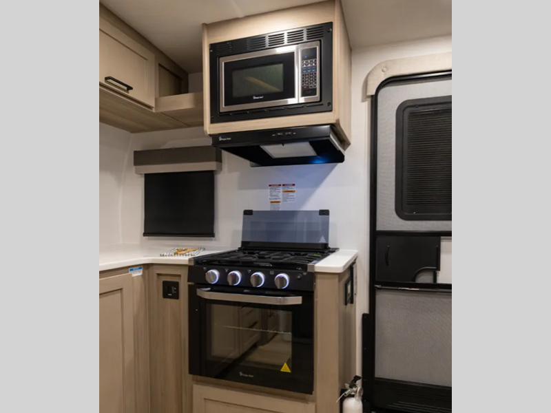 Each Rockwood Mini Lite travel trailer by Forest River is constructed with a fully laminated one-piece walkable roof, sleek frameless windows, and a six-sided full aluminum frame for strength and durability. The 12V thermostatically controlled heated tanks, plus radiant foil in the underbelly will allow you to camp well into the colder months, and the 200W roof solar panel will be perfect for a little off-gridding. Each model includes solid surface kitchen countertops, hidden hinge cabinet doors, roller shades, plus many more interior features. Having an AIR 360+ omnidirectional antenna with WiFi prep on board gives you the option to get some work done if it's needed, and the power tongue jack provides hassle-free set up, so you can enjoy more time relaxing!
