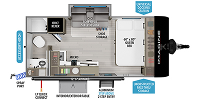 Aim for new destinations in one of these Grand Design Imagine AIM travel trailers! They are constructed to a superior standard with the 4-Seasons Protection Package that features a heated and enclosed underbelly with suspended tanks, a moisture barrier floor enclosure, a double insulated roof and front wall, and more. There is backup camera prep outside, along with a universal docking station, and a power tongue jack. You are sure to feel at home with residential cabinetry, premium window treatments, residential countertops, and a spacious walk-in shower to name a few comforts. The on-demand tankless water heater is a feature you won't want to camp without and the hi-definition LED TV will ensure you'll never go bored on rainy days. Each model also comes with four AIM packages; the Peace of Mind Package, The Ultimate Power Package, The 4-Season Protection Package, and the Solar Package!