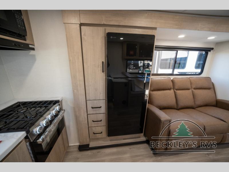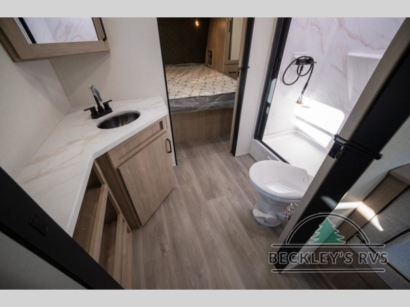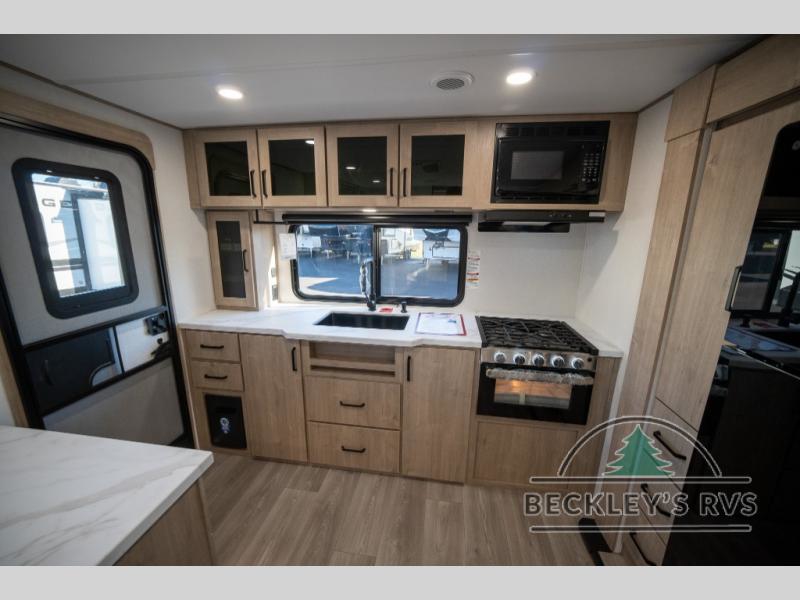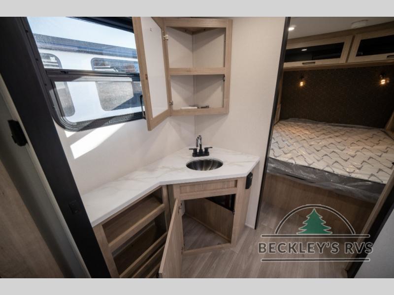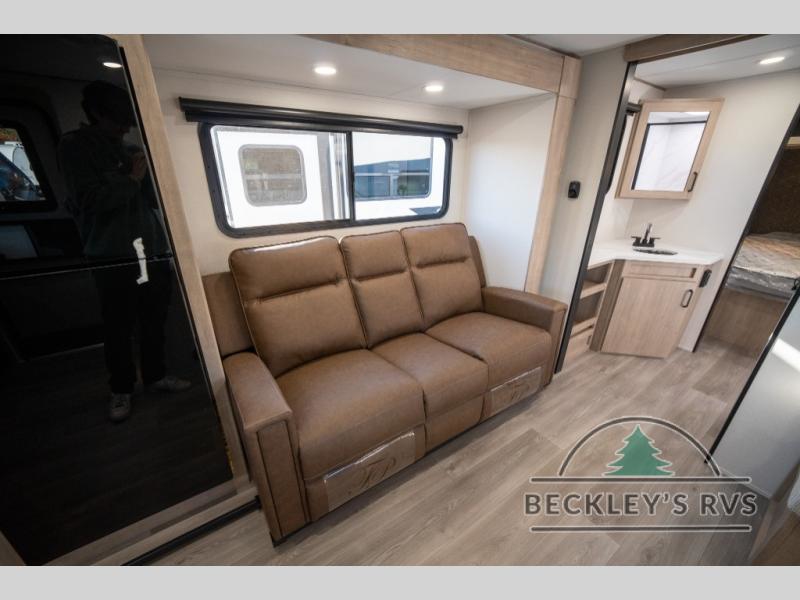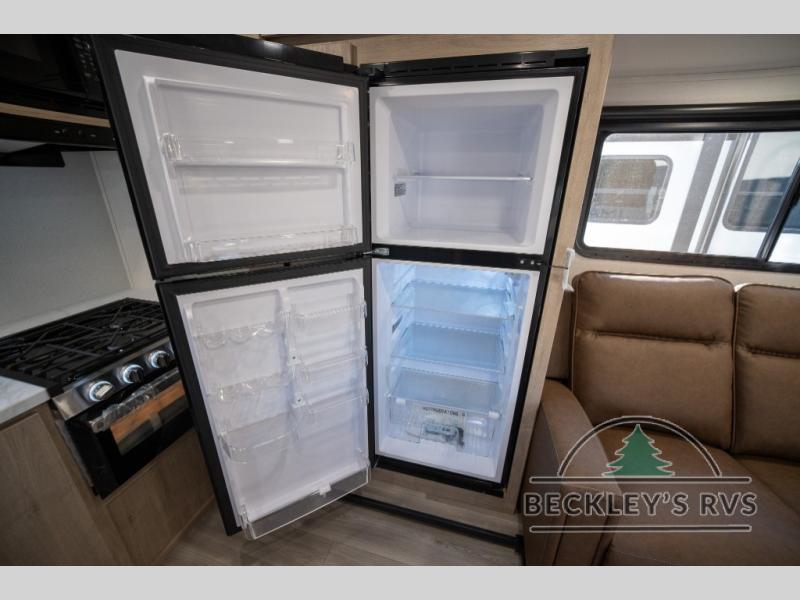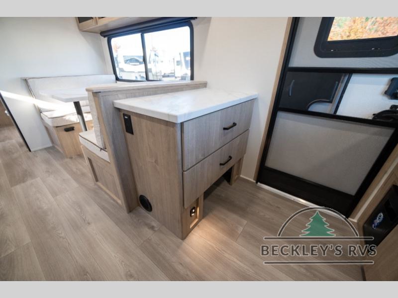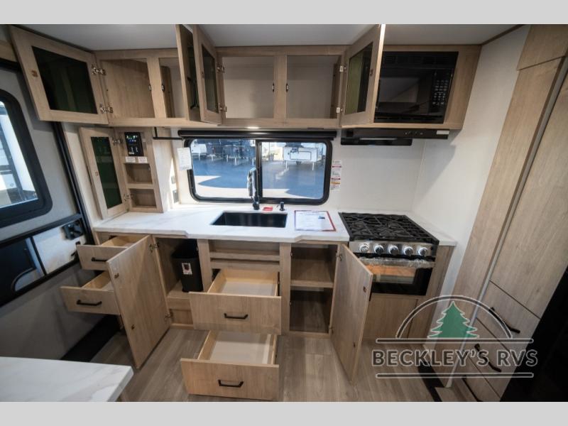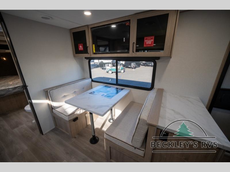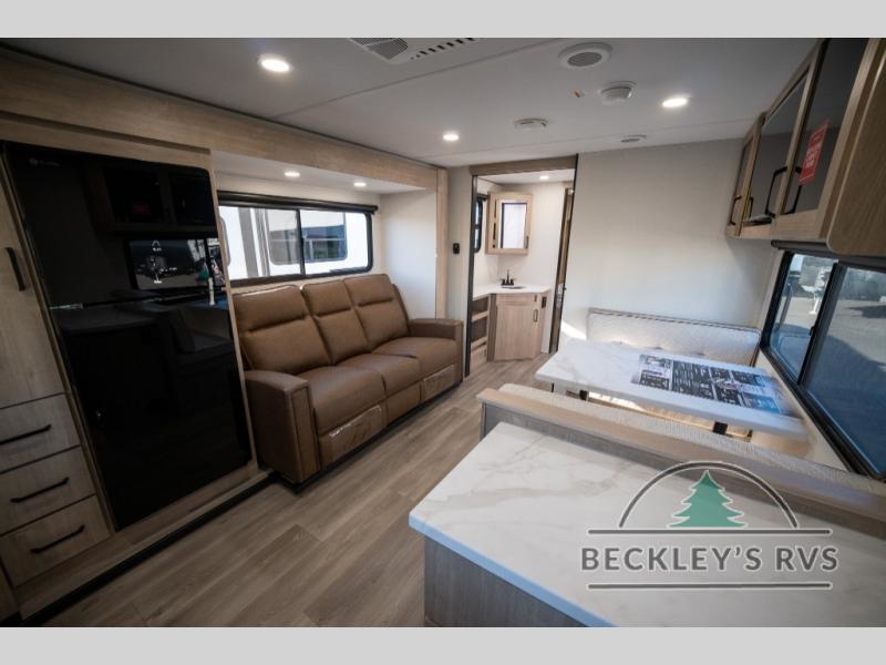Treat yourself to a weekend of fun in this Imagine XLS travel trailer! Whether it's just you and your spouse, or you've chosen to bring along a group of friends, this trailer will meet your needs. The front bedroom can sleep two people on the walk-around queen-size bed. The bedroom is quite functional because it not only contains the second exterior entry door, but it also has a private entrance into the walk-through bathroom since it is located on the other side of the bathroom. The booth dinette is functional too because it can transform from a dining location into a sleeping location, and the theater seating is directly across from the LED TV for easy viewing. The rear kitchen is fit for the chef on the trip, it features residential countertops, a stainless-steel sink and a 3-burner range with oven for you to cook your meals in comfort.