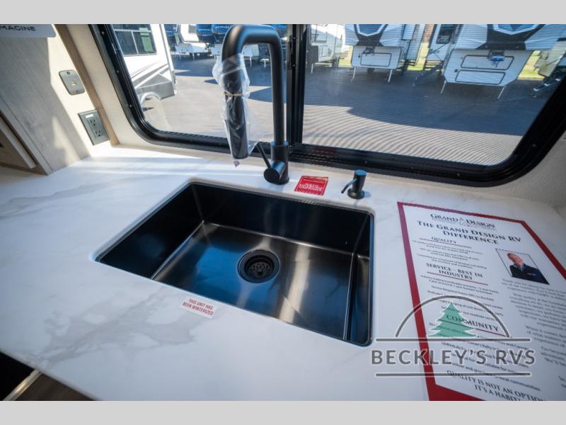Let your imagination run wild with the possibilities that the Grand Design Imagine XLS travel trailer can provide! The Imagine XLS has been built with oversized tank capacities, an extra-large 2" fresh water drain valve, a ducted A/C system, a power tongue jack, and a heated and enclosed underbelly with suspended tanks. There is a designated heat duct to the subfloor and a residential ductless heating system throughout. For outdoor adventures, the electric awning with LED lights will enable you to stay protected, and the Tuff-Ply pass-thru flooring will withstand your adventures. You will also love the XLS Solar Package that comes with a 200W roof mounted solar panel, a 30 Amp charge controller, a 12V 10 cu. ft. refrigerator, and roof mounted quick connect plugs!