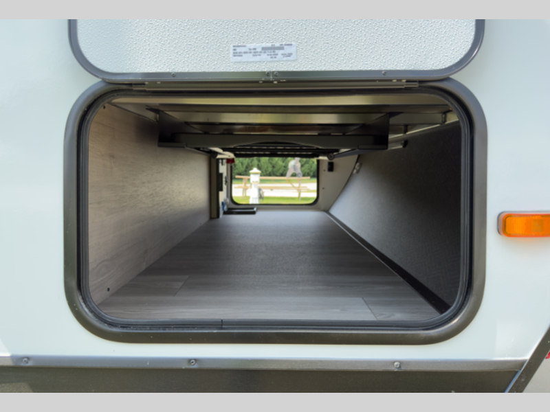 Pack your bags and head out on a fun camping trip in this travel trailer! The front queen bed offers a comfortable place to sleep at night, as well as the roll-over sleeper sofa slide with shoe storage. You can make meals on the cooktop or in the convection microwave. The full rear bathroom has a walk-in shower with an oversized vanity to easily get ready each day. Outside, you'll find a spray port, an unobstructed pass-thru storage, and an interior/exterior table to use at your convenience.