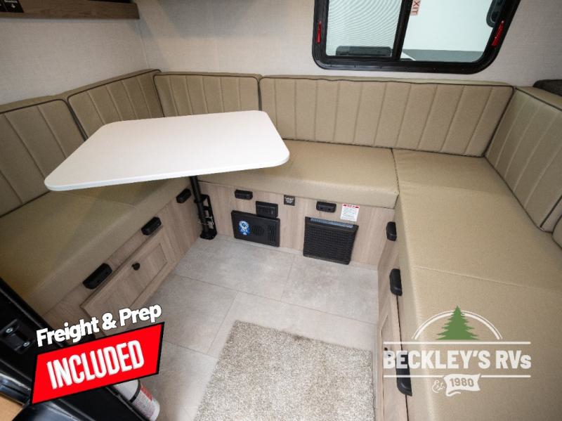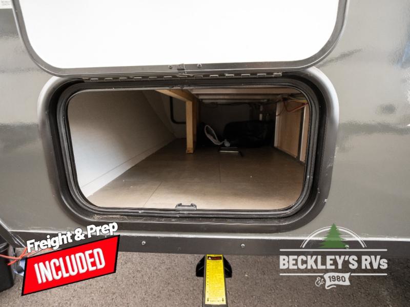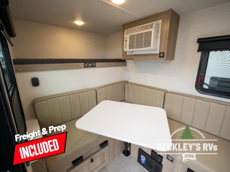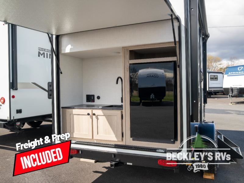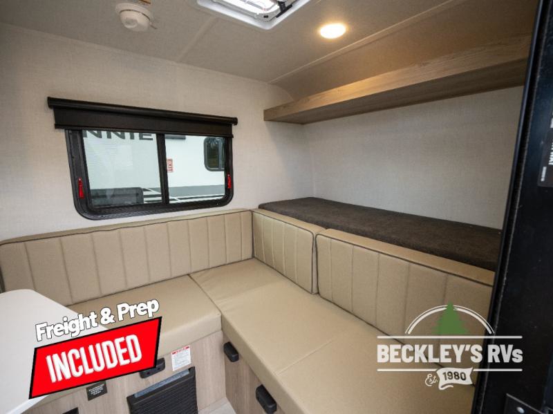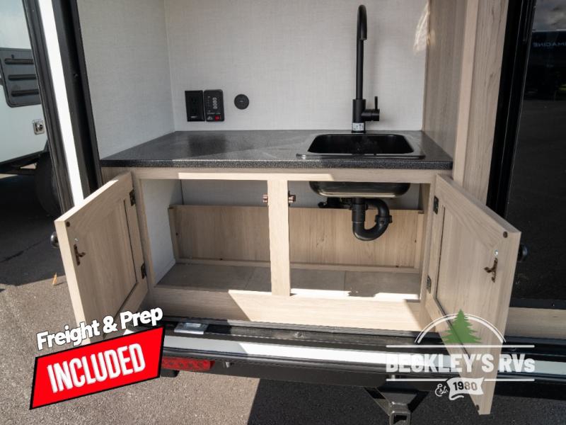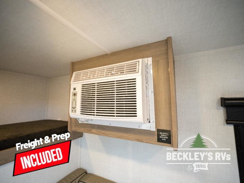 When you step into this compact travel trailer, you’re welcomed by a spacious 54" x 91" U-dinette that provides the perfect spot for family meals or board games after a day of outdoor adventure. At the front, a cozy 63" x 24" bunk and an overhead shelf offer a comfortable place to rest, while an additional 63" x 24" top bunk at the rear adds even more sleeping space for guests or kids. To keep you cool during hot summer trips, the trailer includes a built-in A/C unit. As the sun begins to set, you can relax under the 9' awning and enjoy the evening breeze, and the rear outdoor kitchen, complete with a refrigerator and sink, makes it easy to whip up simple meals without ever stepping inside.