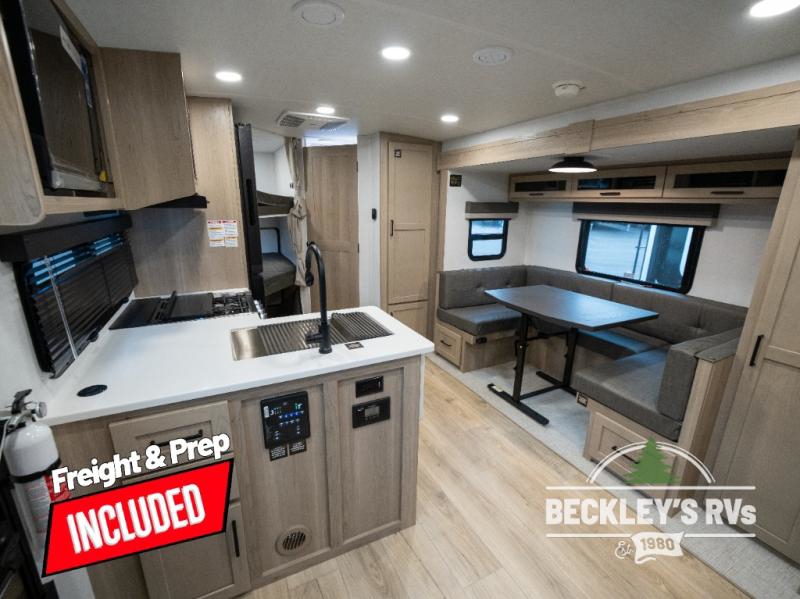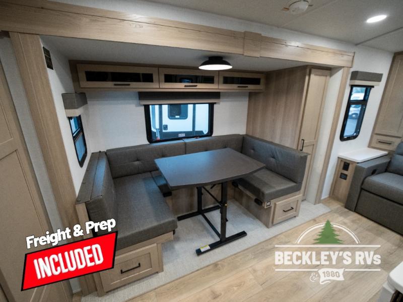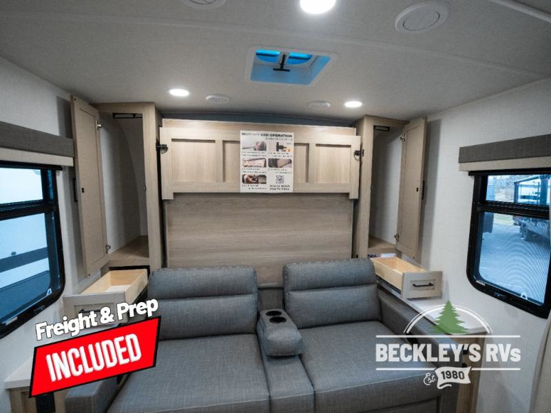 Finally, a lightweight travel trailer with double-size bunks for the kids or your guests! You'll find the versatile Murphy bed up front will be super convenient when you need more space to move around, and the 72" sofa will provide comfy seating space when the bed is put up. This model also includes a U-shaped dinette slide perfect to dine around, play games, and sleep additional guests. A TV in the main living area will allow you to watch your favorite shows in the evenings, or you may just find yourselves outdoors under the 18' power awning with LED lights. And check out the pass-through storage, plus additional exterior storage for your hiking gear!