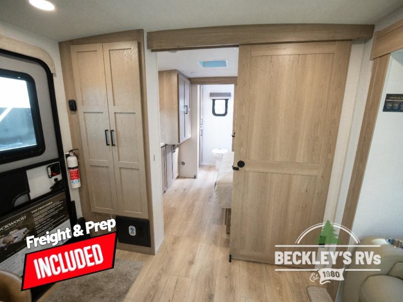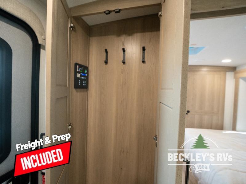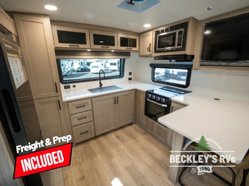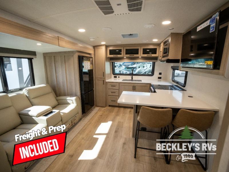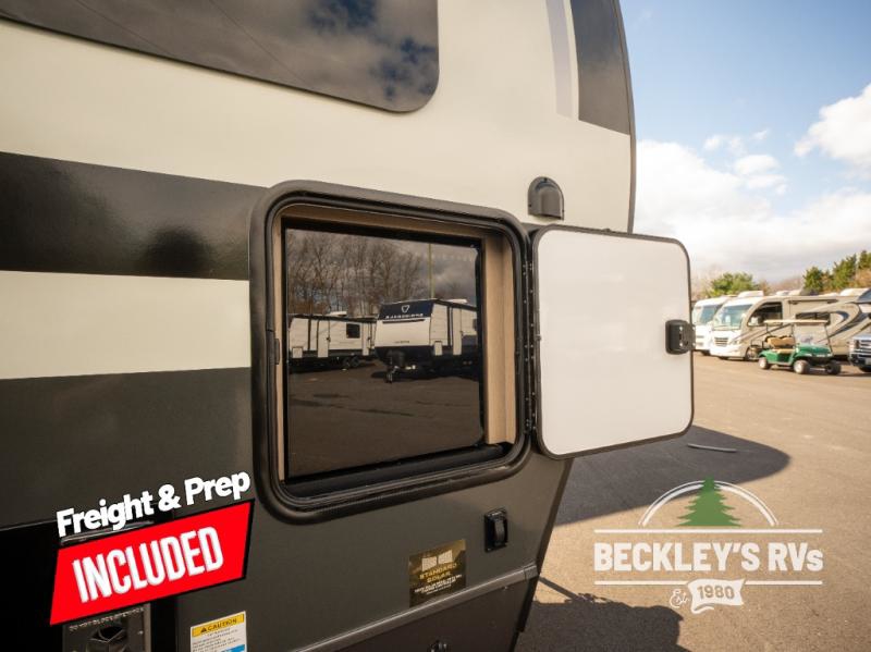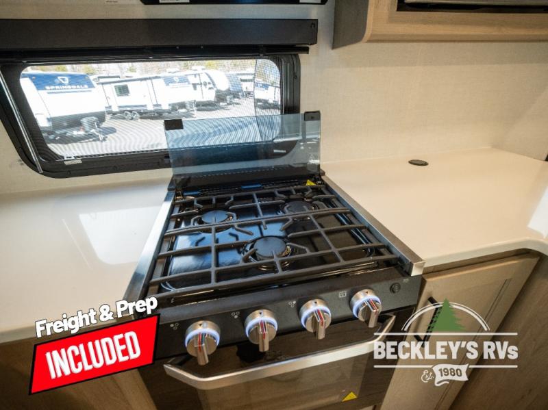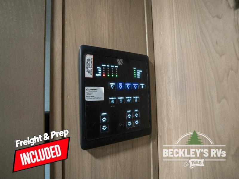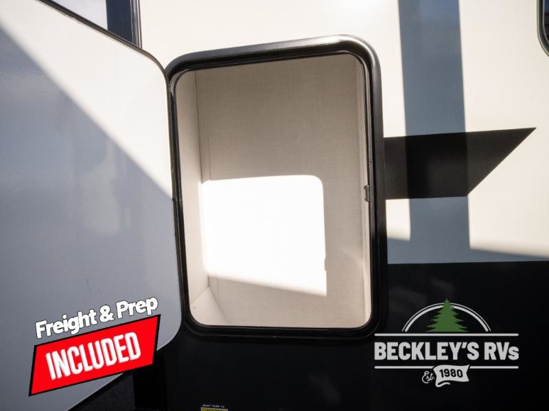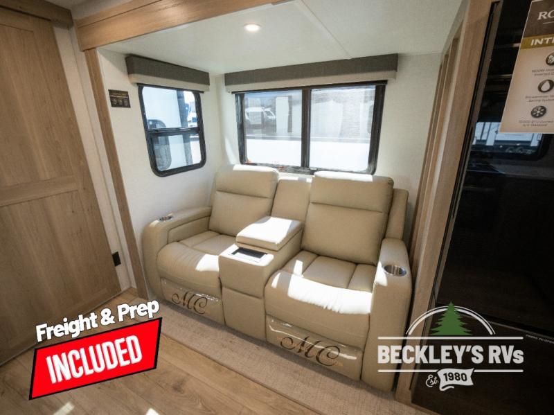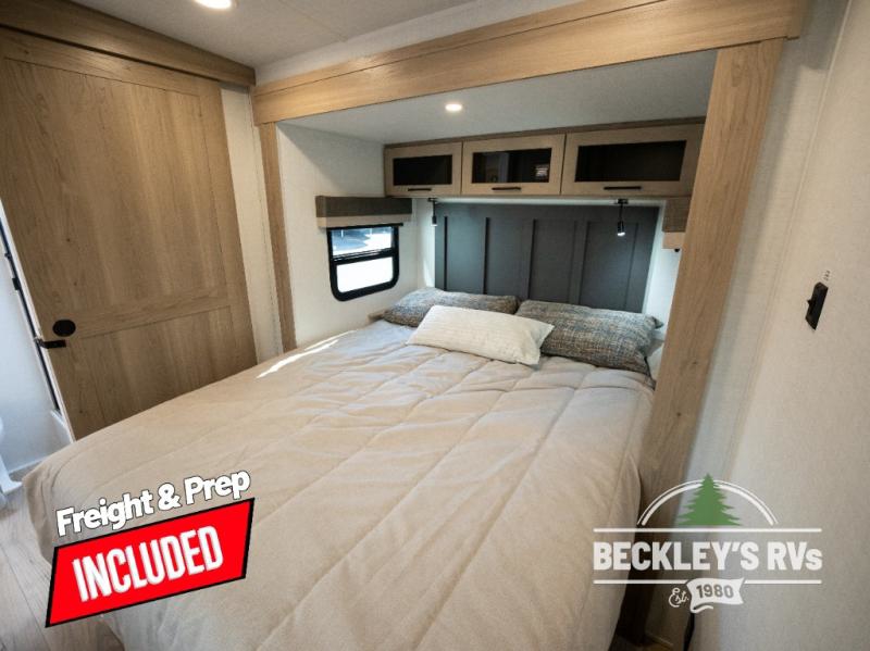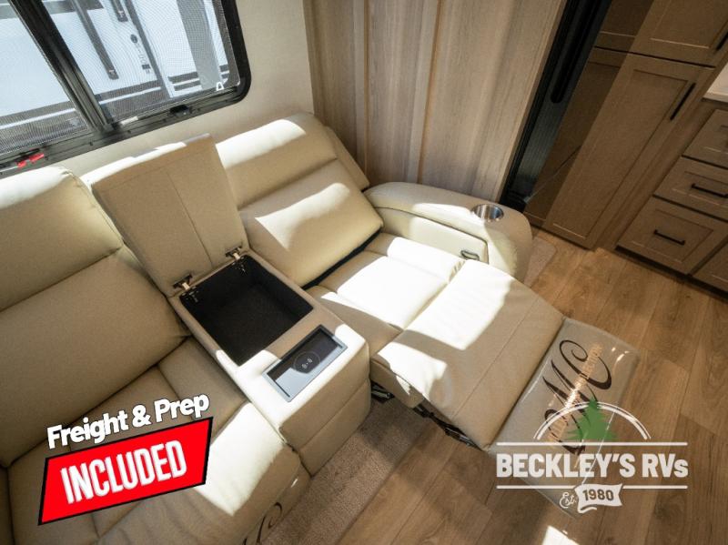 This travel trailer is the best option for you and your partner! The lavish full rear bathroom features a spacious layout and a convenient linen closet, perfect for relaxation and refreshment. The elegant bedroom boasts a plush queen bed, ample wardrobe space, and stylish dresser, creating a serene retreat. The spacious living room and kitchen combined area is the heart of the trailer, featuring plush theater seating for cozy movie nights, a generous closet for storing essentials, and a 12V Smart TV for entertainment on the go. Plus, the expansive countertop with chairs provides a perfect spot for gourmet meals or socializing, while the premium three-burner cooktop, kitchen pantry, and microwave make meal prep and cooking a true delight.