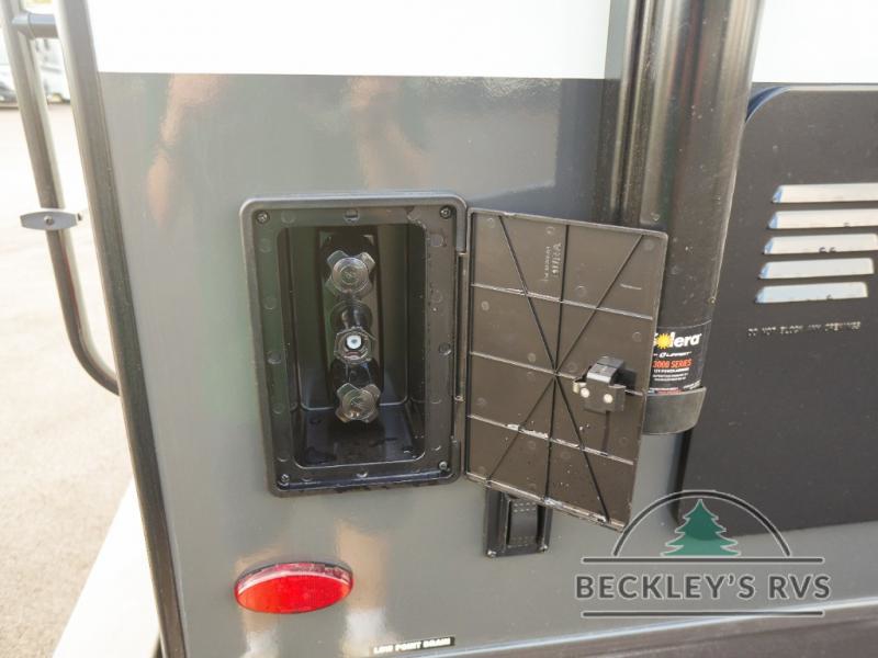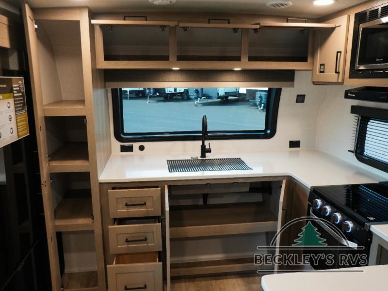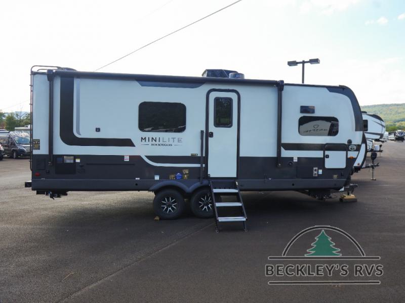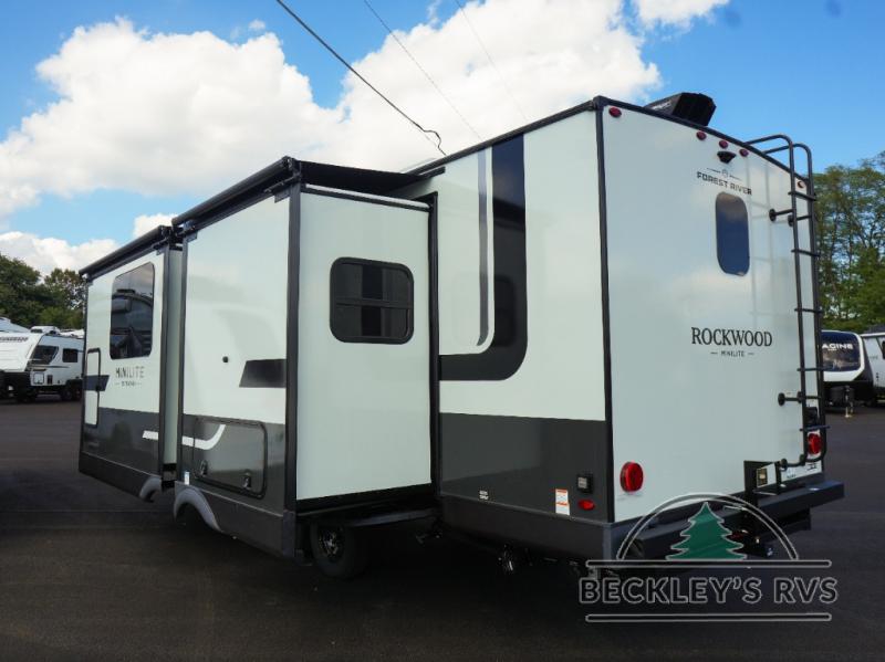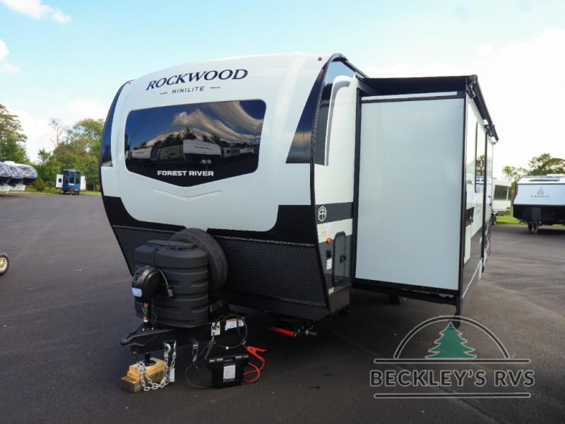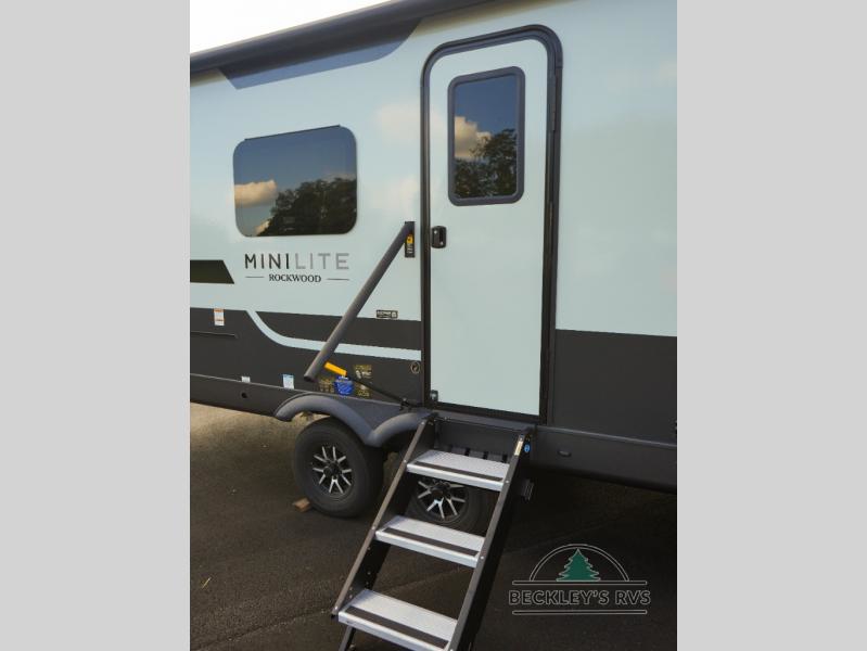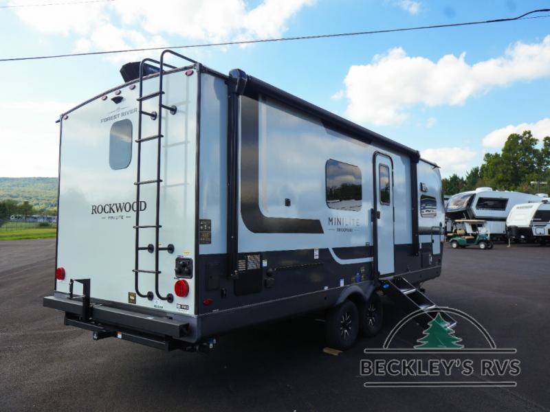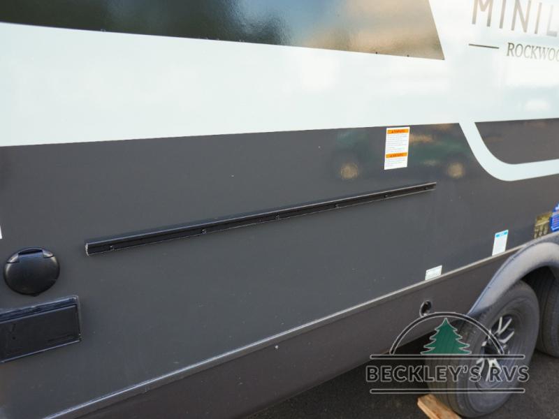 Each Rockwood Mini Lite travel trailer by Forest River is constructed with a fully laminated one-piece walkable roof, sleek frameless windows, and a six-sided full aluminum frame for strength and durability. The 12V thermostatically controlled heated tanks, plus radiant foil in the underbelly will allow you to camp well into the colder months, and the 200W roof solar panel will be perfect for a little off-gridding. Each model includes solid surface kitchen countertops, hidden hinge cabinet doors, roller shades, plus many more interior features. Having an AIR 360+ omnidirectional antenna with WiFi prep on board gives you the option to get some work done if it's needed, and the power tongue jack provides hassle-free set up, so you can enjoy more time relaxing!