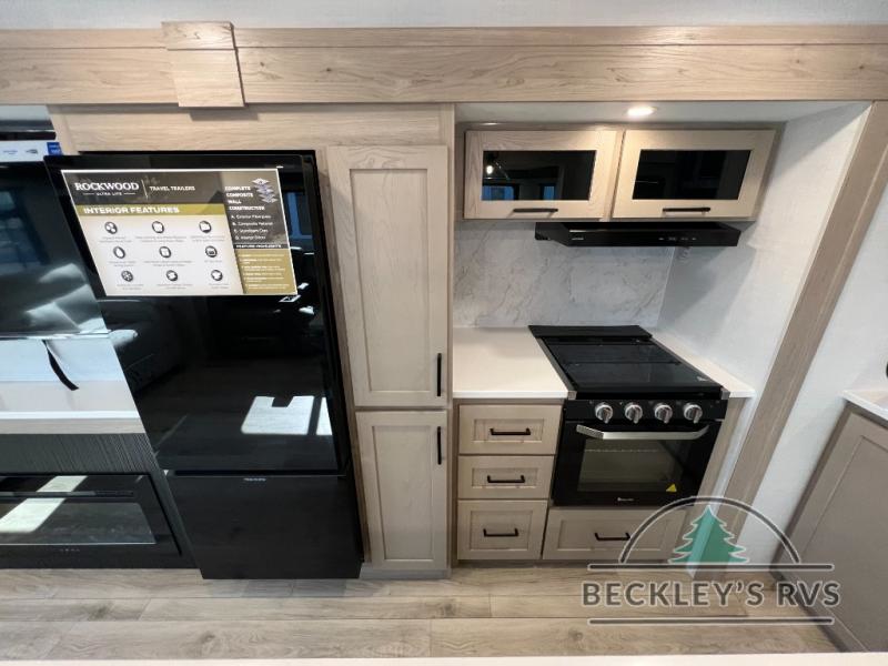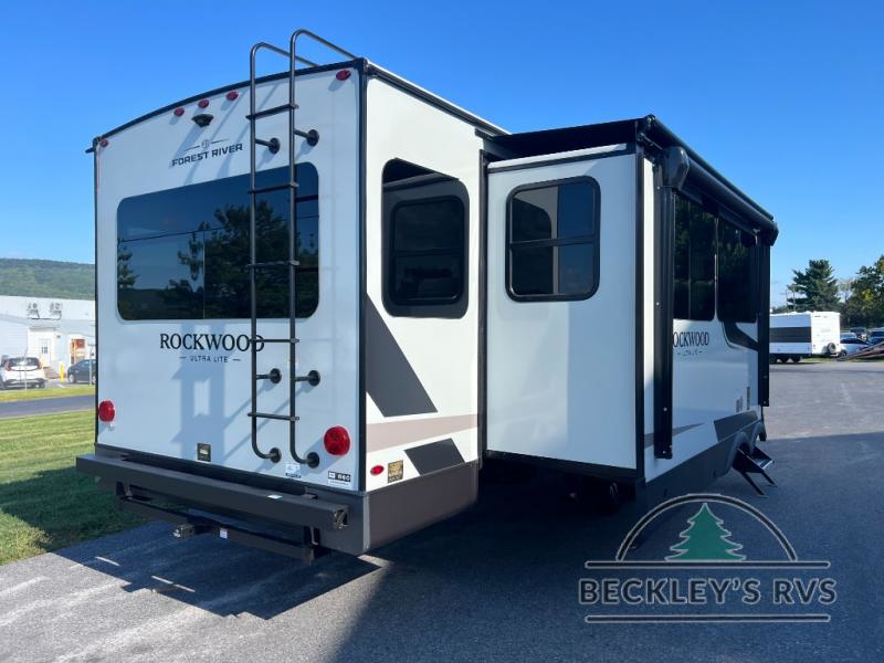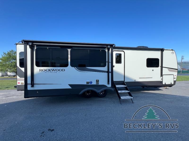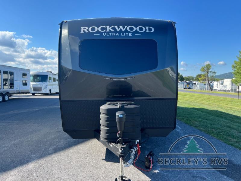 Each Rockwood Ultra Lite travel trailer by Forest River includes superior construction with a high gloss fiberglass cap, aluminum cage construction, and a power awning with LED lighting for a cozy and functional outdoor space. The torsion axle, power tongue jack will make towing smooth and hassle-free, along with the nitrogen filled, Goodyear Endurance tires and the tire pressure monitor system. Interior comforts include kitchen sink with high rise faucet, hidden hinge cabinet doors, and roller shades to name a few. Choose a Rockwood Ultra Lite travel trailer today!