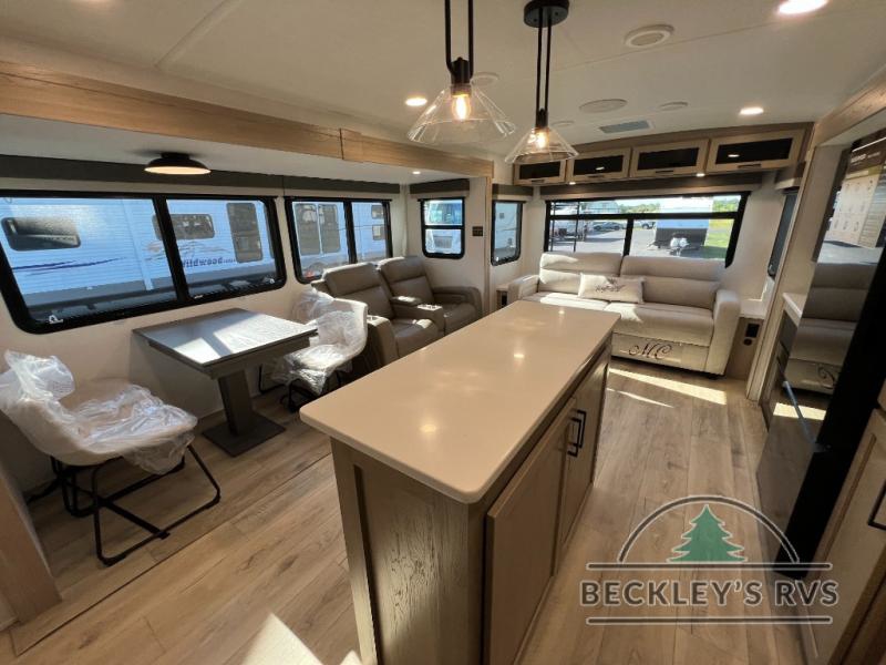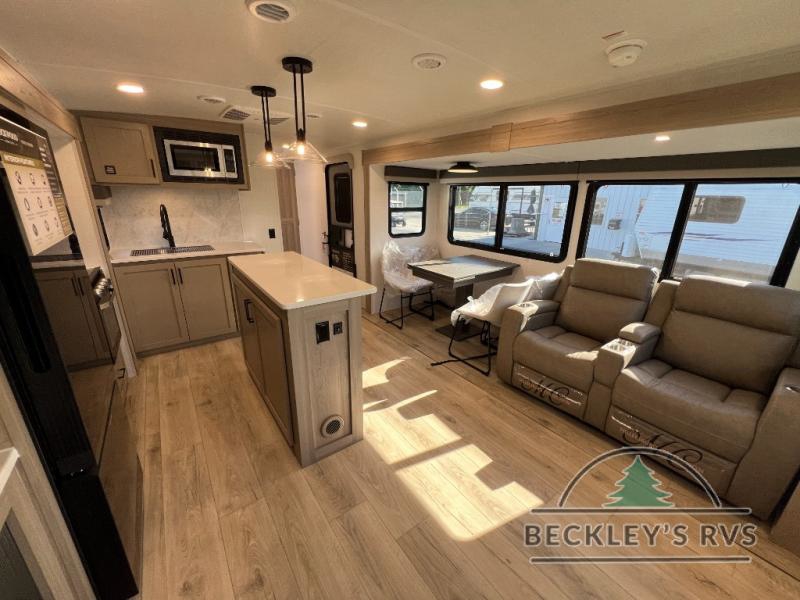 This Forest River Rockwood Ultra Lite 2906RL travel trailer is designed for comfort and space, featuring dual opposing slides in the main living area that open up the rear living room for everyone to gather. Whether you're relaxing on the hide-a-bed sofa, kicking back in the theater seats, or enjoying a meal at the booth dinette, there's room for the whole gang. The kitchen island adds extra counter space, perfect for laying out plates and creating a buffet-style spread. Up front, the private bedroom offers a queen bed and two wardrobes, giving you plenty of storage for clothes and essentials. Along with two awnings outside, you can enjoy morning sunrises or evening sunsets with friends and family.