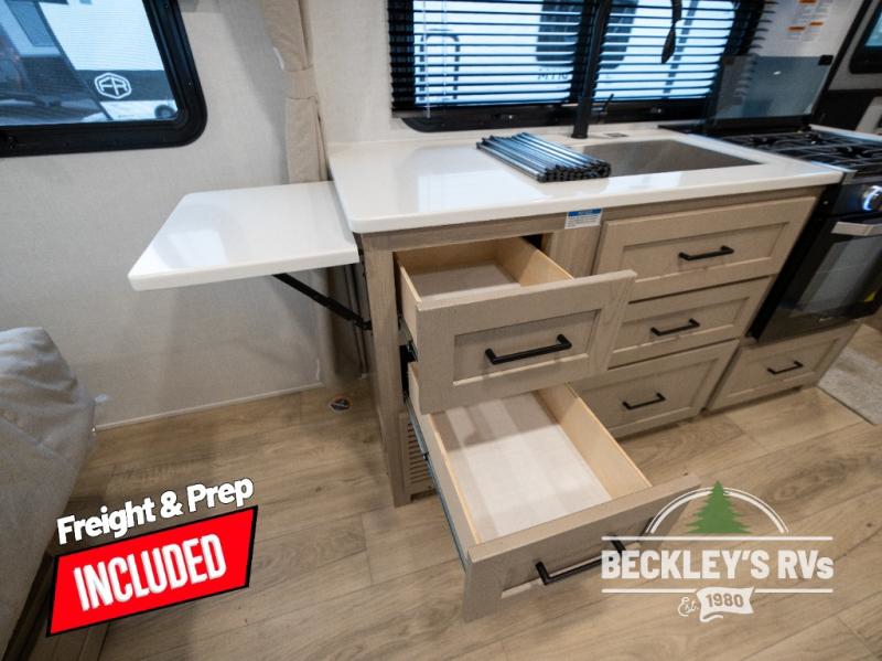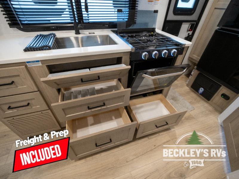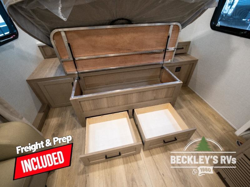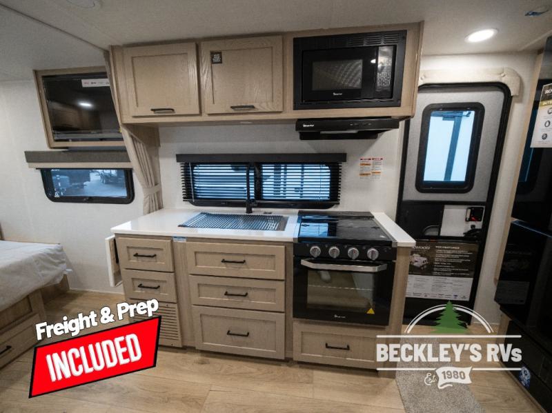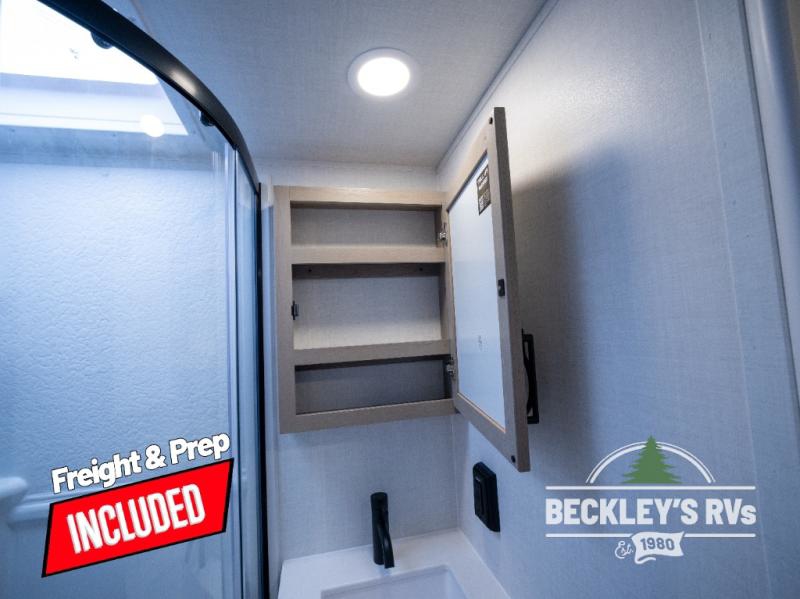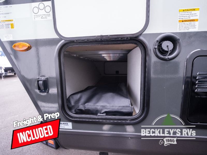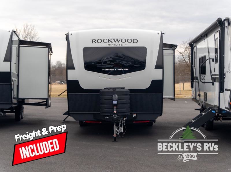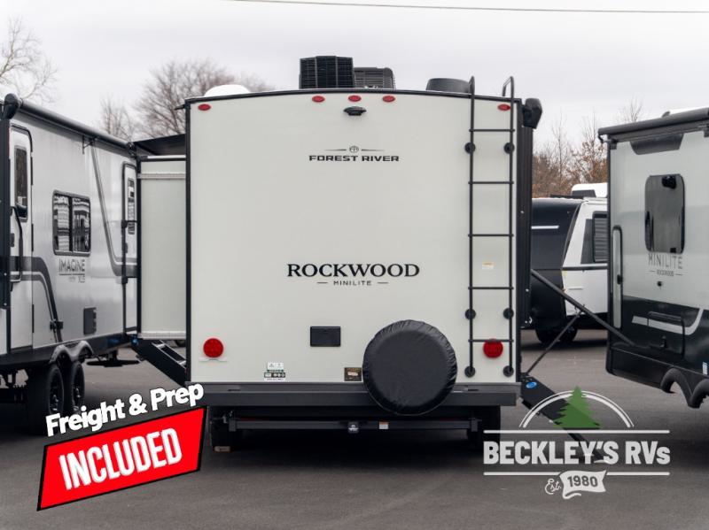 Each Rockwood Mini Lite travel trailer by Forest River is constructed with a fully laminated one-piece walkable roof, sleek frameless windows, and a six-sided full aluminum frame for strength and durability. The 12V thermostatically controlled heated tanks, plus radiant foil in the underbelly will allow you to camp well into the colder months, and the 200W roof solar panel will be perfect for a little off-gridding. Each model includes solid surface kitchen countertops, hidden hinge cabinet doors, roller shades, plus many more interior features. Having an AIR 360+ omnidirectional antenna with WiFi prep on board gives you the option to get some work done if it's needed, and the power tongue jack provides hassle-free set up, so you can enjoy more time relaxing!