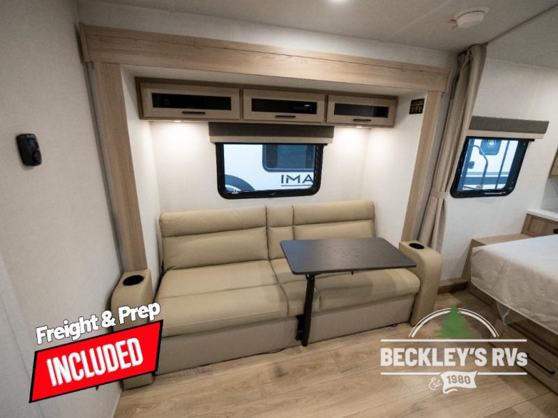 Wherever you decide to camp, you will love every minute in this cute couple's trailer. The sofa slide with a table will provide a place to relax, eat, and even sleep an extra guest if you have one, and the front RV queen bed includes a privacy curtain to enjoy your own space. There are dual bedroom wardrobes to keep your clothes tidy, and you'll find two pass-through storage compartments for your larger gear. Since there is a full bath on board you won't have to use the camp's facilities, and you can make it a movie night with the TV in the main living area!