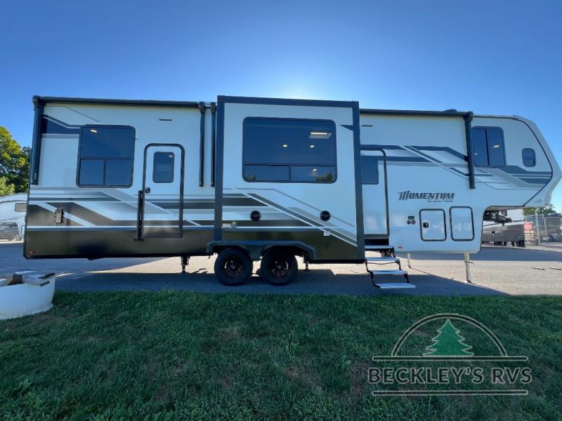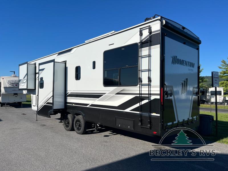 Are you looking for adventure and fun? The Momentum G-Class toy hauler by Grand Design will help you find it! You can explore during any season you choose with the Insulation Package that includes a heated and enclosed underbelly with suspended tanks, a high-capacity furnace, a moisture barrier floor enclosure, and cabinet-mounted heat ducts. Each model includes a fuel station with an interior and exterior gauge, a dovetail rear rend, and 2,500-LB tie-downs anchored into the chassis. Throughout the Momentum G-Class interior, you'll enjoy many comfortable features like large panoramic windows, a shower skylight, USB chargers in the bedroom, and residential cabinetry.