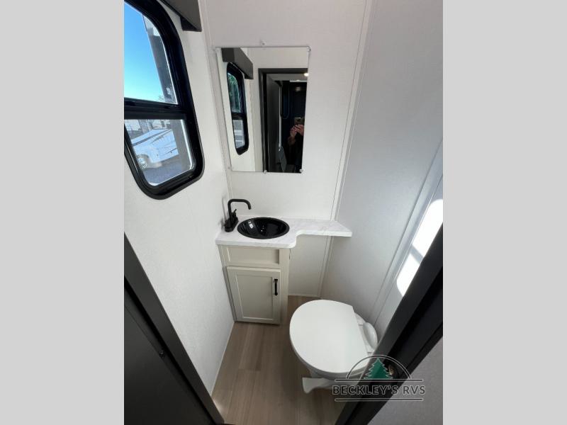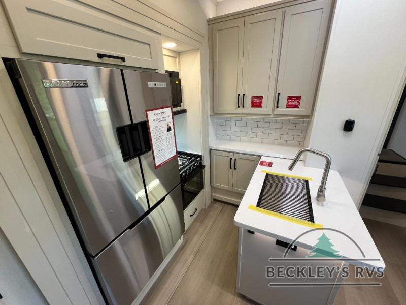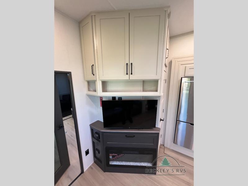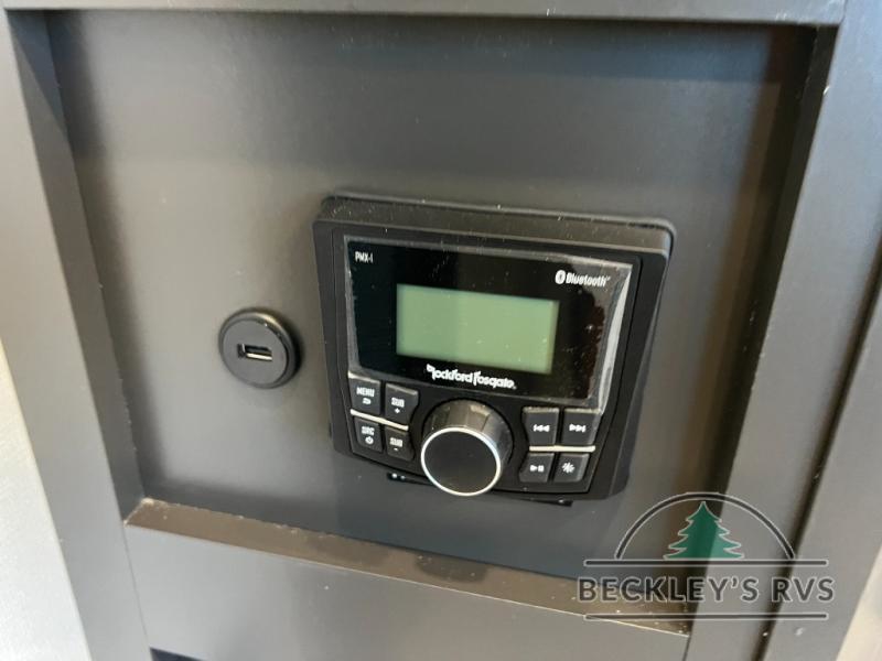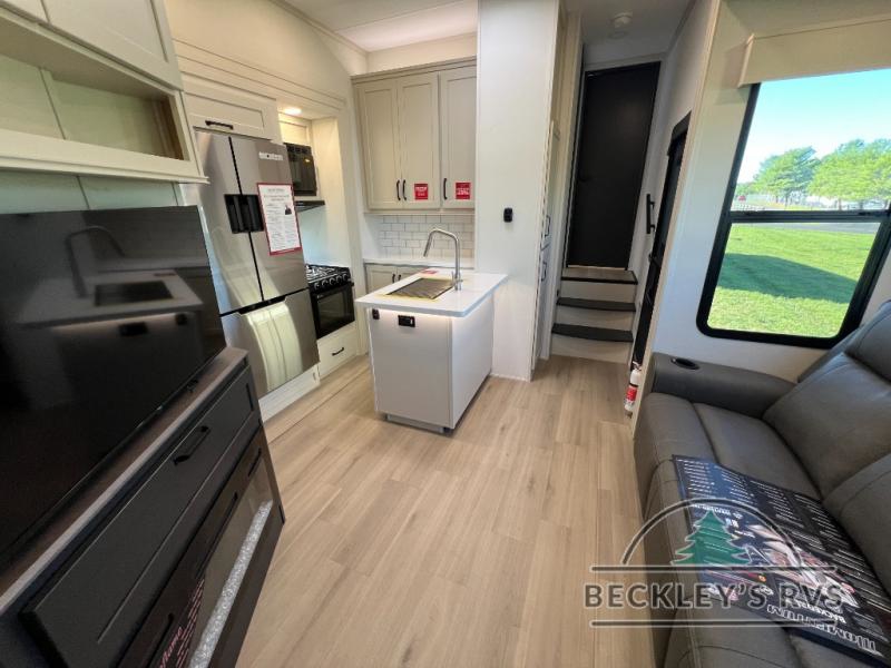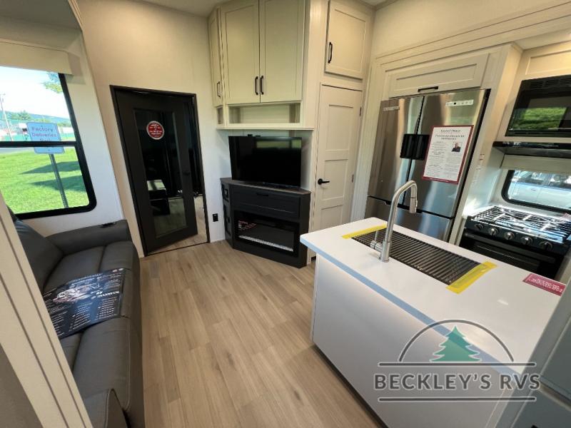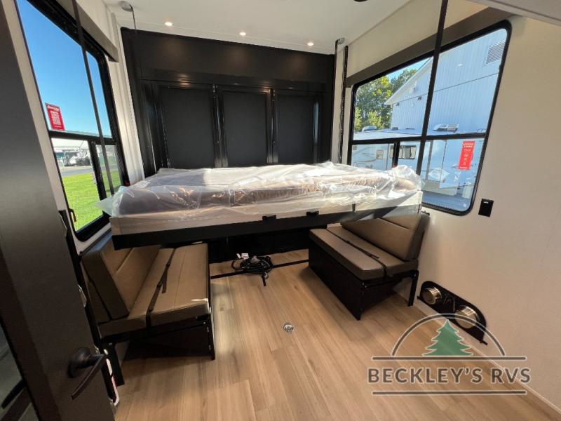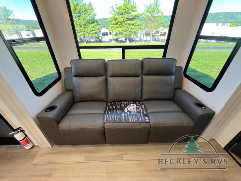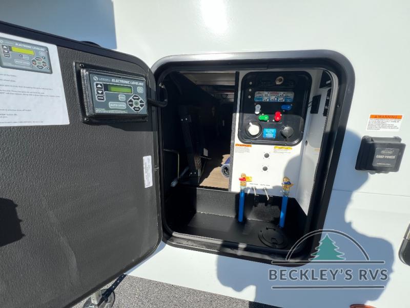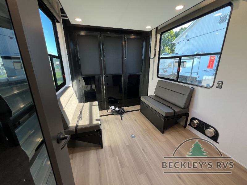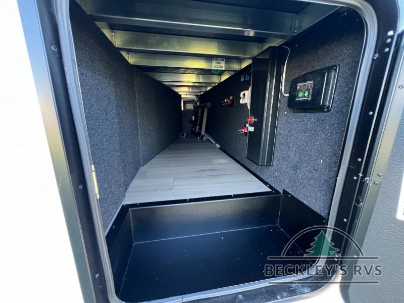 Are you looking forward to arriving at your destination, unloading your toys from an 11' separate garage, and heading out to the dunes? You can return to this Momentum G-Class toy hauler afterwards to find the convenience of having a full and half bath, two entry doors, and a loft bed. The rear ramp door can even be converted into a patio, plus there are exterior speakers to keep the party going! You will also appreciate the separate living area with a fireplace, theater seating slide, and full kitchen amenities. The front bedroom offers an escape to rest and relax for the next ride. Take a look outside and inside because you will be sold!