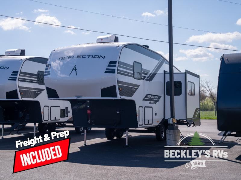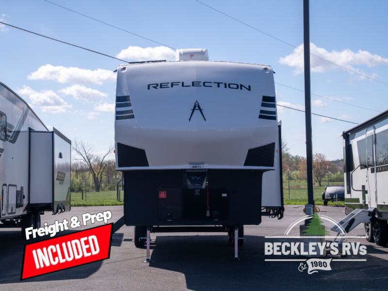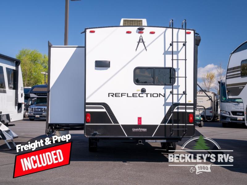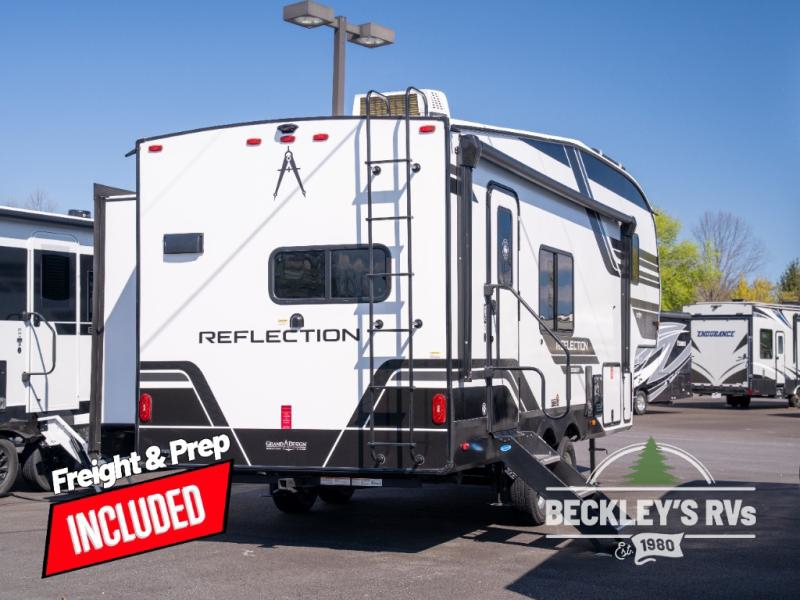 Each Reflection 100 Series fifth wheel by Grand Design is affordable and packed with luxury for unforgettable camping memories! The MorRyde CRE3000 suspension system and Goodyear Endurance tires will provide smooth towing from home to campground. And the solar package with a 180W solar panel, 60 Amp charge controller and 12V refrigerator will allow you to camp for longer periods of time and in more locations! A heated and enclosed underbelly with circulating heat is included in the Arctic 4-Seasons Protection Package, along with a double insulated roof and front cap, and thermofoil insulation under the holding tanks so you can camp all year long if you choose. You will appreciate having an on-demand water heater for hot showers after exploring, and the universal all-in-one docking station will let you monitor your RVs tanks levels and functions with ease. These models also include many luxurious interior features, such as premium Congoleum flooring, pleated shades, residential cabinetry, and matte black fixtures and hardware. Don't let the Reflection 100 Series fifth wheels pass you by!