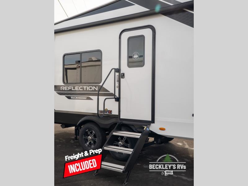 With any Reflection 150 Series fifth wheel by Grand Design, there is more available payload capacity and a broader range of half-ton trucks capable of towing this fifth wheel, and no slider hitch is needed thanks to the 90-degree turning radius which makes them short bed friendly and easier to tow. The mandatory Ultimate Power package provides a "One-Touch" automatic leveling system and a detachable power cord with LED light for easy setup, plus motion sensor pass-through lighting and entry lighting, and the Tire Linc TPMS will help you stay safe on the road. The interior offers residential cabinetry and premium Congoleum flooring, to the booth dinette and residential-style window treatment. Make your refined decision today!