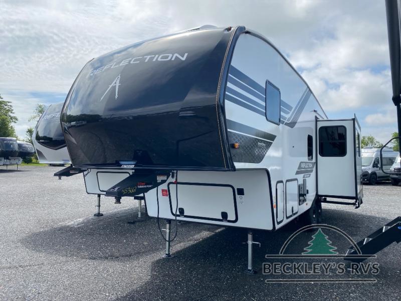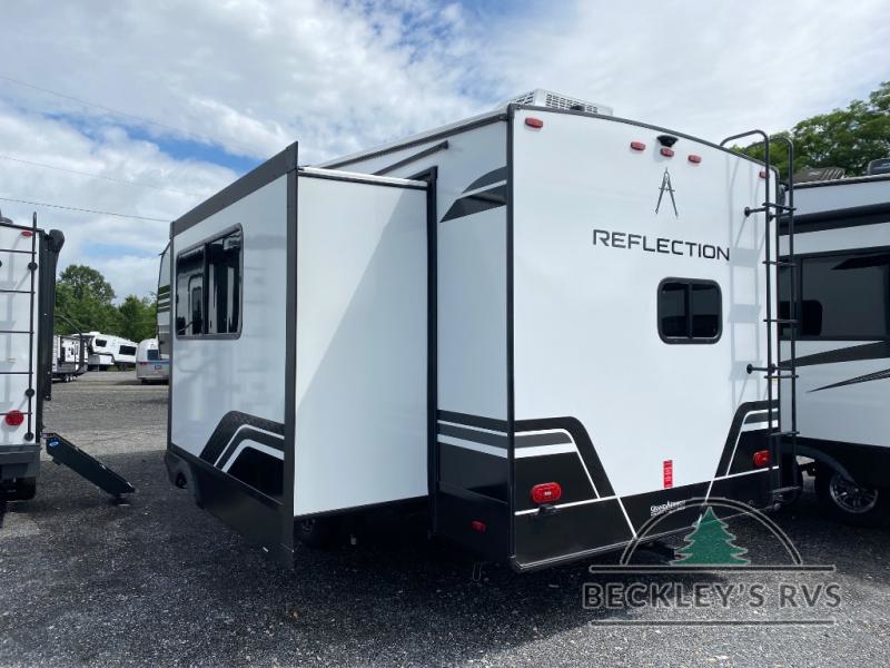 With any Reflection 150 Series fifth wheel by Grand Design, there is more available payload capacity and a broader range of half-ton trucks capable of towing this fifth wheel, and no slider hitch is needed thanks to the 90-degree turning radius which makes them short bed friendly and easier to tow. The mandatory Ultimate Power package provides a "One-Touch" automatic leveling system and a detachable power cord with LED light for easy setup, plus motion sensor pass-through lighting and entry lighting, and the Tire Linc TPMS will help you stay safe on the road. The interior offers residential luxury from the cabinetry and premium Congoleum flooring, to the booth dinette and residential-style window treatment. Make your refined decision today!
