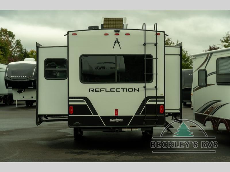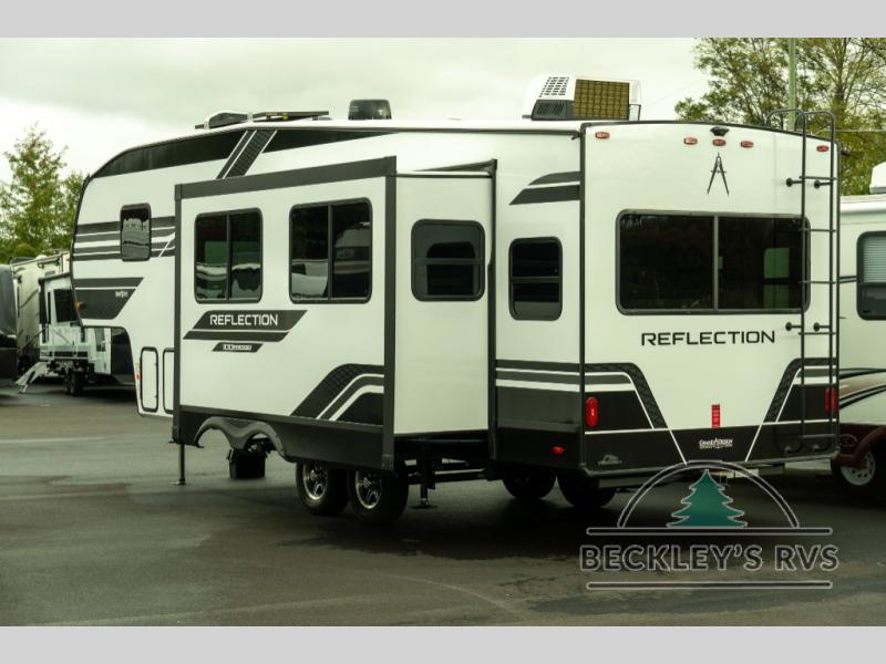Each Reflection 100 Series fifth wheel by Grand Design is affordable and packed with luxury for unforgettable camping memories! The MorRyde CRE3000 suspension system and Goodyear Endurance tires will provide smooth towing from home to campground. And the solar package with a 180W solar panel, 60 Amp charge controller and 12V refrigerator will allow you to camp for longer periods of time and in more locations! A heated and enclosed underbelly with circulating heat is included in the Arctic 4-Seasons Protection Package, along with a double insulated roof and front cap, and thermofoil insulation under the holding tanks so you can camp all year long if you choose. You will appreciate having an on-demand water heater for hot showers after exploring, and the universal all-in-one docking station will let you monitor your RVs tanks levels and functions with ease. These models also include many luxurious interior features, such as premium Congoleum flooring, pleated shades, residential cabinetry, and matte black fixtures and hardware. Don't let the Reflection 100 Series fifth wheels pass you by!