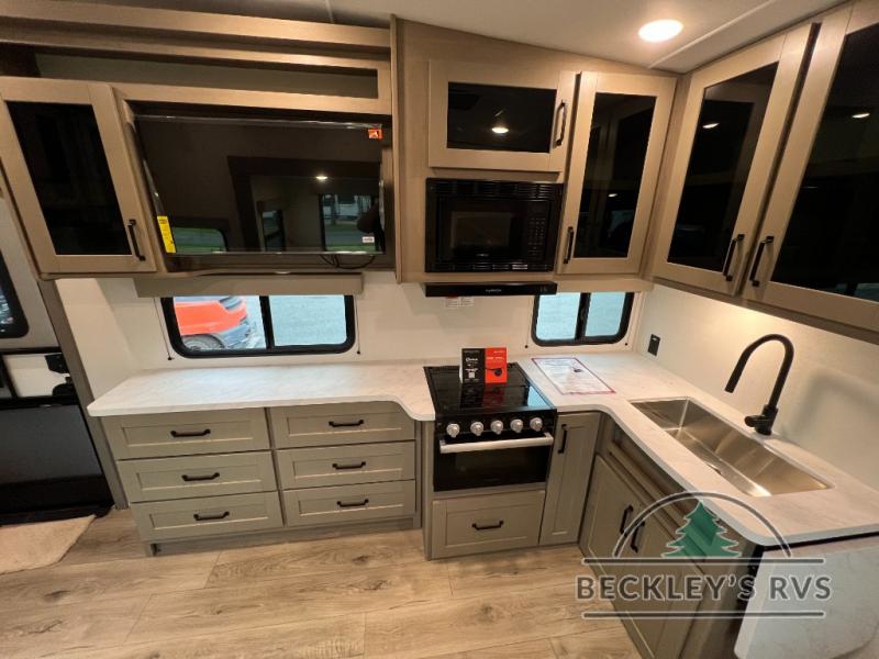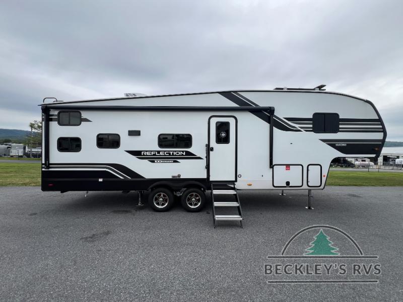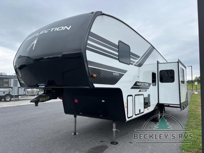Each Reflection 100 Series fifth wheel by Grand Design is affordable and packed with luxury for unforgettable camping memories! The MorRyde CRE3000 suspension system and Goodyear Endurance tires will provide smooth towing from home to campground. And the solar package with a 180W solar panel, 60 Amp charge controller and 12V refrigerator will allow you to camp for longer periods of time and in more locations! A heated and enclosed underbelly with circulating heat is included in the Arctic 4-Seasons Protection Package, along with a double insulated roof and front cap, and thermofoil insulation under the holding tanks so you can camp all year long if you choose. You will appreciate having an on-demand water heater for hot showers after exploring, and the universal all-in-one docking station will let you monitor your RVs tanks levels and functions with ease. These models also include many luxurious interior features, such as premium Congoleum flooring, pleated shades, residential cabinetry, and matte black fixtures and hardware. Don't let the Reflection 100 Series fifth wheels pass you by!