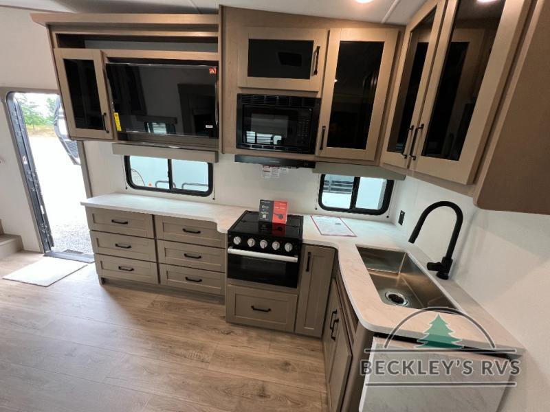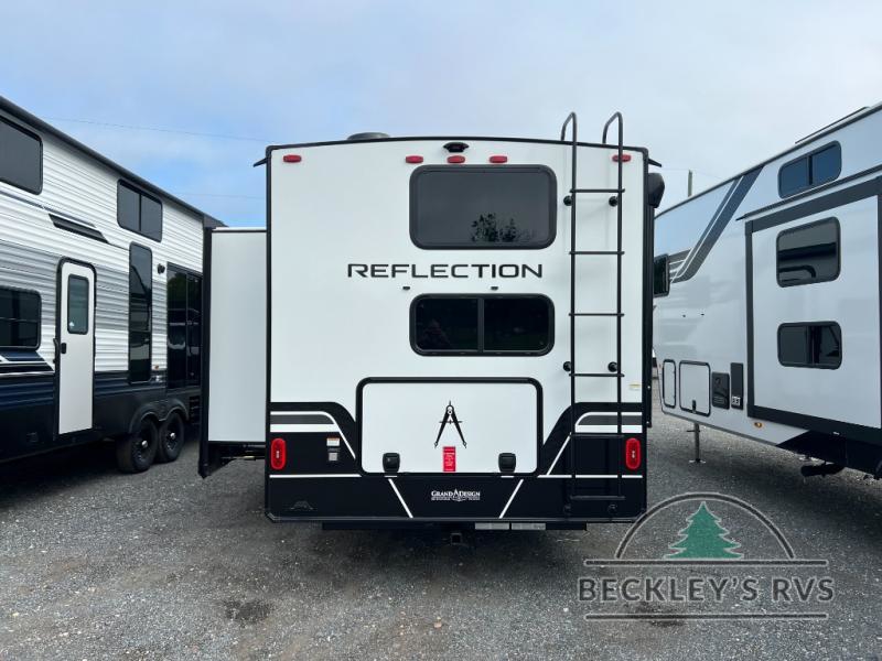 Each Reflection 100 Series fifth wheel by Grand Design is affordable and packed with luxury for unforgettable camping memories! The MorRyde CRE3000 suspension system and Goodyear Endurance tires will provide smooth towing from home to campground. And the solar package with a 180W solar panel, 60 Amp charge controller and 12V refrigerator will allow you to camp for longer periods of time and in more locations! A heated and enclosed underbelly with circulating heat is included in the Arctic 4-Seasons Protection Package, along with a double insulated roof and front cap, and thermofoil insulation under the holding tanks so you can camp all year long if you choose. You will appreciate having an on-demand water heater for hot showers after exploring, and the universal all-in-one docking station will let you monitor your RVs tanks levels and functions with ease. These models also include many luxurious interior features, such as premium Congoleum flooring, pleated shades, residential cabinetry, and matte black fixtures and hardware. Don't let the Reflection 100 Series fifth wheels pass you by!