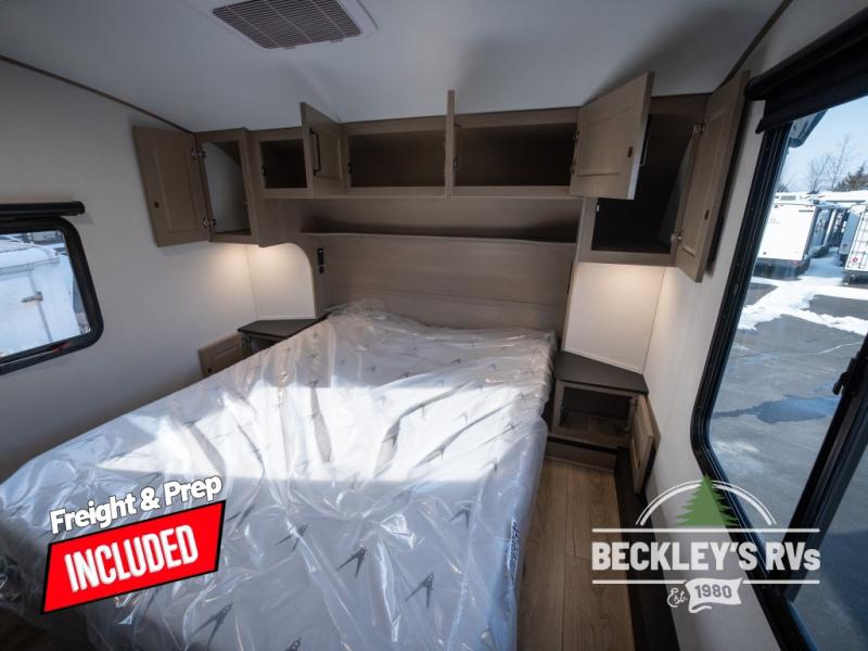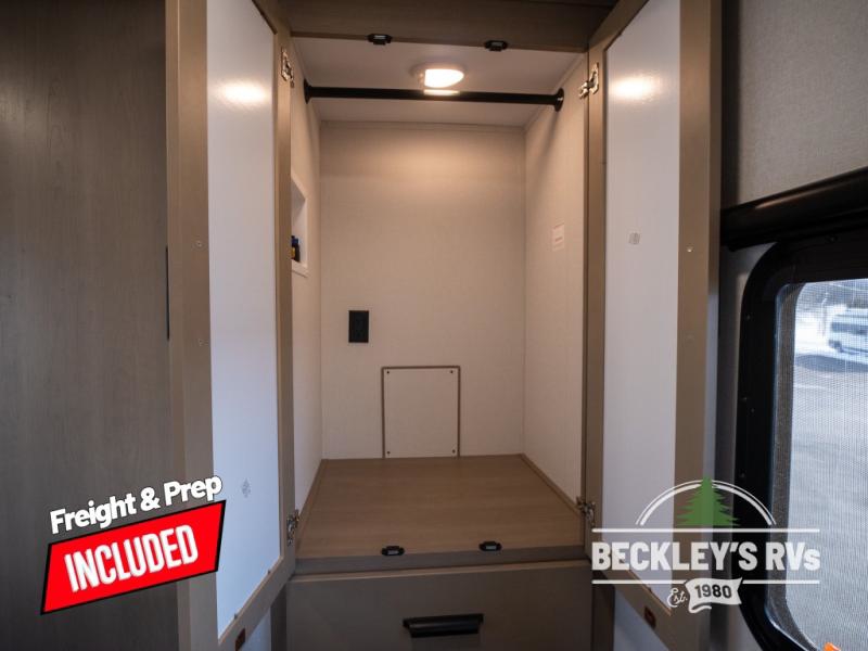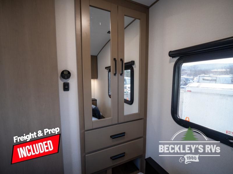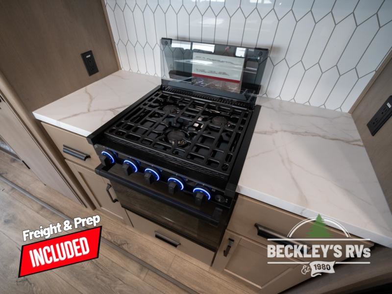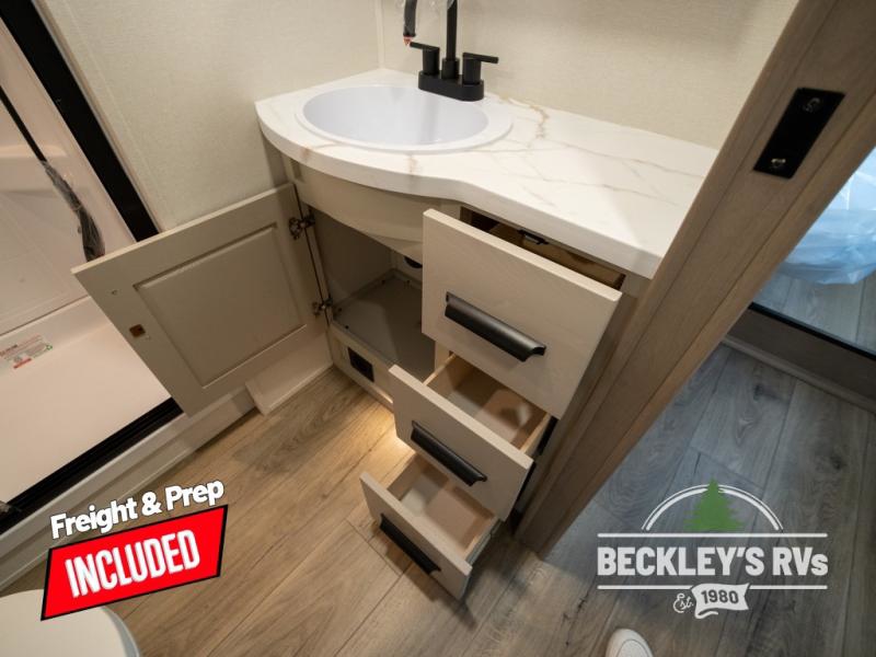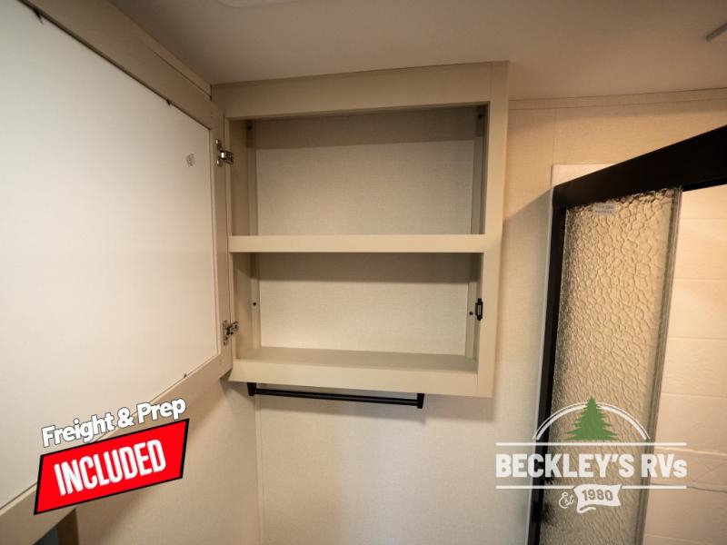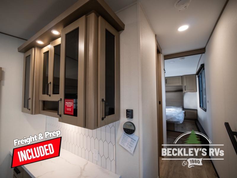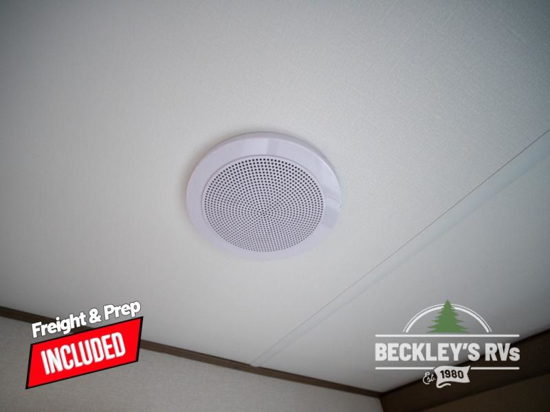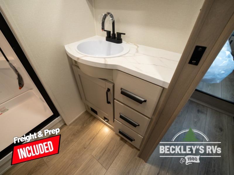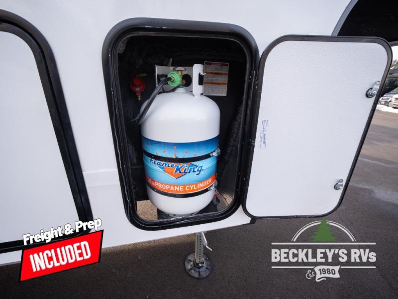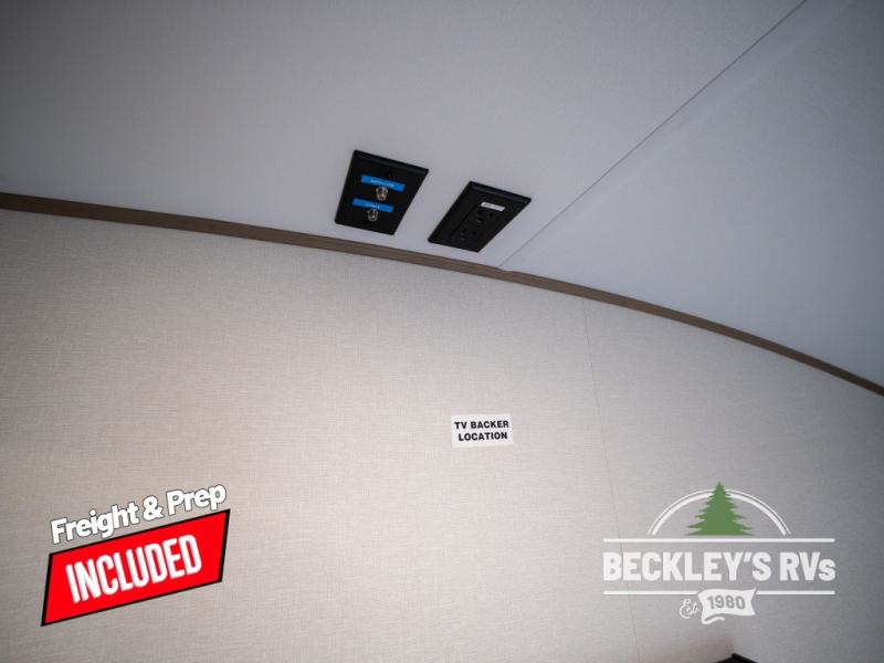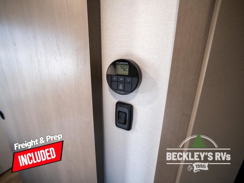 Get ready to enjoy everything the campgrounds and surrounding area has to offer when you are setup to camp in this fifth wheel! The two electric awnings offer protected areas creating outdoor living spaces; just grab your camping chairs from the unobstructed pass-through storage. And the interior offers a spacious living area and kitchen combination with dual opposing slides for maximum space. You can sit on the tri-fold sofa or the dinette to lounge back and rest after a day of adventure. The hutch and kitchen island offer counter space to prepare and serve meals, and there is a large pantry for goodies. The 40" LED HDTV with a fireplace below provides entertainment before bedtime or on a rainy day. And the front bedroom offers privacy, a walk-around queen bed, and plenty of storage!