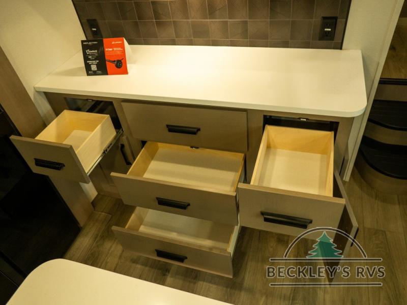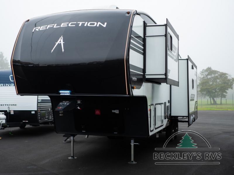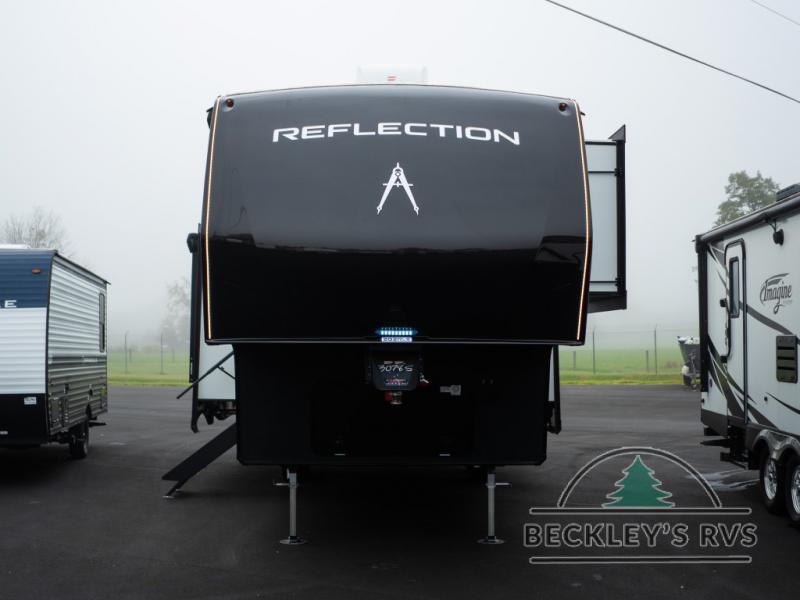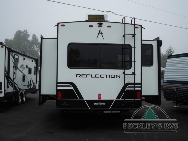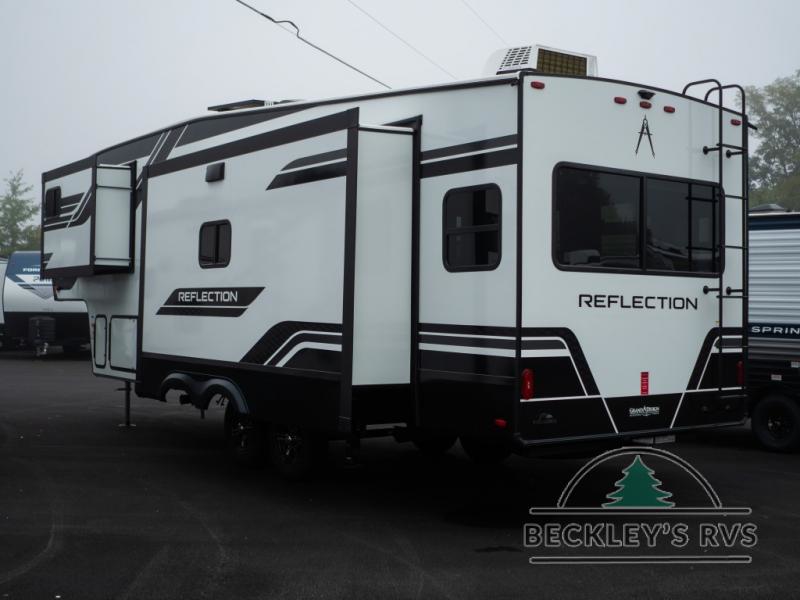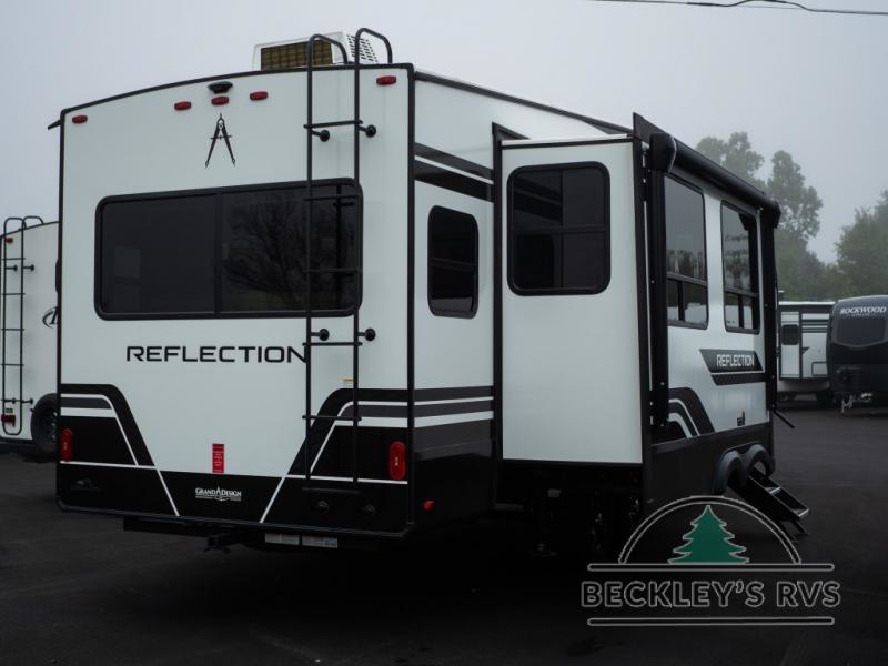 With any Reflection fifth wheel by Grand Design, you will have a solar panel for off-grid camping and a 60 amp charge controller and inverter prep, a Universal All-In-One docking station, unobstructed pass-through storage, and Goodyear Endurance tires. Each is constructed of gel coat exterior sidewalls, residential 5" truss rafters, walk-on roof decking, a fiberglass and radiant foil roof and front cap insulation plus laminated aluminum framed side walls, roof and end walls in slide rooms. Head inside to enjoy residential hardwood cabinet doors, premium Congoleum flooring, a spacious shower with a glass door, and many more comforts!