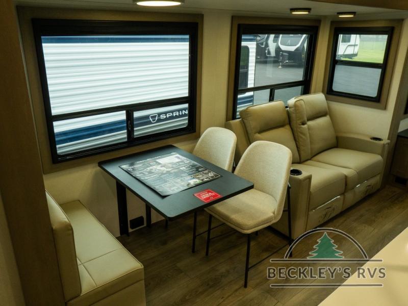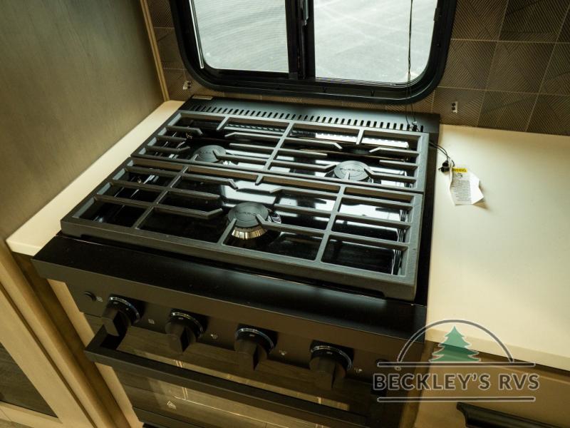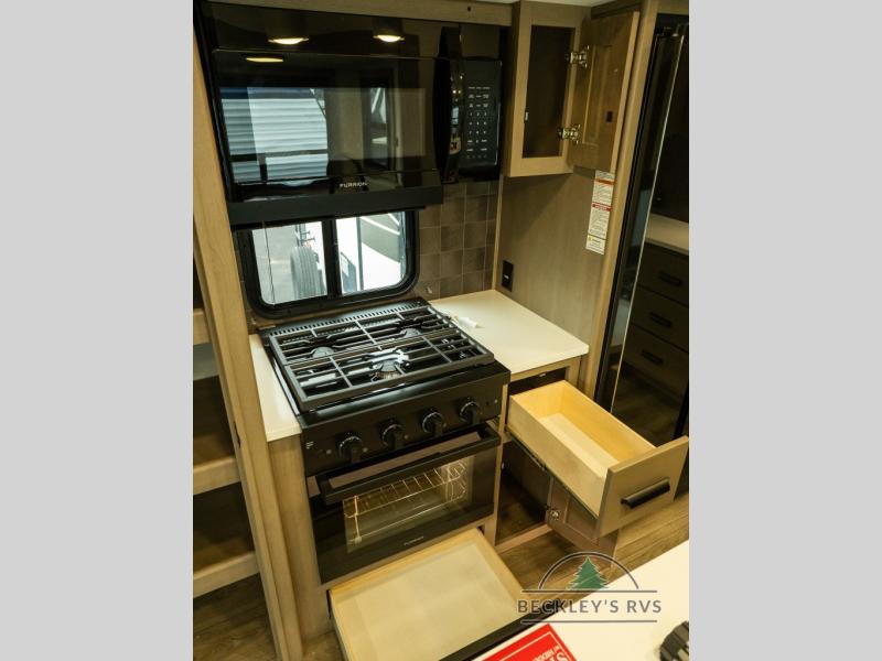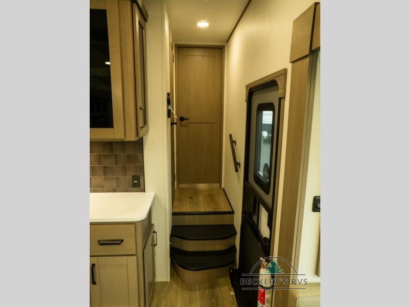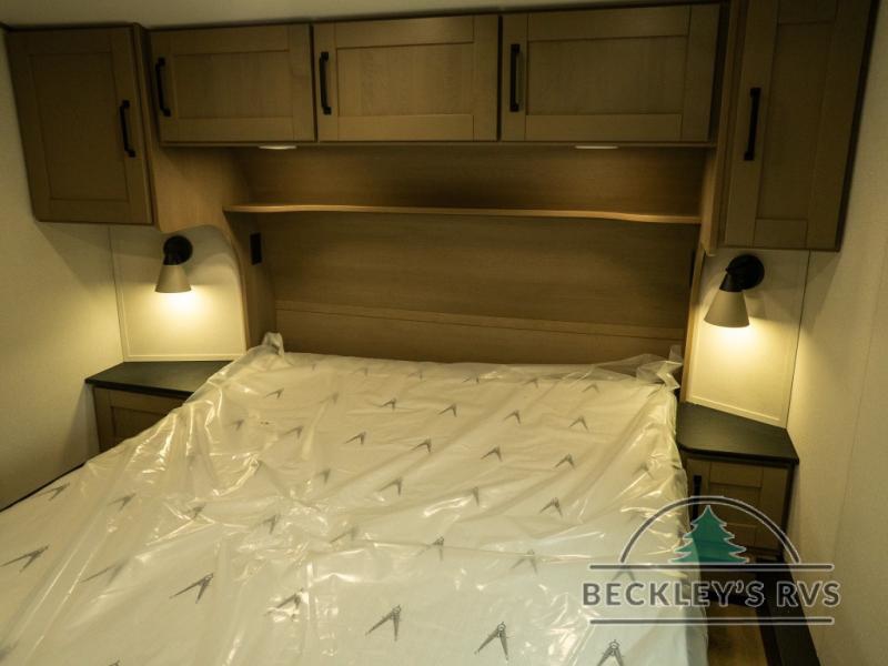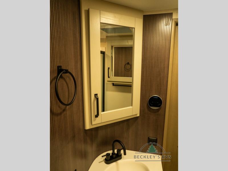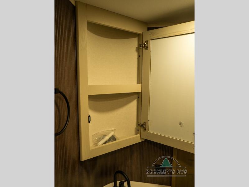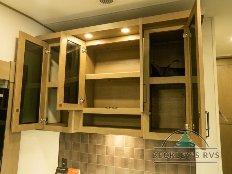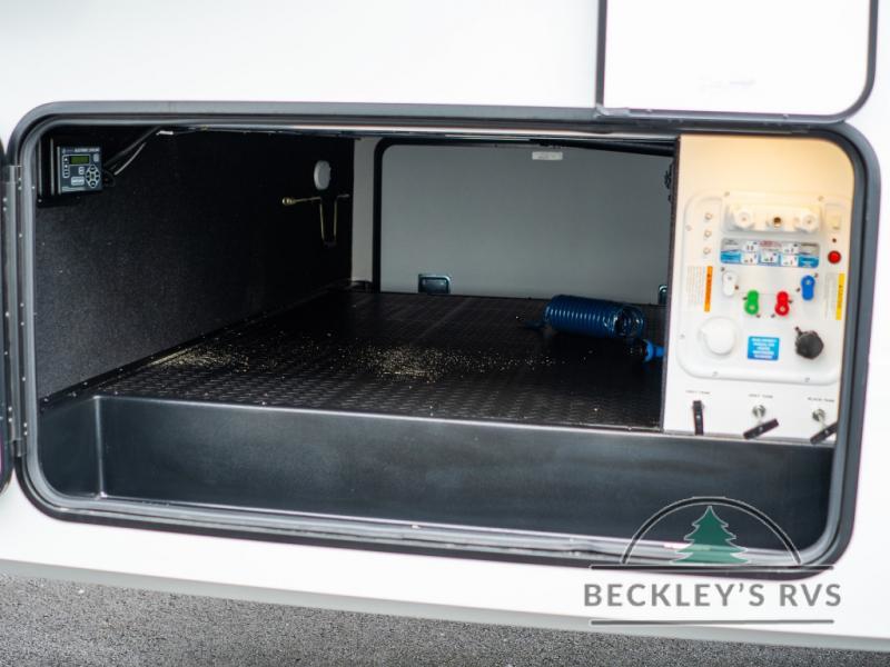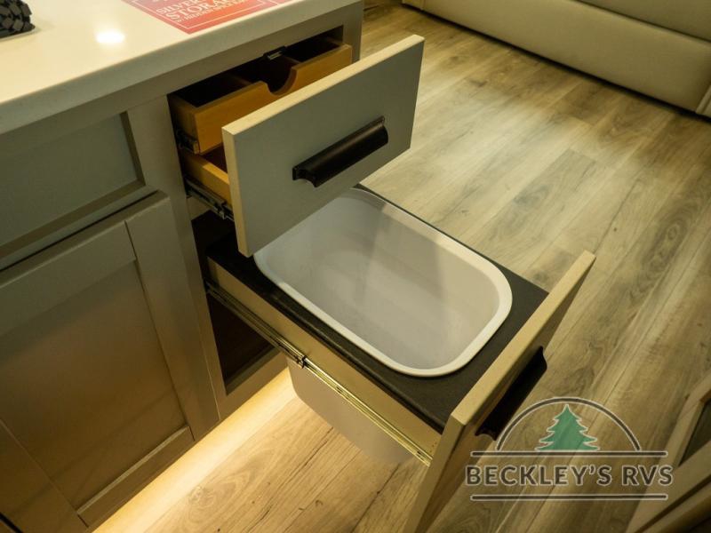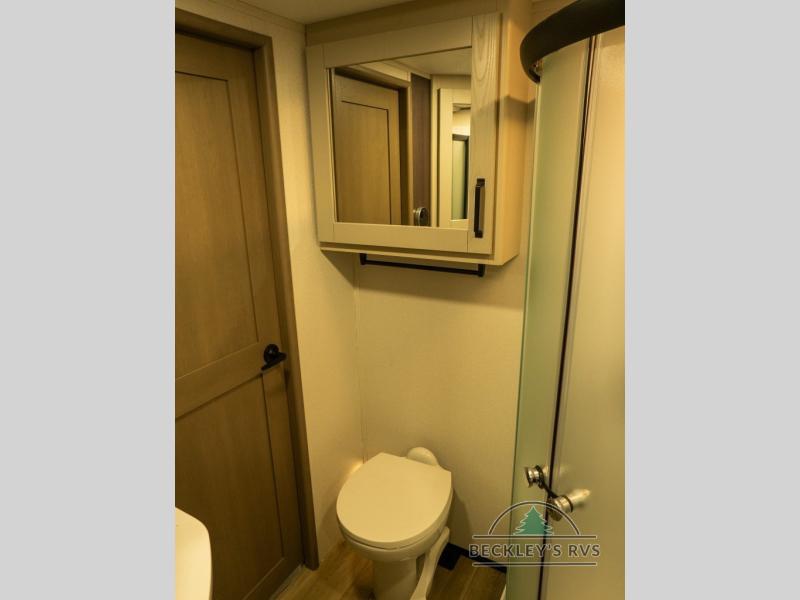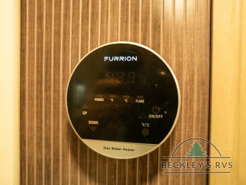 Whether you travel for pleasure or work, you will love the spacious main living and kitchen area with a rear tri-fold sofa that doubles as extra sleeping space, and the theater seating directly across from the entertainment center with a 40" LED HDTV and a fireplace below. The kitchen island will make meal prepping and drying the dishes easier and the hutch is the perfect place to place your picture frames, nice dishes, and extra cooking items. There is even a pantry that is big enough to store all of your favorite snacks, dry ingredients and such. Outside you can enjoy two electric awnings that provide protection from the elements as you relax and visit with other RVers, and your camping chairs can easily be stored in the pass-through compartment. The double entry bathroom is convenient especially at night when you can slide the door to enter from the front master bedroom. You will find plenty of storage for your clothing and gear, plus the bedroom slide out gives you drawers and linen storage that stretches into the full bathroom.