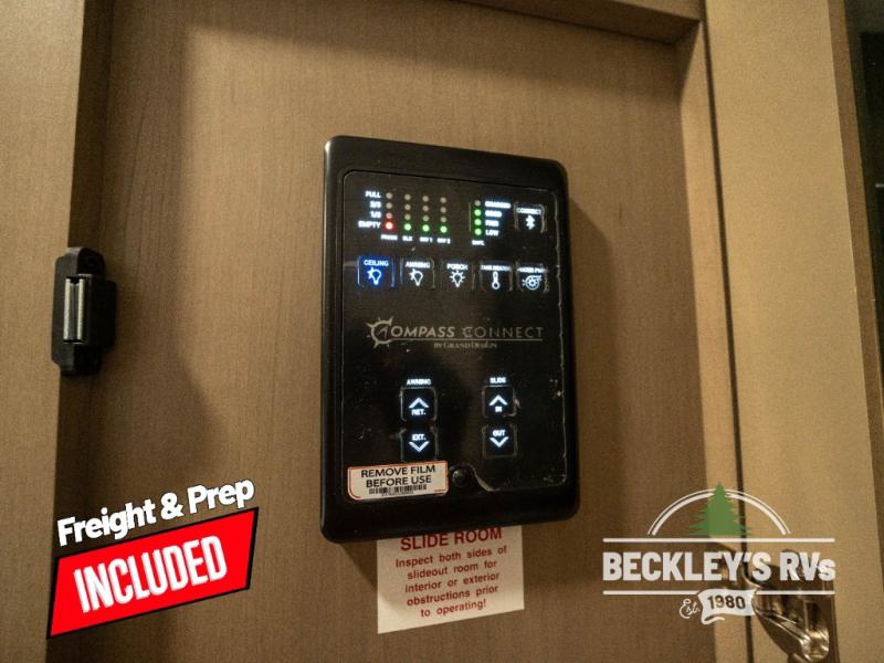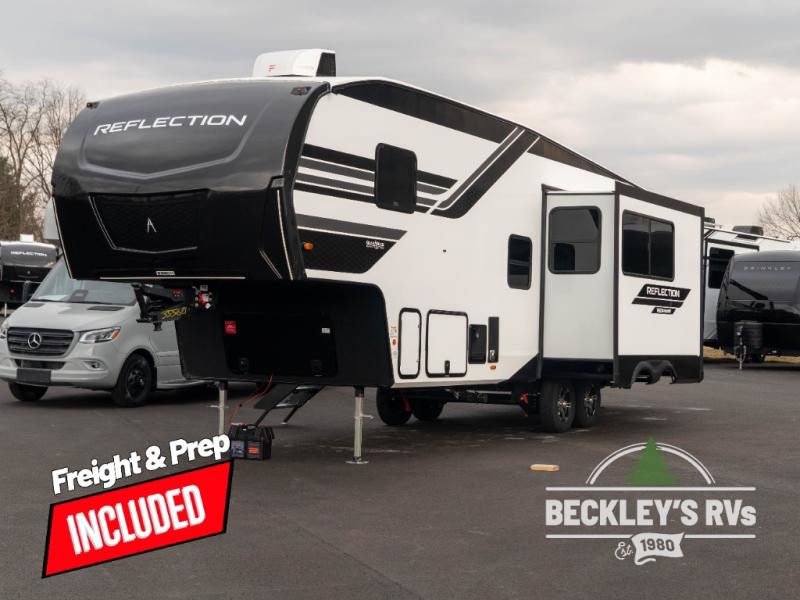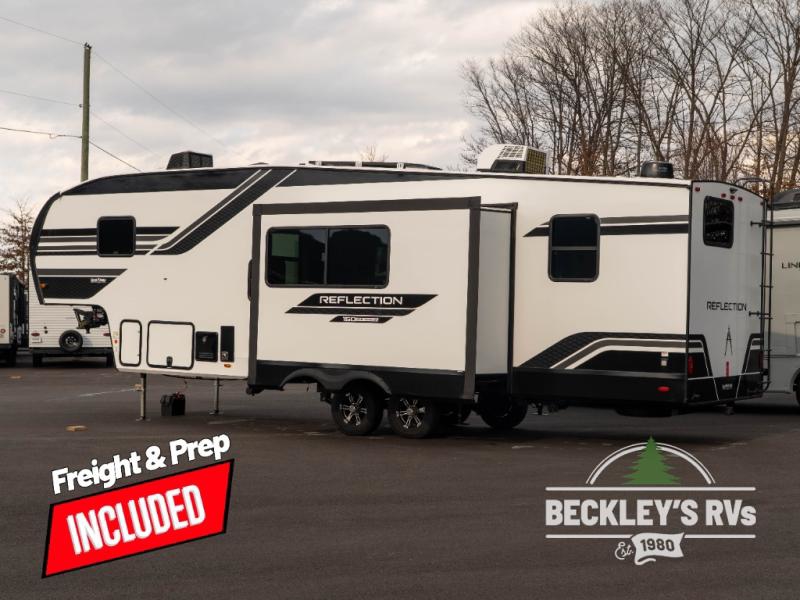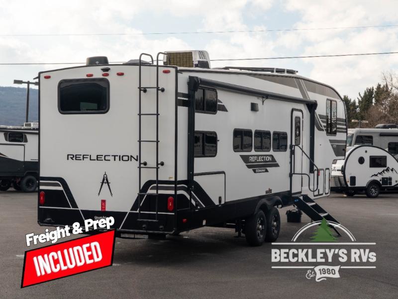 With any Reflection 150 Series fifth wheel by Grand Design, there is more available payload capacity and a broader range of half-ton trucks capable of towing this fifth wheel, and no slider hitch is needed thanks to the 90-degree turning radius which makes them short bed friendly and easier to tow. The mandatory Ultimate Power package provides a "One-Touch" automatic leveling system and a detachable power cord with LED light for easy setup, plus motion sensor pass-through lighting and entry lighting, and the Tire Linc TPMS will help you stay safe on the road. The interior offers residential cabinetry and premium Congoleum flooring, to the booth dinette and residential-style window treatment. Make your refined decision today!
