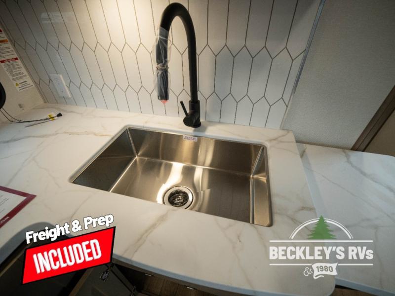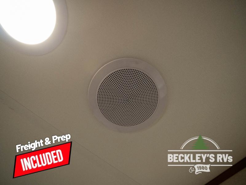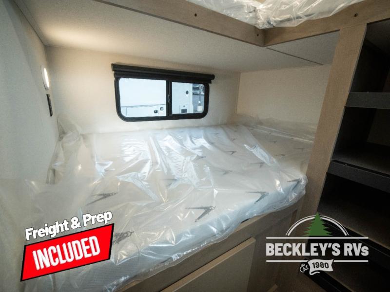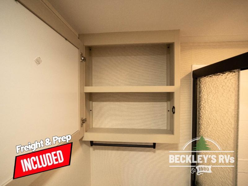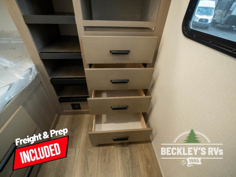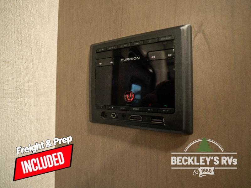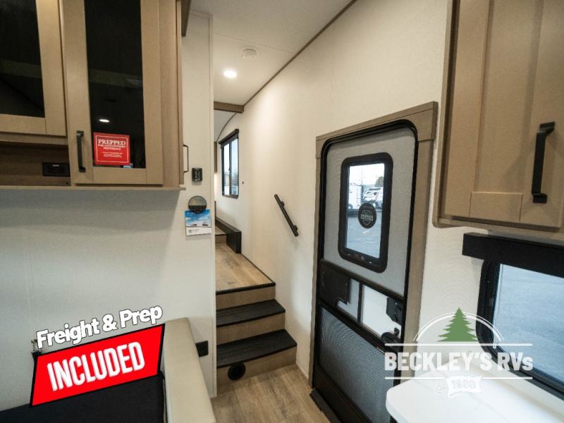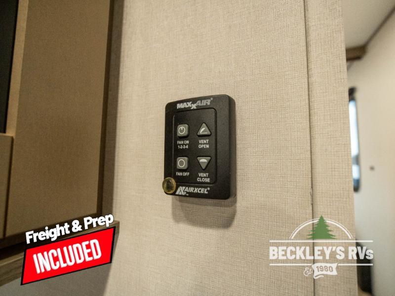 The whole family will enjoy camping in this fifth wheel! The kiddos will love having their own privacy with the rear private bunkhouse that has a 30" top bunk above a set of drawers, a 34" top bunk above a 48" lower bunk, and a TV prep area. You will enjoy having your own private retreat too with a front private bedroom that has a queen bed for a good night's rest and a wardrobe for your hang up clothes. You could even transform the U-shaped dinette and tri-fold sofa into extra sleeping spaces, and the dinette could be switched out for the optional 78" theater seating. The chef will have an easy time preparing their best dishes with the three-burner cooktop and flip-up countertop or they can breathe in some fresh air while they cook on the outside griddle and refrigerator for a cold beverage!