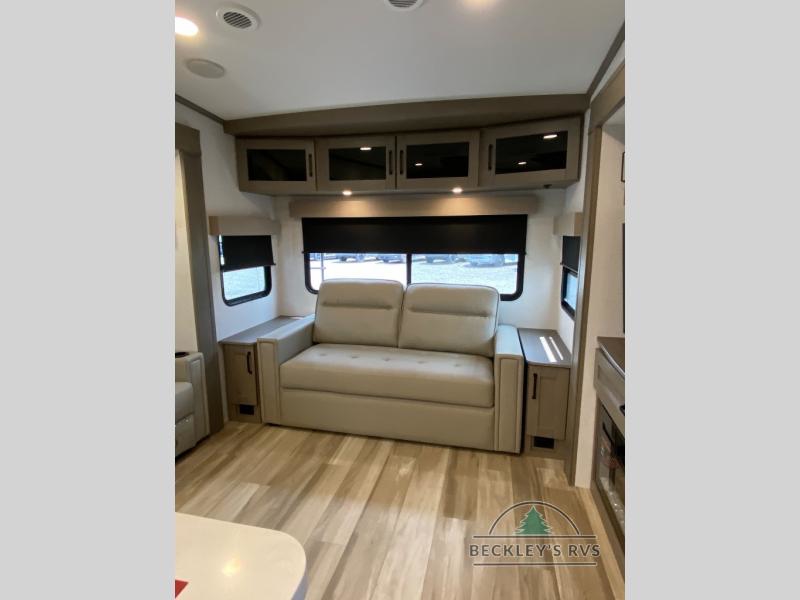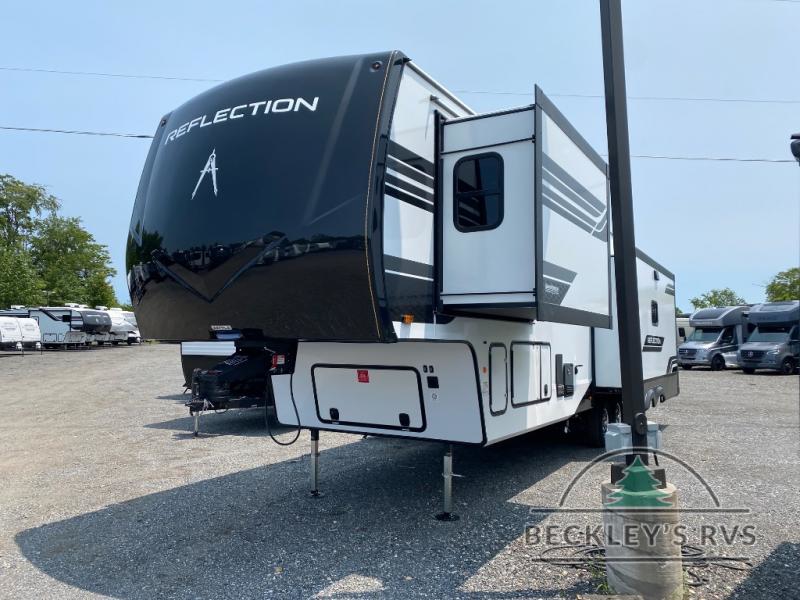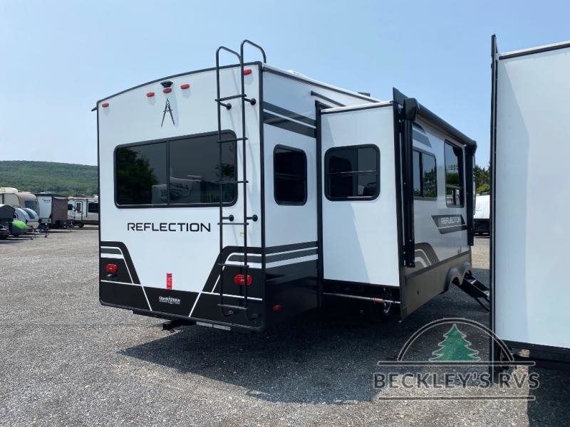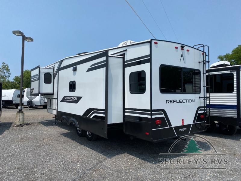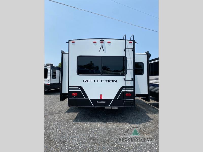 With any Reflection fifth wheel by Grand Design, you will have a solar panel for off-grid camping and a 60 amp charge controller and inverter prep, a Universal All-In-One docking station, unobstructed pass-through storage, and Goodyear Endurance tires. Each is constructed of gel coat exterior sidewalls, residential 5" truss rafters, walk-on roof decking, a fiberglass and radiant foil roof and front cap insulation plus laminated aluminum framed side walls, roof and end walls in slide rooms. Head inside to enjoy residential hardwood cabinet doors, premium Congoleum flooring, a spacious shower with a glass door, and many more comforts!