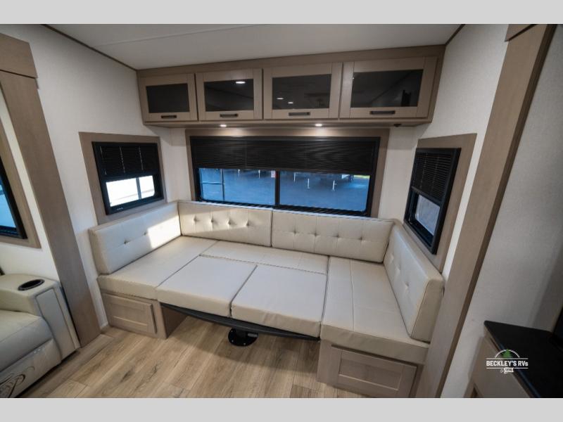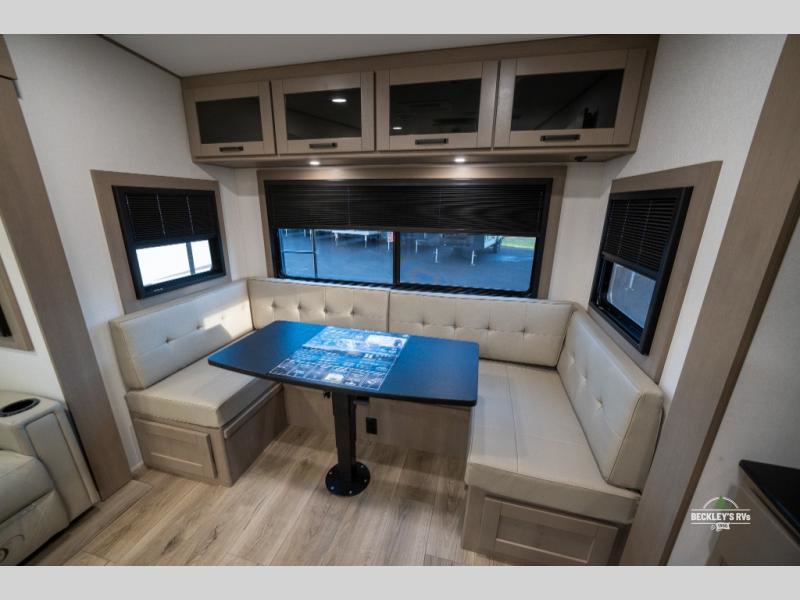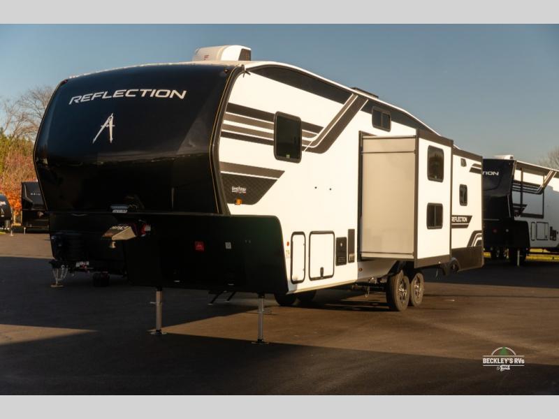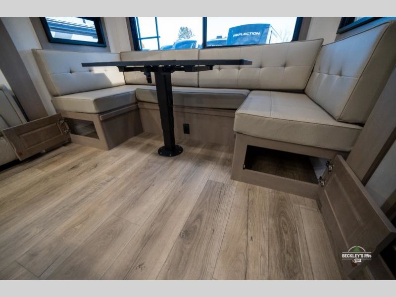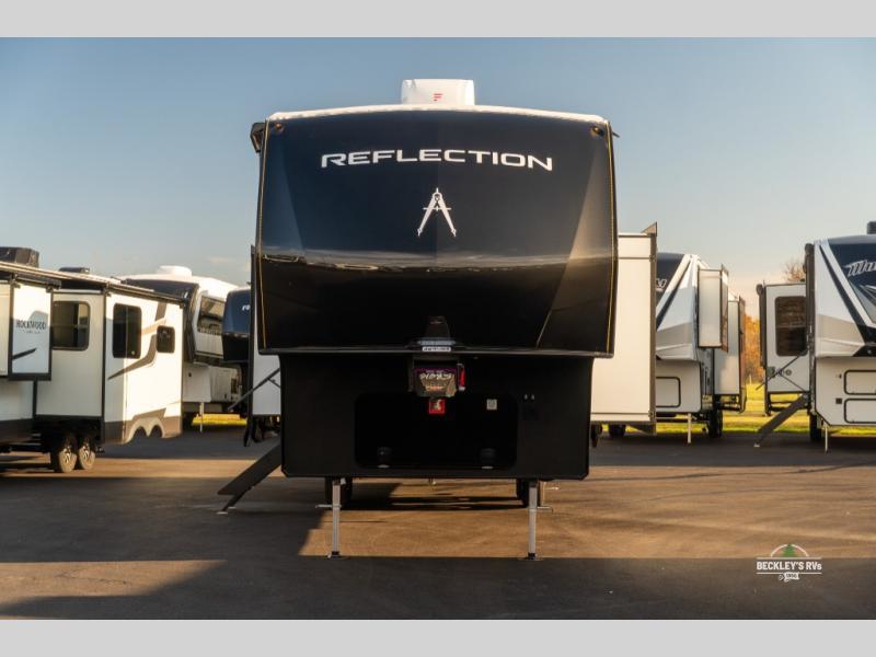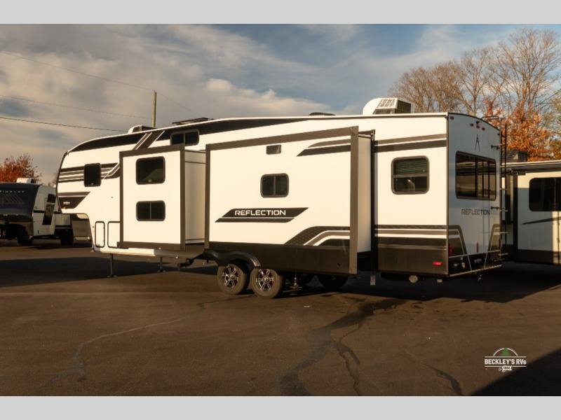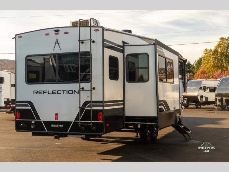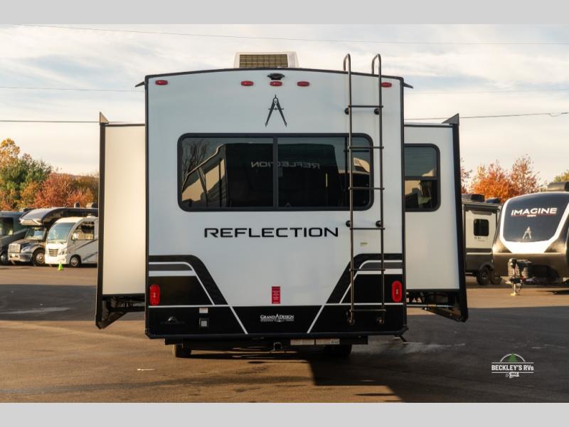 With any Reflection fifth wheel by Grand Design, you will have a solar panel for off-grid camping and a 60 amp charge controller and inverter prep, a Universal All-In-One docking station, unobstructed pass-through storage, and Goodyear Endurance tires. Each is constructed of gel coat exterior sidewalls, residential 5" truss rafters, walk-on roof decking, a fiberglass and radiant foil roof and front cap insulation plus laminated aluminum framed side walls, roof and end walls in slide rooms. Head inside to enjoy residential hardwood cabinet doors, premium Congoleum flooring, a spacious shower with a glass door, and many more comforts!