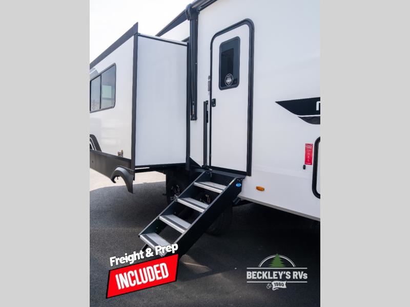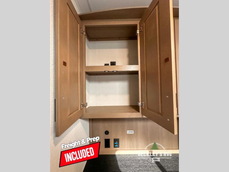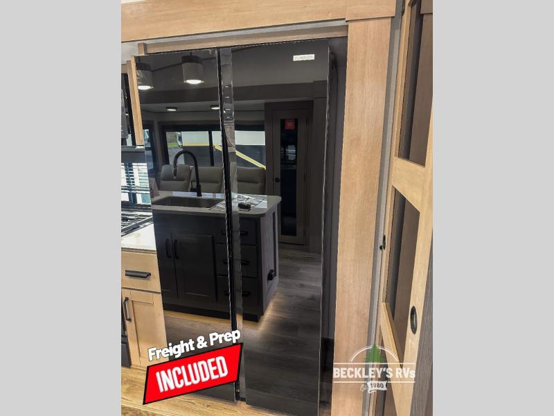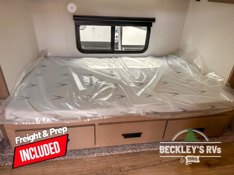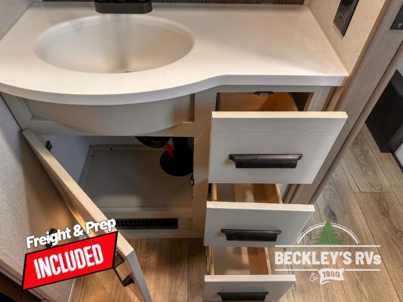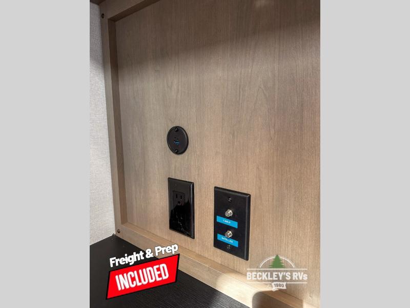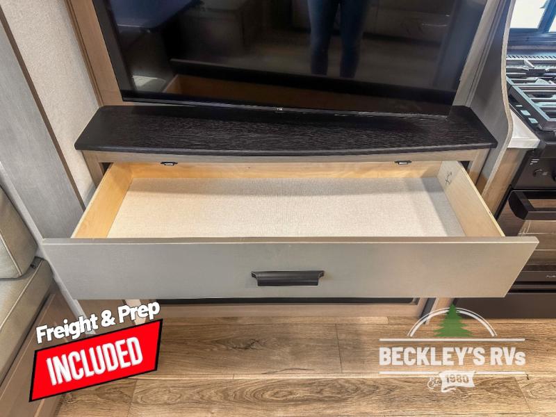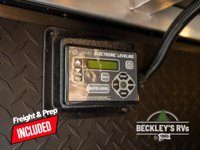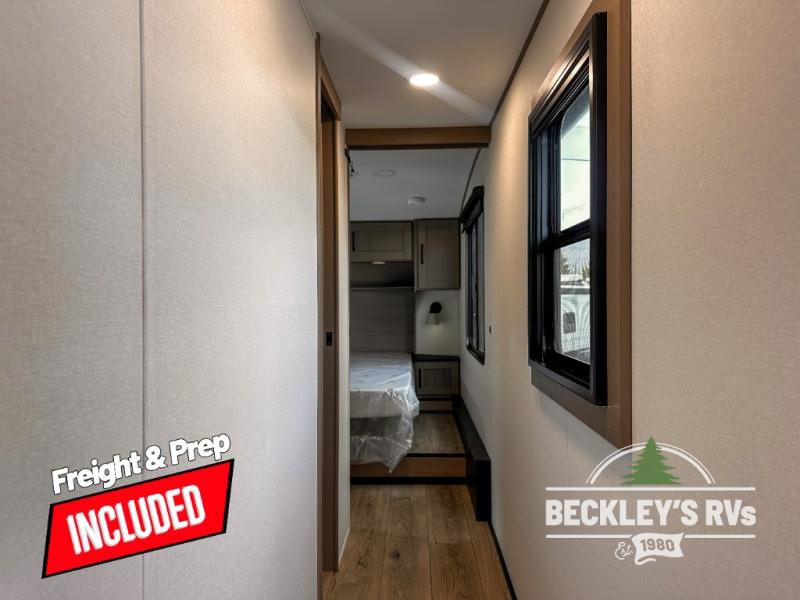 When you are looking for a versatile extra room for either a second bedroom or living area as well as an office, this middle bunkhouse might just work! There is a slide out with two bunks and drawers plus a dresser. You can sleep like royalty on the walk-around queen bed in the front private bedroom that offers more clothing storage and windows for views. The rear main living and kitchen area provides plenty of seating on the 78" theater seats, and on the 92" U-shaped lounge. The kitchen island gives the cook more space to make and serve meals, and the gourmet kitchen includes a 16-cu. ft. refrigerator, plus a pantry for dry goods. There is an exterior outside kitchen with a griddle and a 1.6 cu. ft. refrigerator for beverages and such, plus you will find an LP quick connect, Coax TV hookup, and a spray port to wash off your dirty shoes.