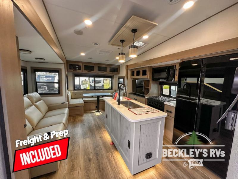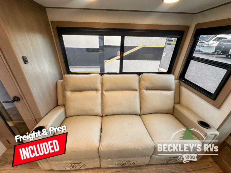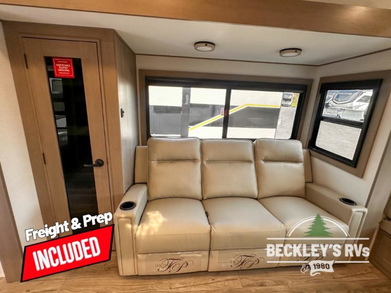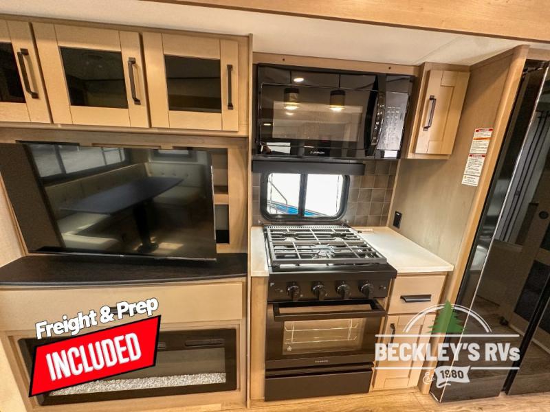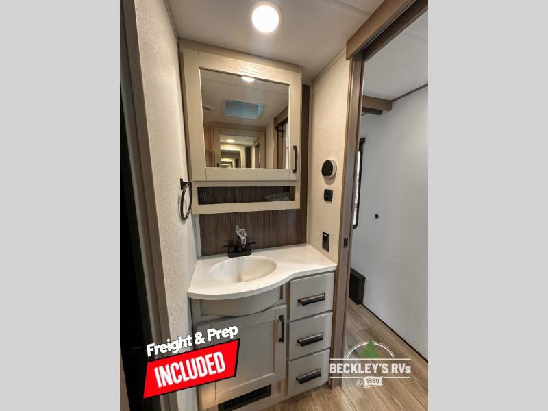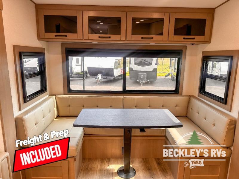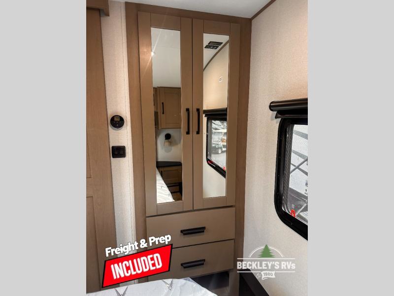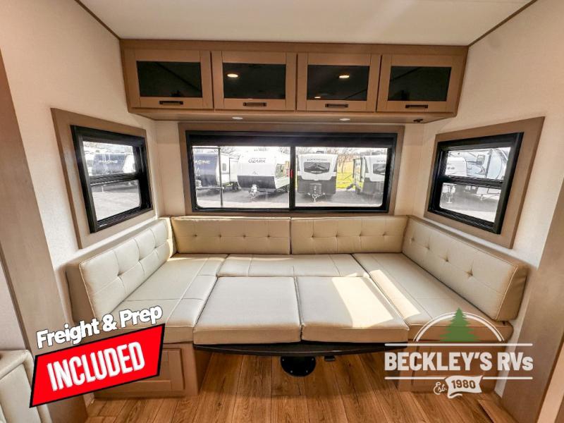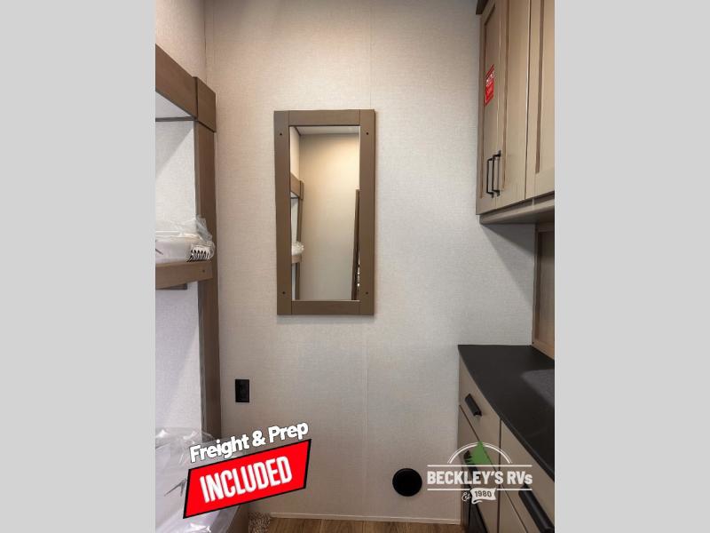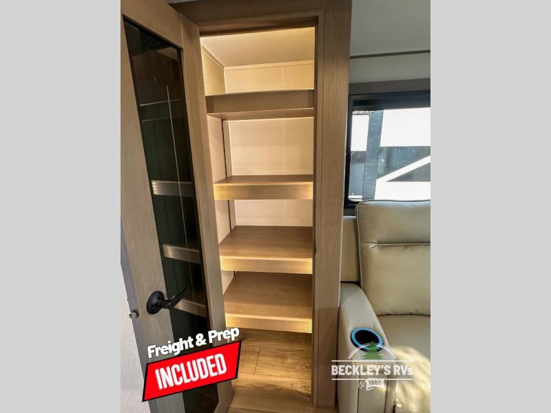 When you are looking for a versatile extra room for either a second bedroom or living area as well as an office, this middle bunkhouse might just work! There is a slide out with two bunks and drawers plus a dresser. You can sleep like royalty on the walk-around queen bed in the front private bedroom that offers more clothing storage and windows for views. The rear main living and kitchen area provides plenty of seating on the 78" theater seats, and on the 92" U-shaped lounge. The kitchen island gives the cook more space to make and serve meals, and the gourmet kitchen includes a 16-cu. ft. refrigerator, plus a pantry for dry goods. There is an exterior outside kitchen with a griddle and a 1.6 cu. ft. refrigerator for beverages and such, plus you will find an LP quick connect, Coax TV hookup, and a spray port to wash off your dirty shoes.