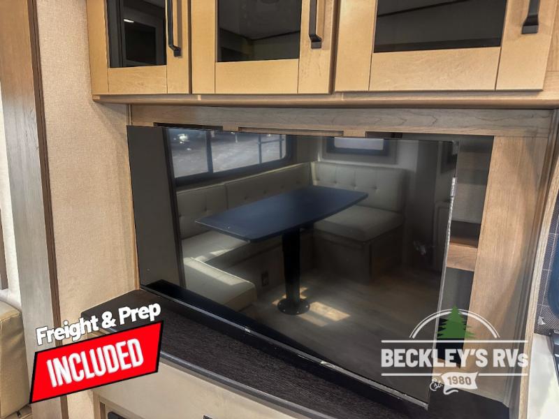 With any Reflection fifth wheel by Grand Design, you will have a solar panel for off-grid camping and a 60 amp charge controller and inverter prep, a Universal All-In-One docking station, unobstructed pass-through storage, and Goodyear Endurance tires. Each is constructed of gel coat exterior sidewalls, residential 5" truss rafters, walk-on roof decking, a fiberglass and radiant foil roof and front cap insulation plus laminated aluminum framed side walls, roof and end walls in slide rooms. Head inside to enjoy residential hardwood cabinet doors, premium Congoleum flooring, a spacious shower with a glass door, and many more comforts!