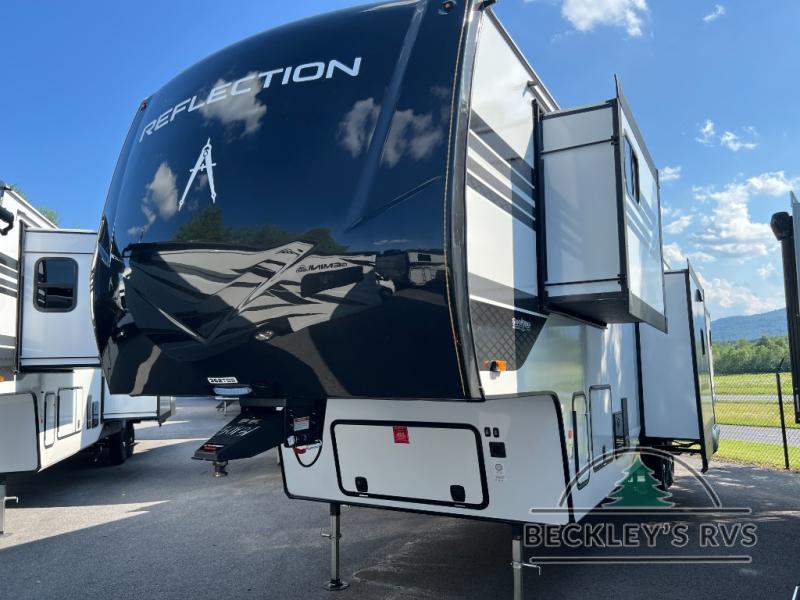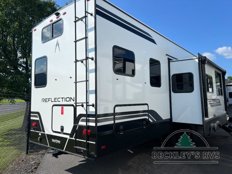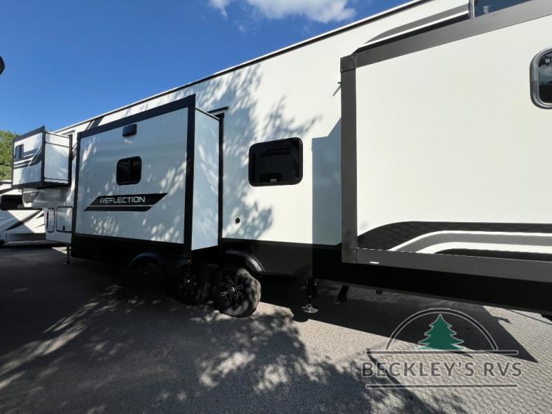 With any Reflection fifth wheel by Grand Design, you will have a solar panel for off-grid camping and a 60 amp charge controller and inverter prep, a Universal All-In-One docking station, unobstructed pass-through storage, and Goodyear Endurance tires. Each is constructed of gel coat exterior sidewalls, residential 5" truss rafters, walk-on roof decking, a fiberglass and radiant foil roof and front cap insulation plus laminated aluminum framed side walls, roof and end walls in slide rooms. Head inside to enjoy residential hardwood cabinet doors, premium Congoleum flooring, a spacious shower with a glass door, and many more comforts!