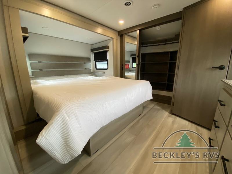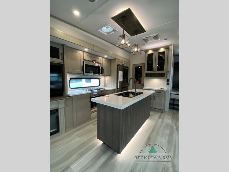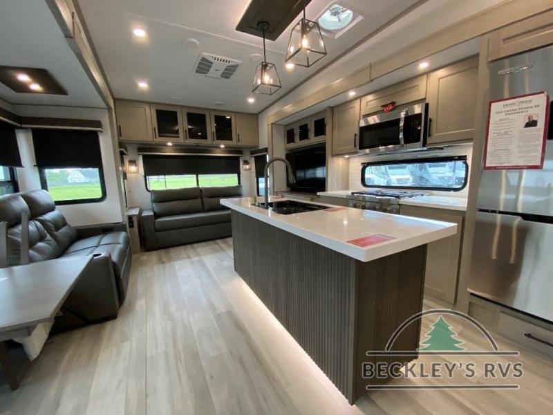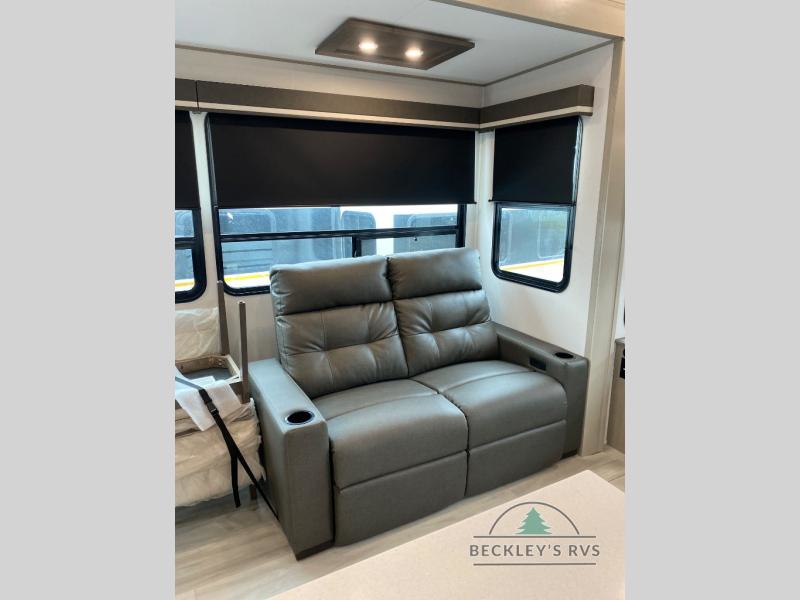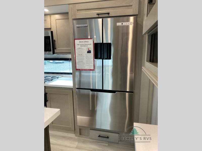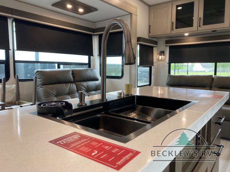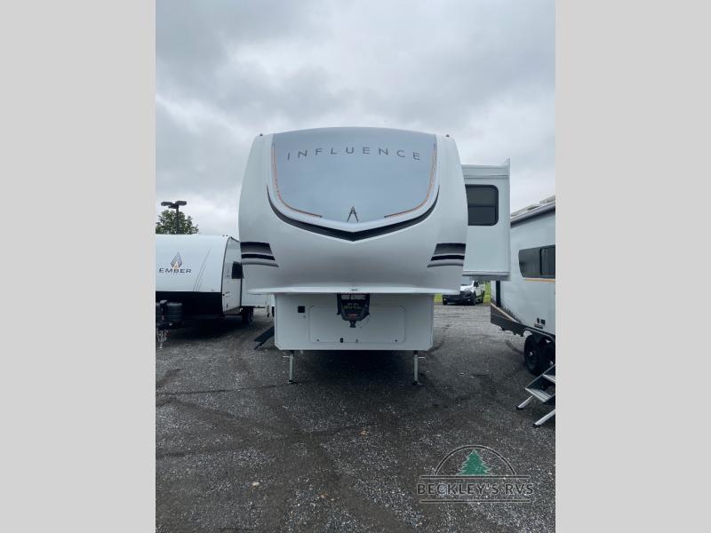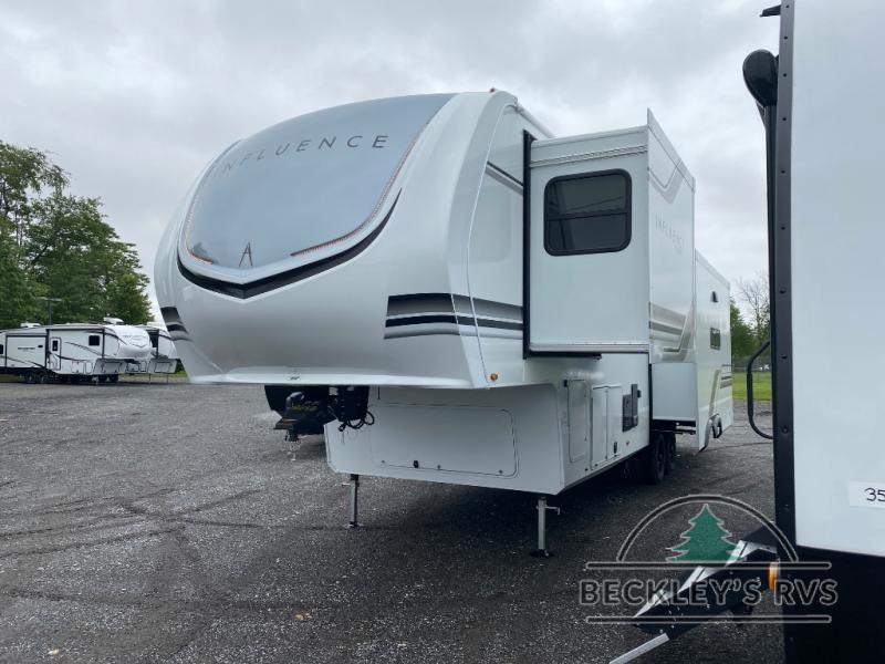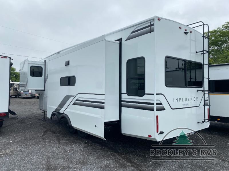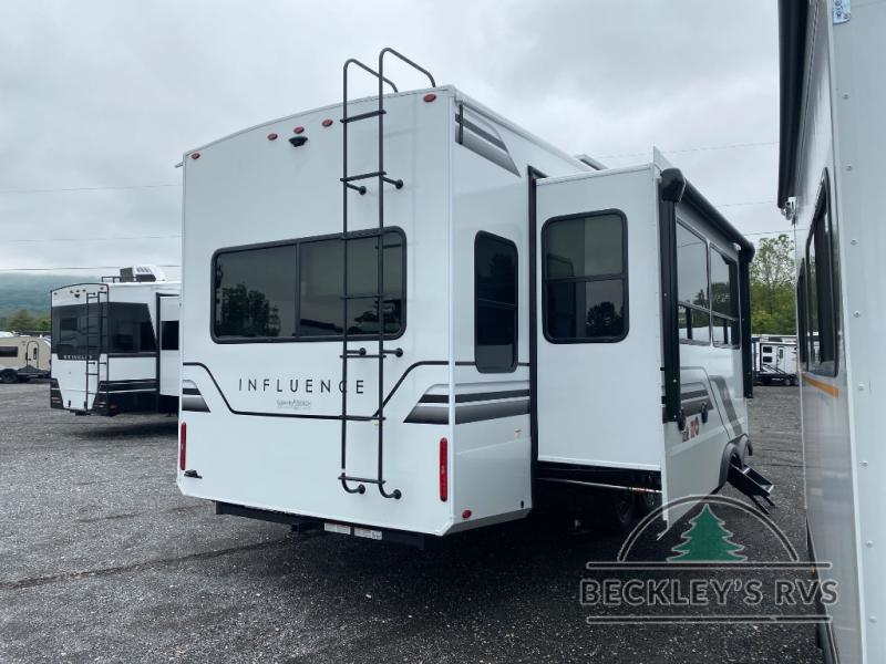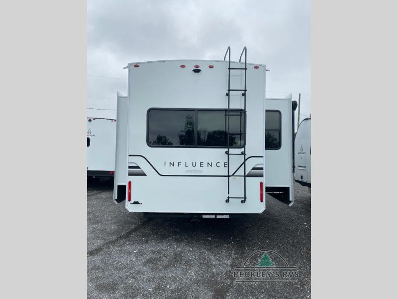 Any Grand Design Influence fifth wheel features five-sided aluminum cage construction with a walk-on roof and a fully enclosed underbelly with heated tanks and storage for all weather camping. For peace of mind, the MORryde CRE3000 Suspension system will provide safe and smooth towing, and the 101" widebody construction offers all the room you need and that is before multiple slides are fully engaged. You will appreciate the Keyed-Alike locks, slam-latch baggage doors with magnetic door catches, exterior security light, and SolidStep entry steps. On the inside, Congoleum flooring, premium roller shades for privacy, a hallway handrail for safety, and nightstands with USB ports to keep all of your electronics fully charged. You will also love the On Demand tankless water heater when showering, plus the added heat and ambiance from an electric fireplace, and so much more!
