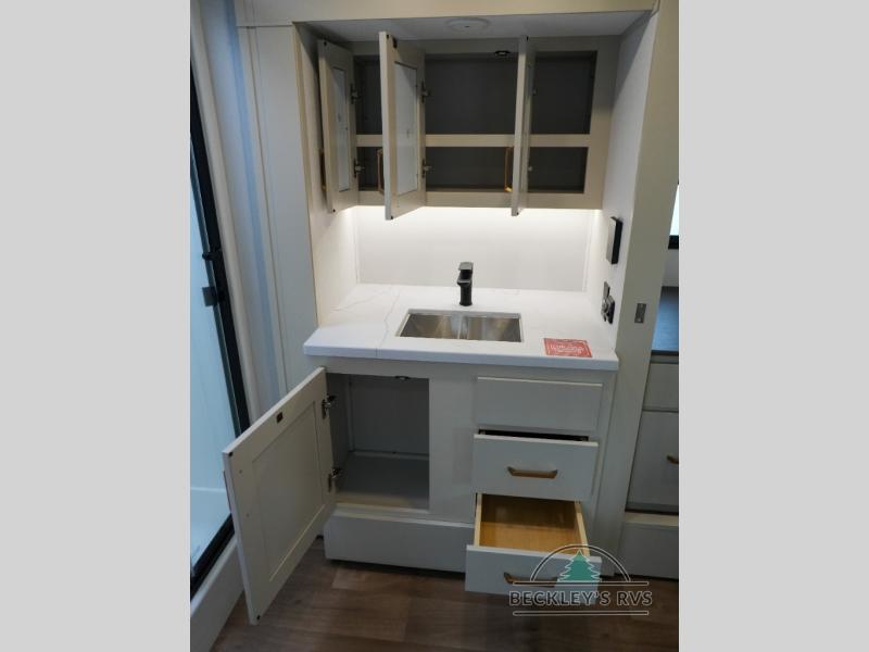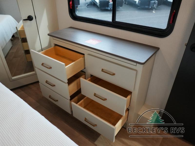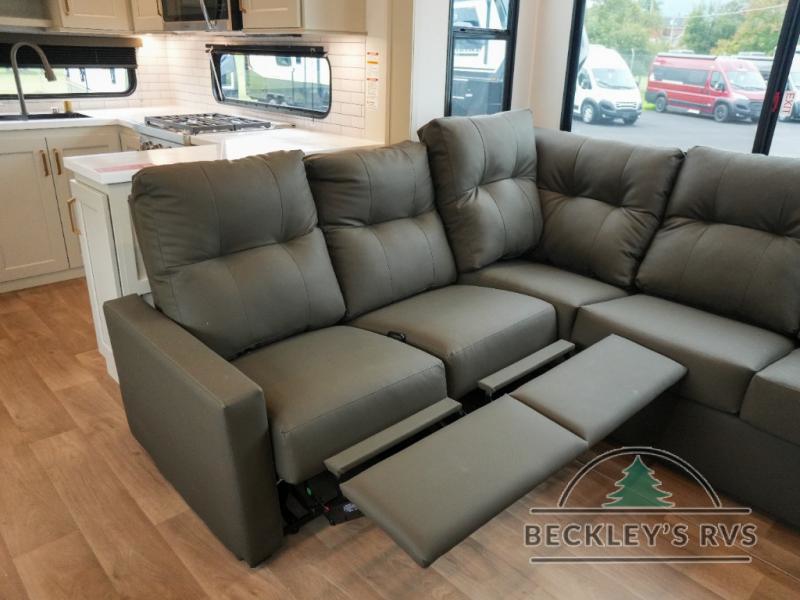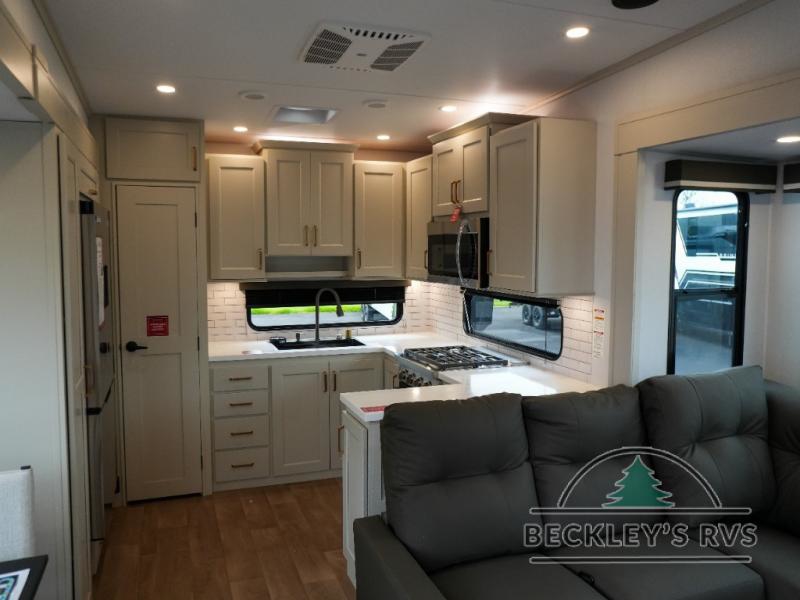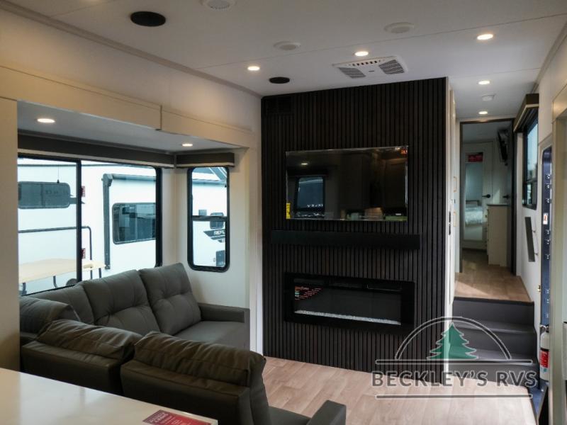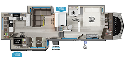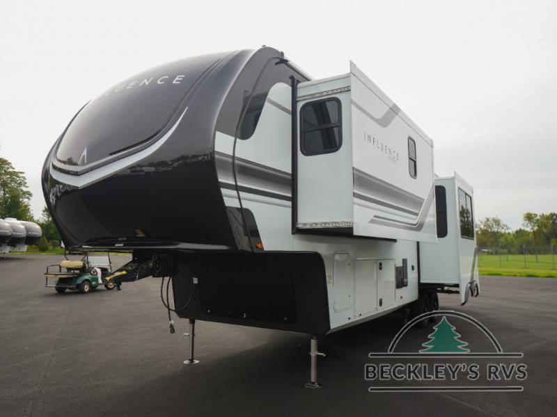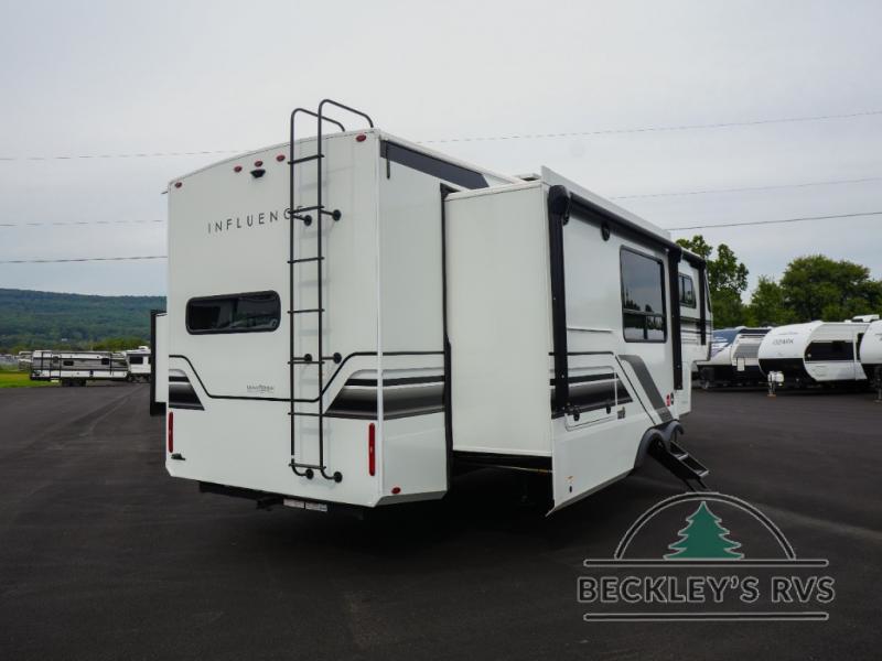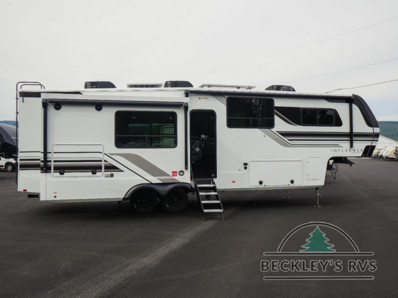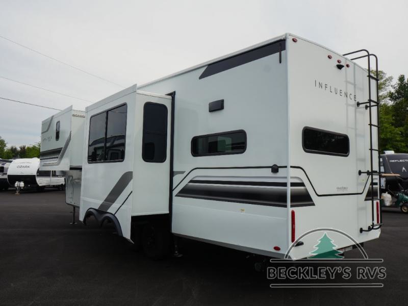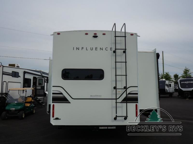 Any Grand Design Influence fifth wheel features five-sided aluminum cage construction with a walk-on roof and a fully enclosed underbelly with heated tanks and storage for all weather camping. For peace of mind, the MORryde CRE3000 Suspension system will provide safe and smooth towing, and the 101" widebody construction offers all the room you need and that is before multiple slides are fully engaged. You will appreciate the Keyed-Alike locks, slam-latch baggage doors with magnetic door catches, exterior security light, and SolidStep entry steps. On the inside, Congoleum flooring, premium roller shades for privacy, a hallway handrail for safety, and nightstands with USB ports to keep all of your electronics fully charged. You will also love the On Demand tankless water heater when showering, plus the added heat and ambiance from an electric fireplace, and so much more!