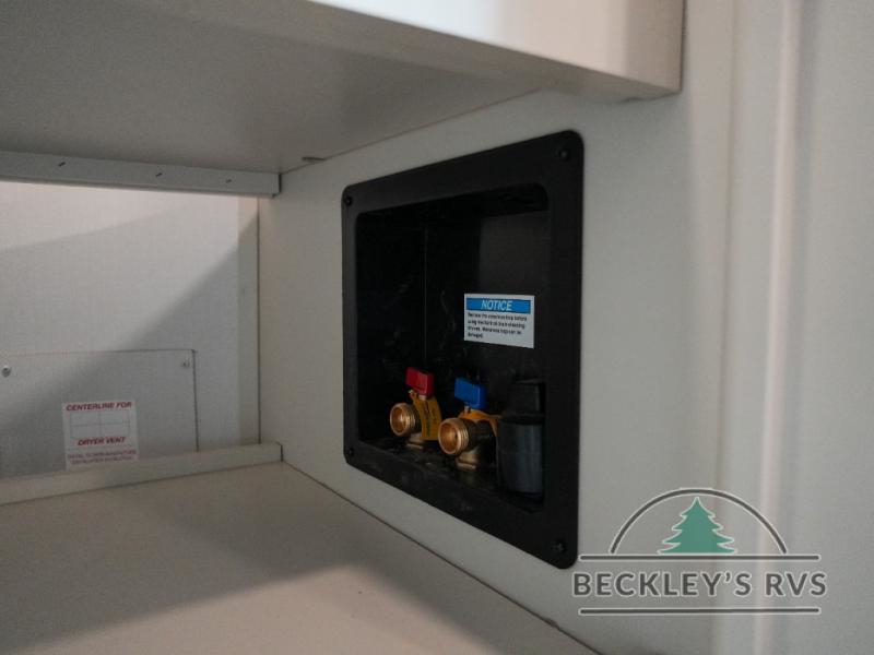 It will be so easy to enjoy camping trips in this triple slide out fifth wheel! You can wake up each morning in your own master bedroom with a queen bed slide out, a spacious closet with a clothes hamper plus washer and dryer prep, and a slide top dresser. You'll also find a private entry door into the dual entry bath and an accessory drawer to keep bath necessities organized. If you had any guests stay over, they can sleep on the L-shaped sofa with recliners. The chef of your group will love the rear kitchen with its U-shaped counterspace, ample storage, and 16 cu. ft. 12V refrigerator. There is even a convenient pull-out pet dish for your furry friends. Head outside to find two power awnings, exterior storage, and an exterior spray port to wash off hiking gear!