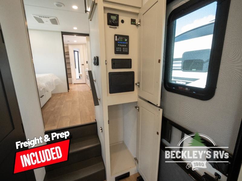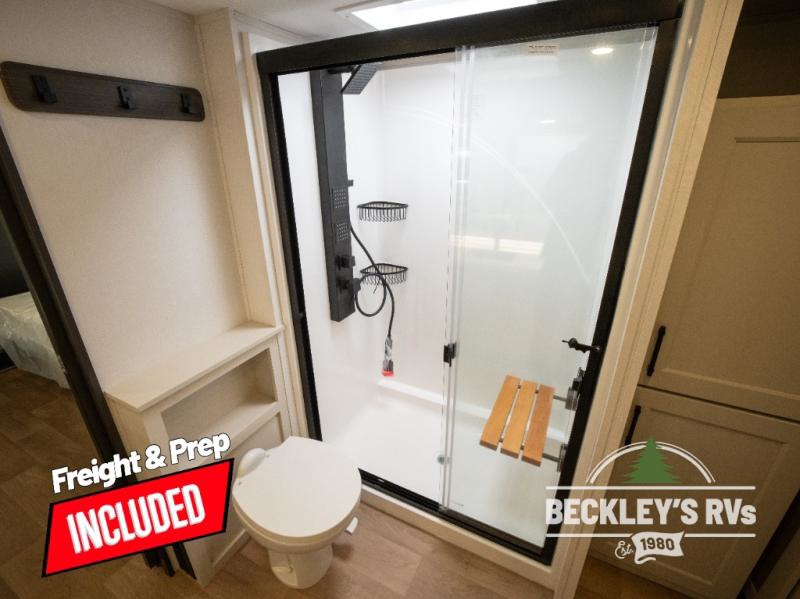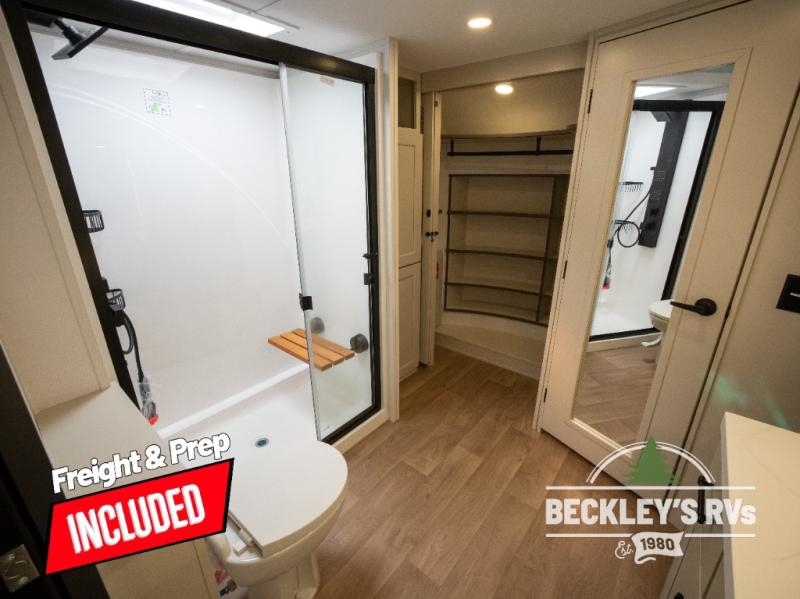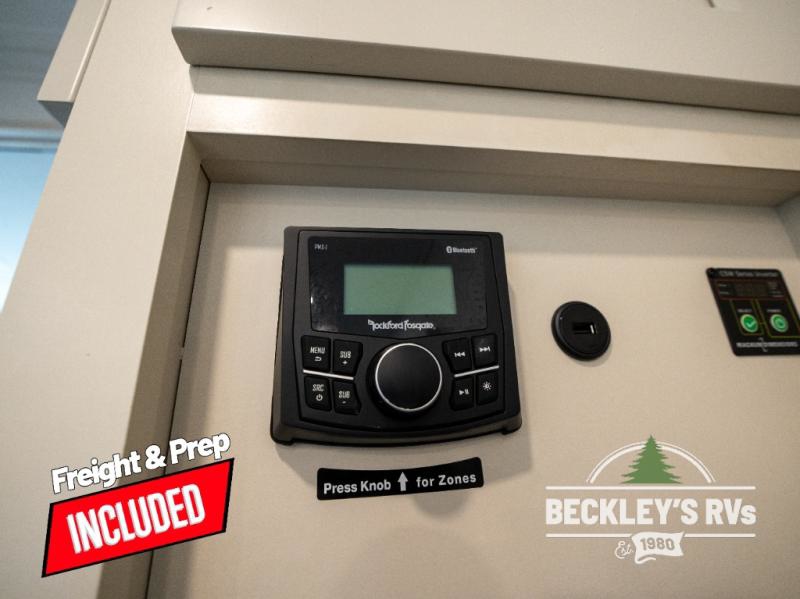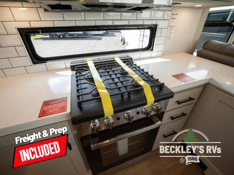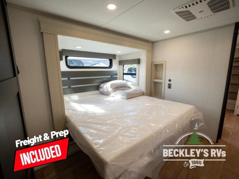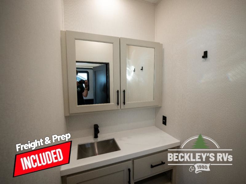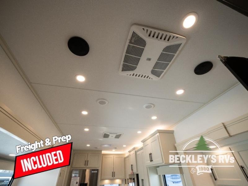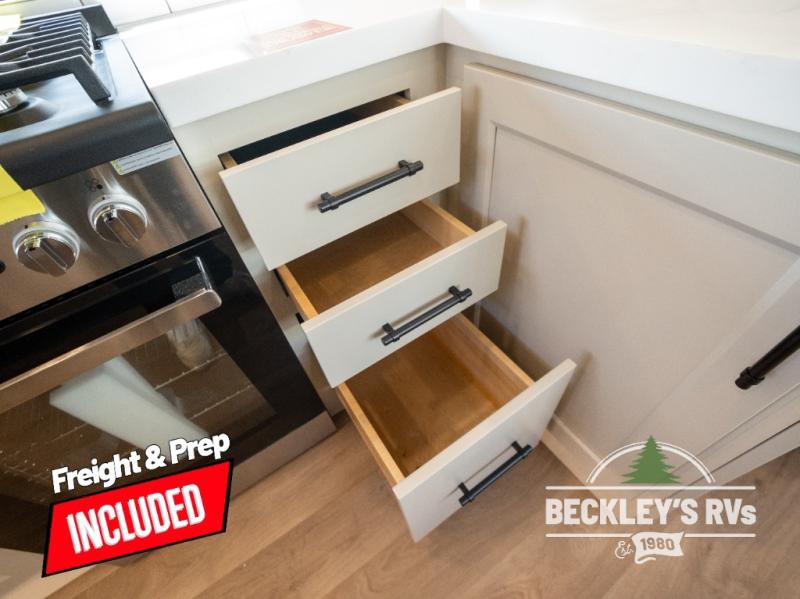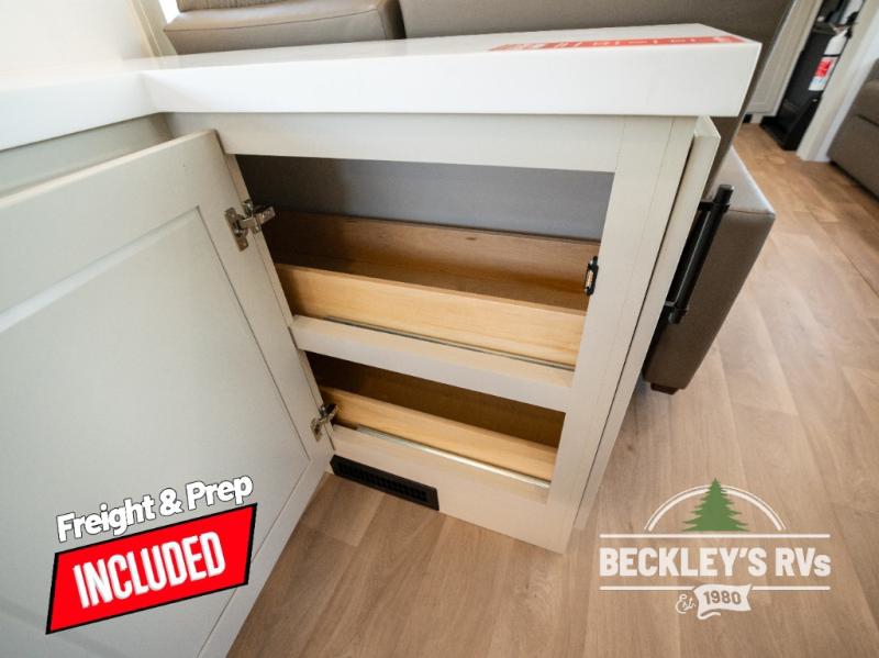 Comfort will come easy in this four slide out fifth wheel! You will feel right at home with a master bedroom that includes a queen bed slide out with a king bed option, dual dressers with a seat in between, plus a large front bath with tons of space. The convenient half bath is right as you enter the unit for convenience. Your crew can get cozy on the dual tri-fold sofas within dual opposing slides, or on the theater seating across from the LED TV and fireplace. One feature you will love about this fifth wheel is the rear kitchen with wrap-around counter space, a built-in oven, plus a 20 cu. ft. 12V refrigerator and a large pantry to keep food fresh.