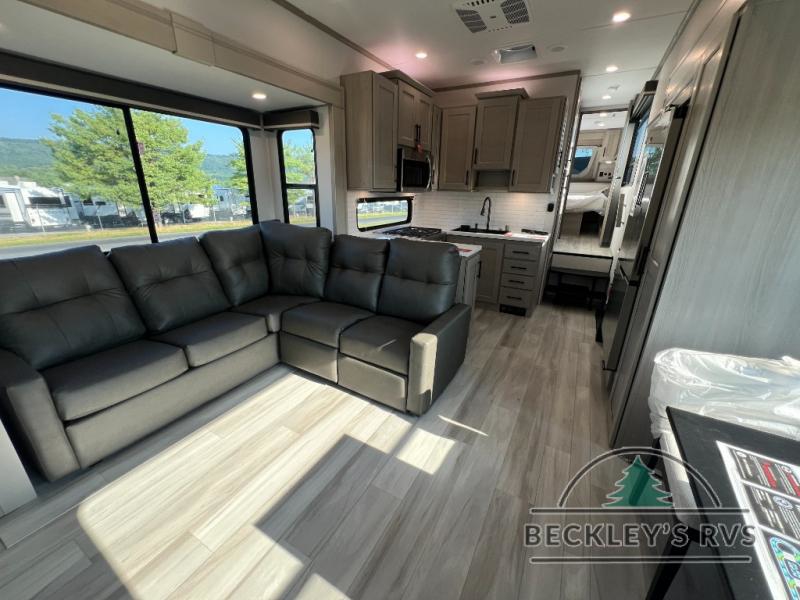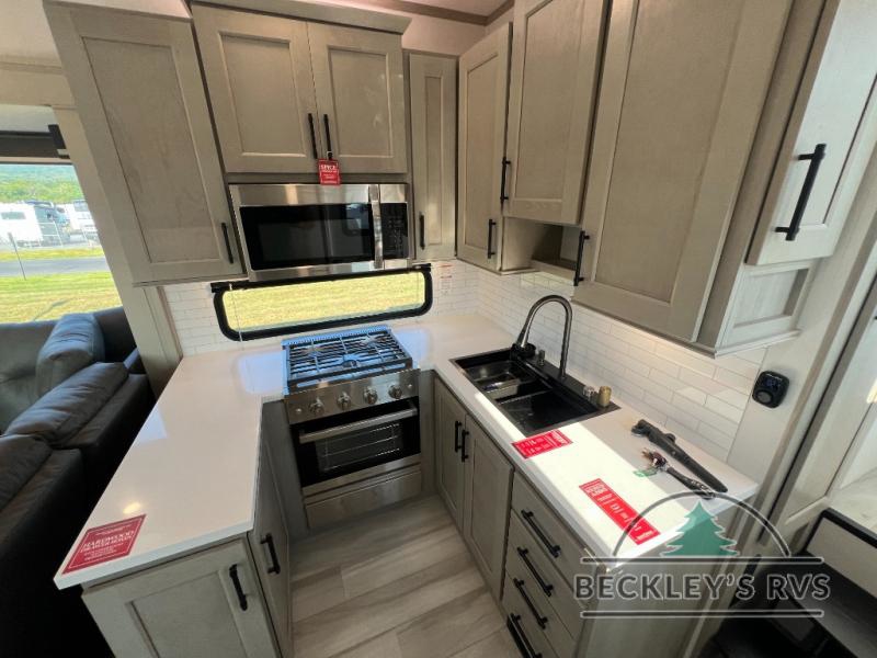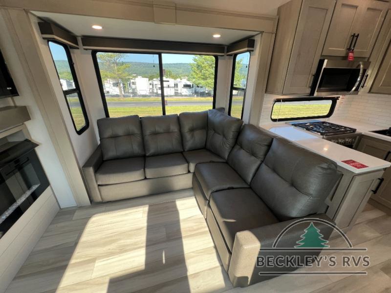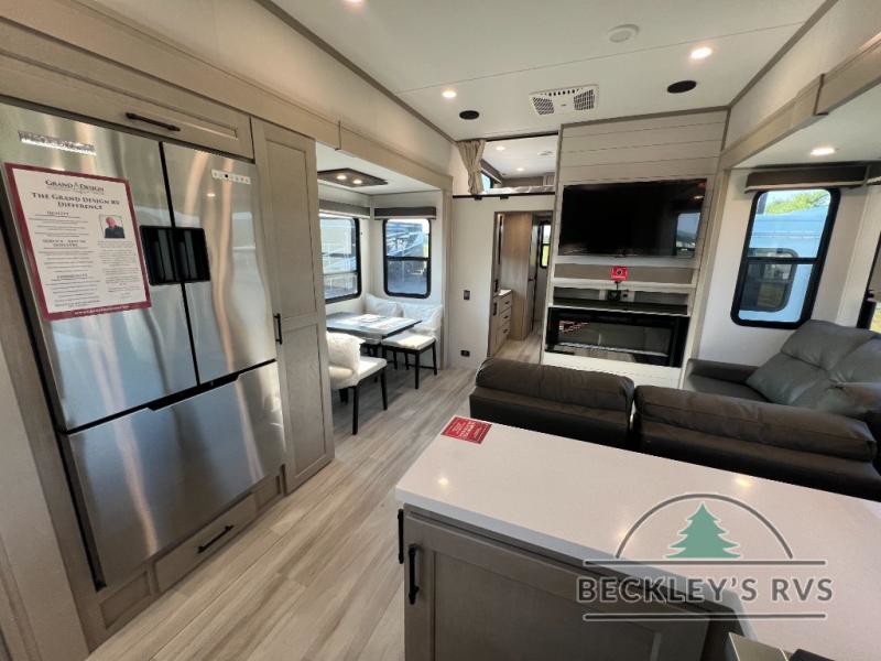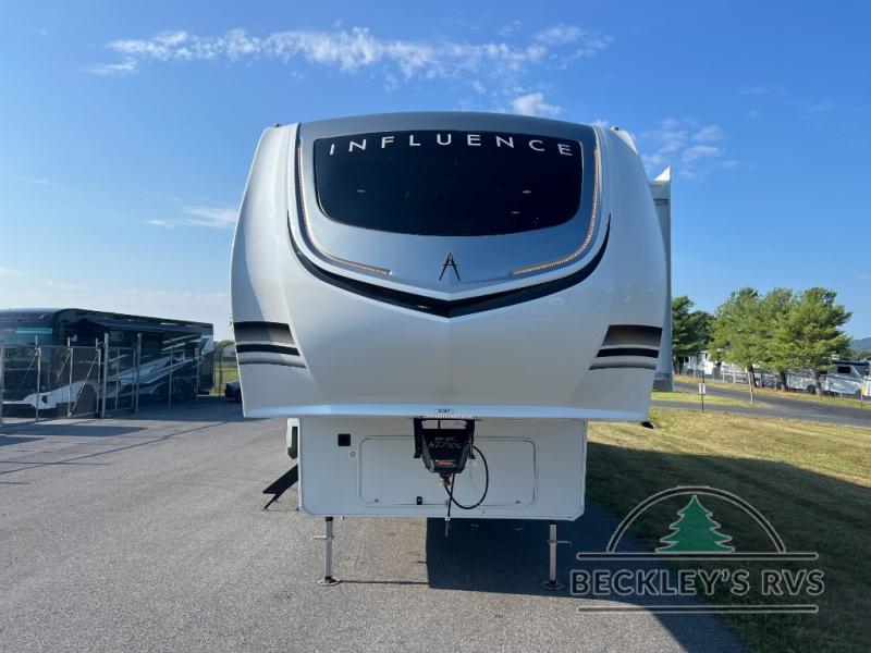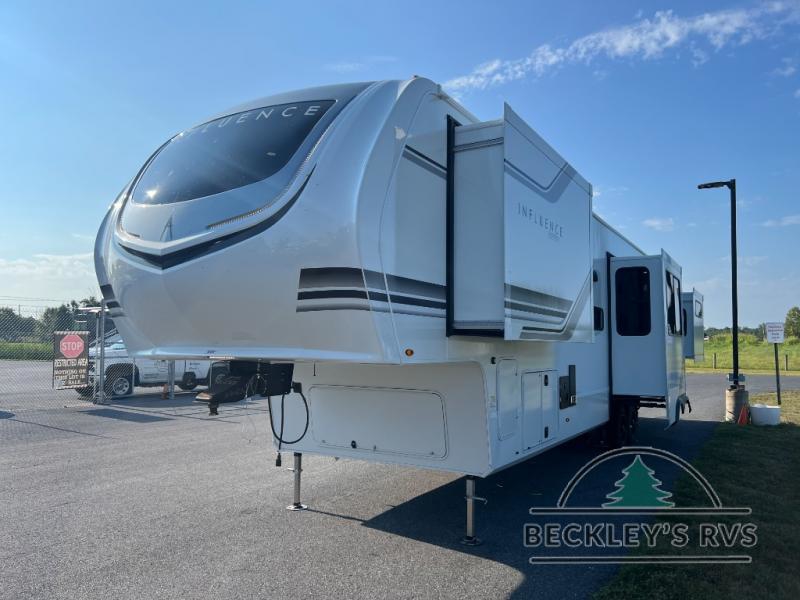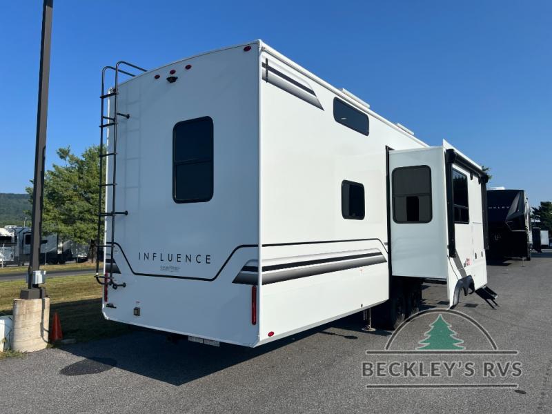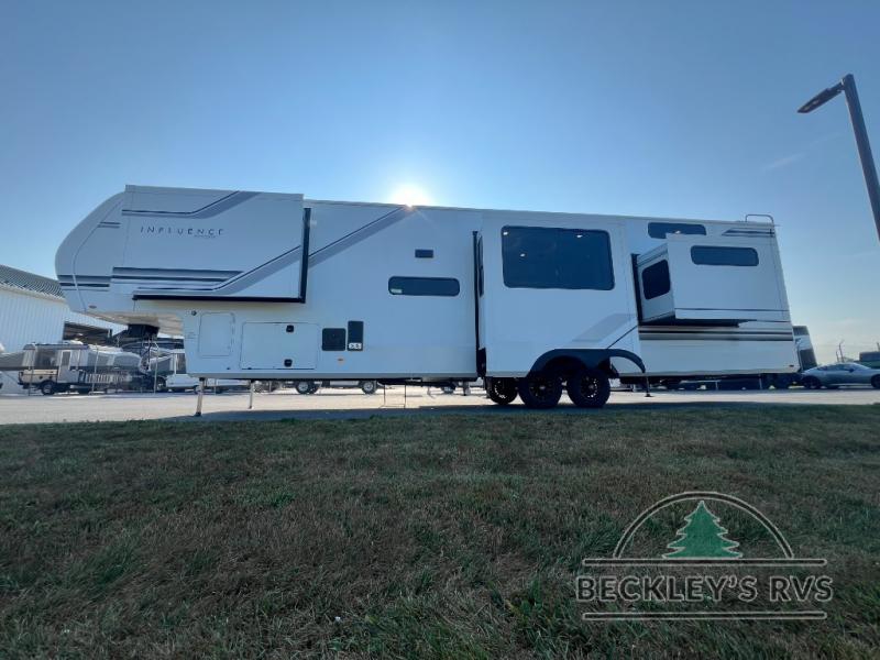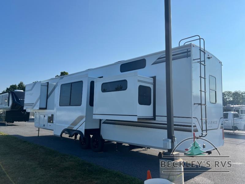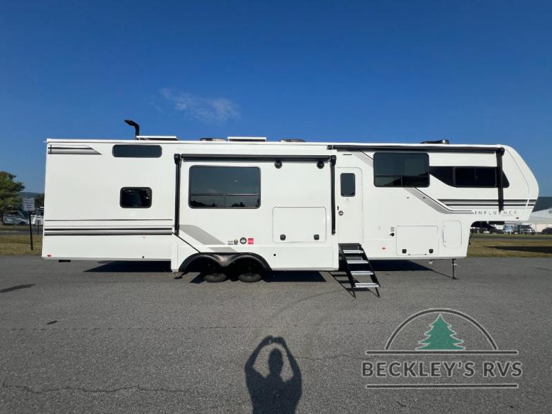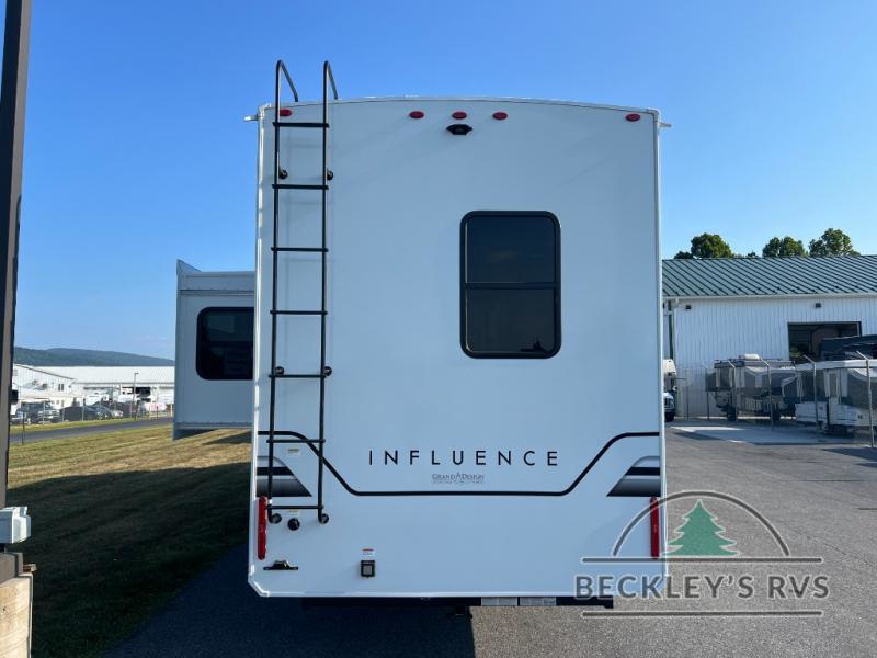 Any Grand Design Influence fifth wheel features five-sided aluminum cage construction with a walk-on roof and a fully enclosed underbelly with heated tanks and storage for all weather camping. For peace of mind, the MORryde CRE3000 Suspension system will provide safe and smooth towing, and the 101" widebody construction offers all the room you need and that is before multiple slides are fully engaged. You will appreciate the Keyed-Alike locks, slam-latch baggage doors with magnetic door catches, exterior security light, and SolidStep entry steps. On the inside, Congoleum flooring, premium roller shades for privacy, a hallway handrail for safety, and nightstands with USB ports to keep all of your electronics fully charged. You will also love the On Demand tankless water heater when showering, plus the added heat and ambiance from an electric fireplace, and so much more!