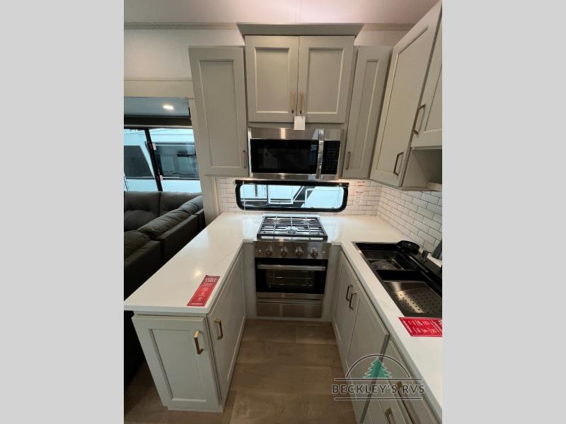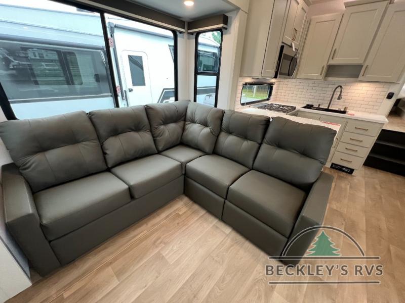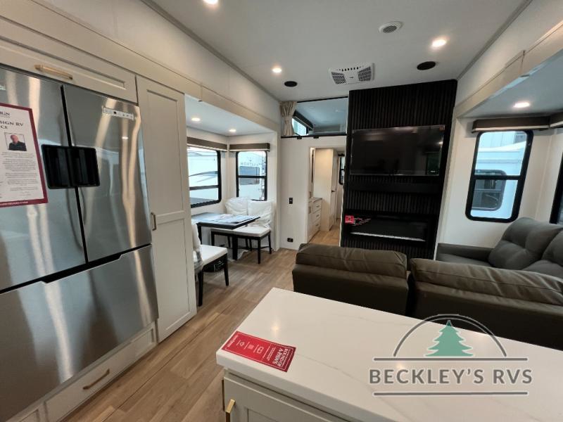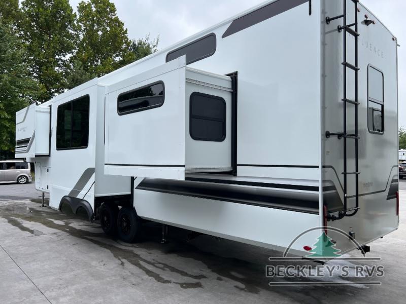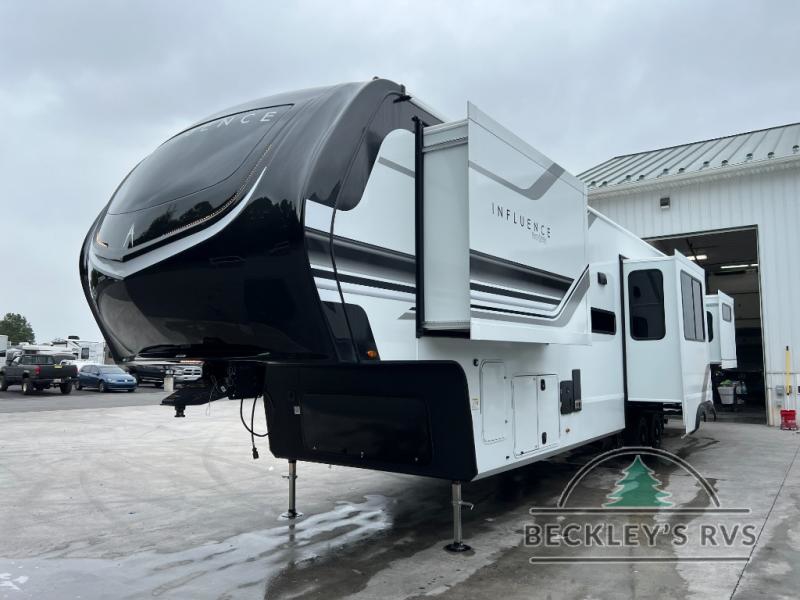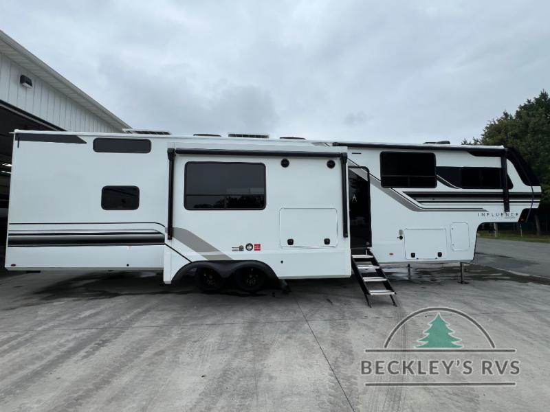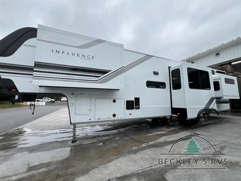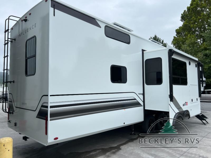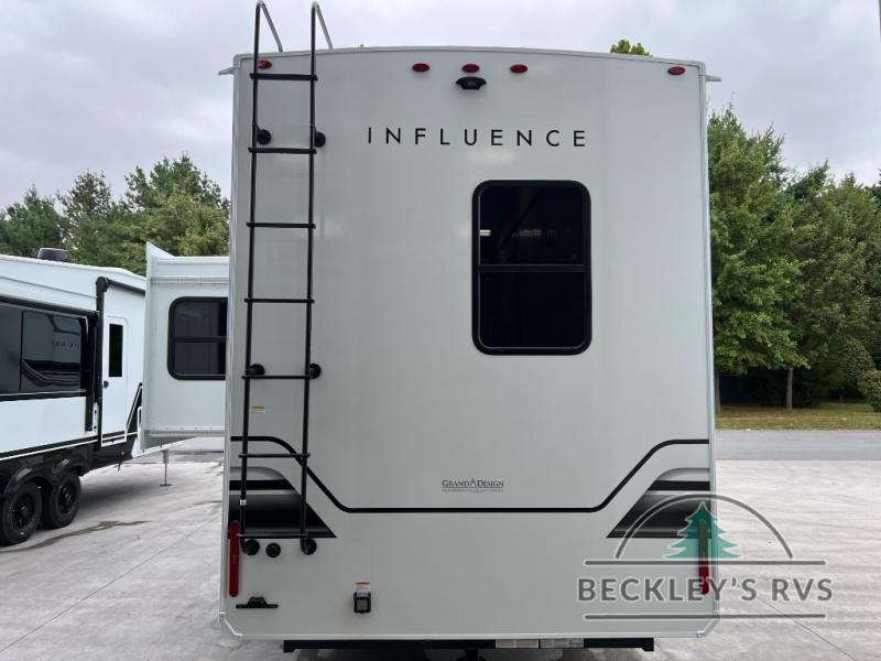 Any Grand Design Influence fifth wheel features five-sided aluminum cage construction with a walk-on roof and a fully enclosed underbelly with heated tanks and storage for all weather camping. For peace of mind, the MORryde CRE3000 Suspension system will provide safe and smooth towing, and the 101" widebody construction offers all the room you need and that is before multiple slides are fully engaged. You will appreciate the Keyed-Alike locks, slam-latch baggage doors with magnetic door catches, exterior security light, and SolidStep entry steps. On the inside, Congoleum flooring, premium roller shades for privacy, a hallway handrail for safety, and nightstands with USB ports to keep all of your electronics fully charged. You will also love the On Demand tankless water heater when showering, plus the added heat and ambiance from an electric fireplace, and so much more!